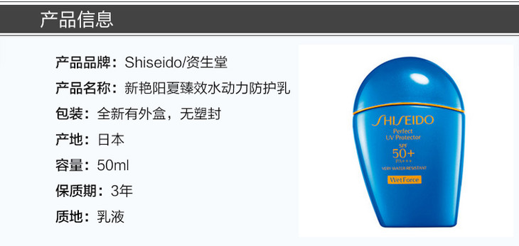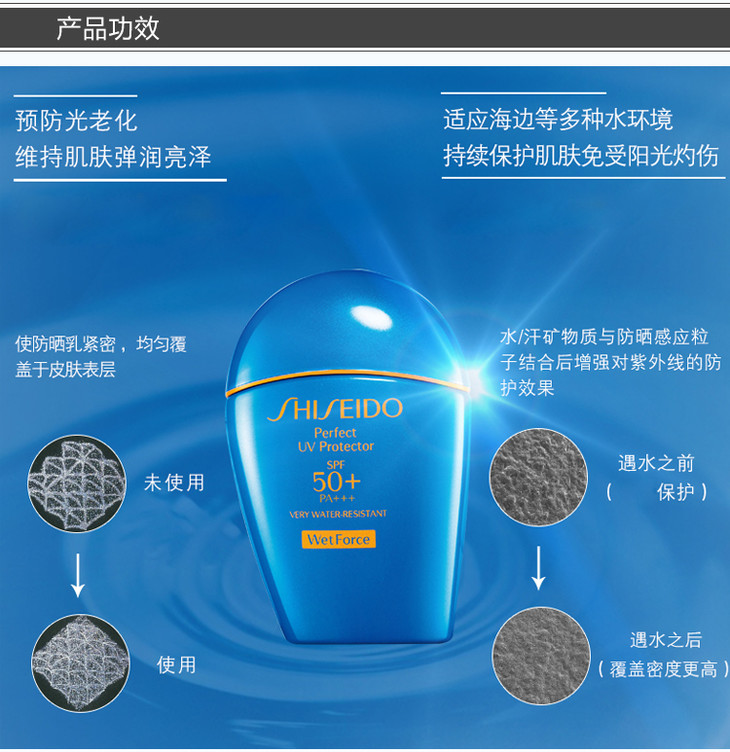 资生堂防晒霜蓝胖子防晒新艳阳夏臻效水动力防护乳SPF50+/PA+++ 50ml