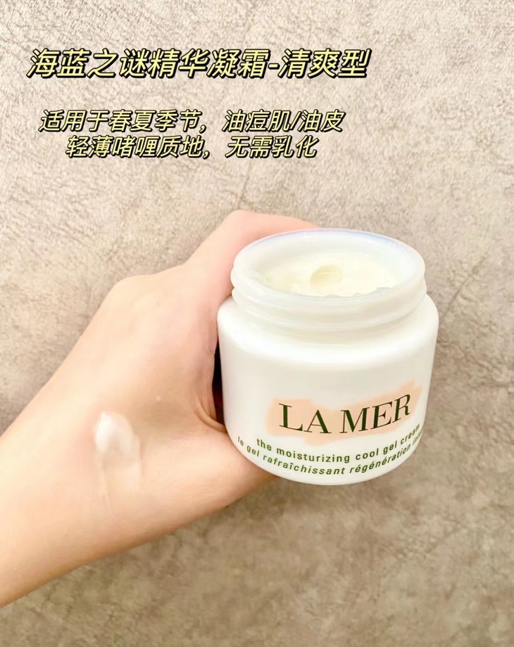 👑LAMER 海蓝之谜精华凝霜 60ml(清爽型) 👍主打:修复+抗老,按肌肤需求购买 👻有效:舒缓干燥滋润肌肤、修护衰老、紧致肌肤,减少皮肤发红刺激等问题 💦质地:啫喱质地,适用于春夏季节。 💁乳霜适合:油痘肌、油皮 💎它不需要乳化,可以直接上脸,清爽又滋润,可推荐【男生】使用! 👌保湿修复的同时,肤感还不会厚重噢~