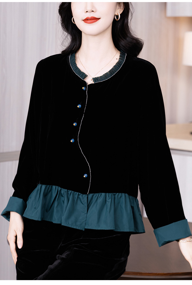 XYG8151 女装2025新中式唐装春秋新款中年妈妈装金丝绒国风上衣