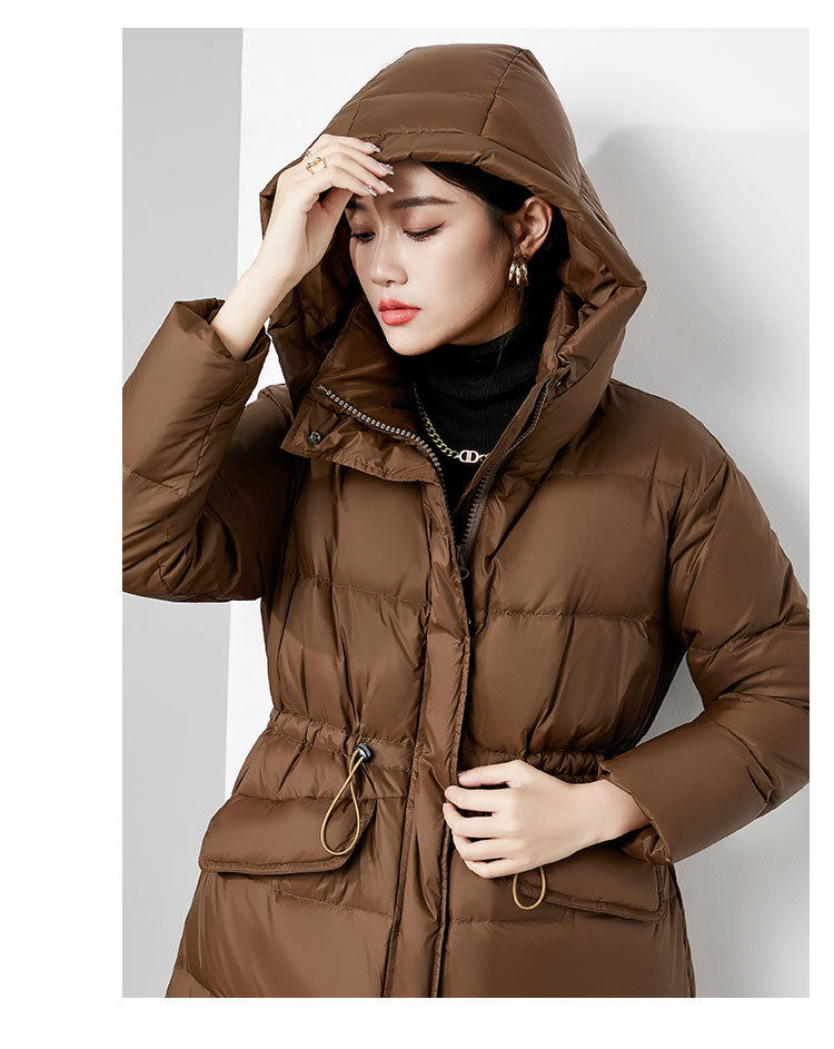 「高货kbnq」全新升级【铂金会员864/天猫1169/差价305】(15056)洛诗琳气质中长款羽绒服2025冬季显瘦收腰连帽保暖外套kbnq15056