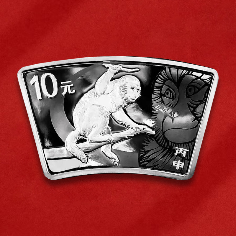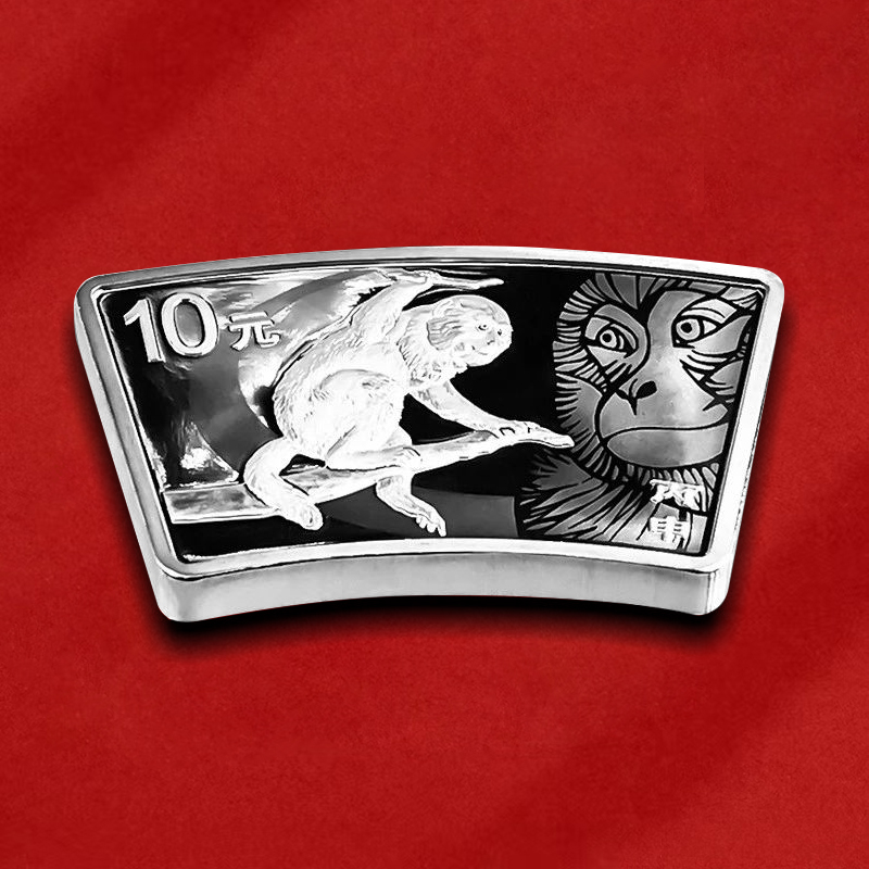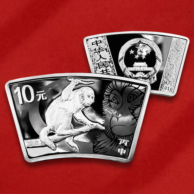 2016年猴年扇形银币 1盎司 双关门币 封装评级带证书