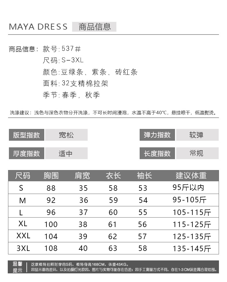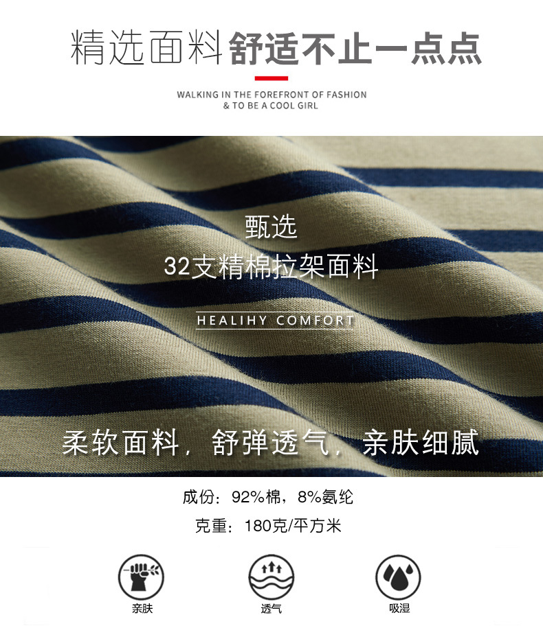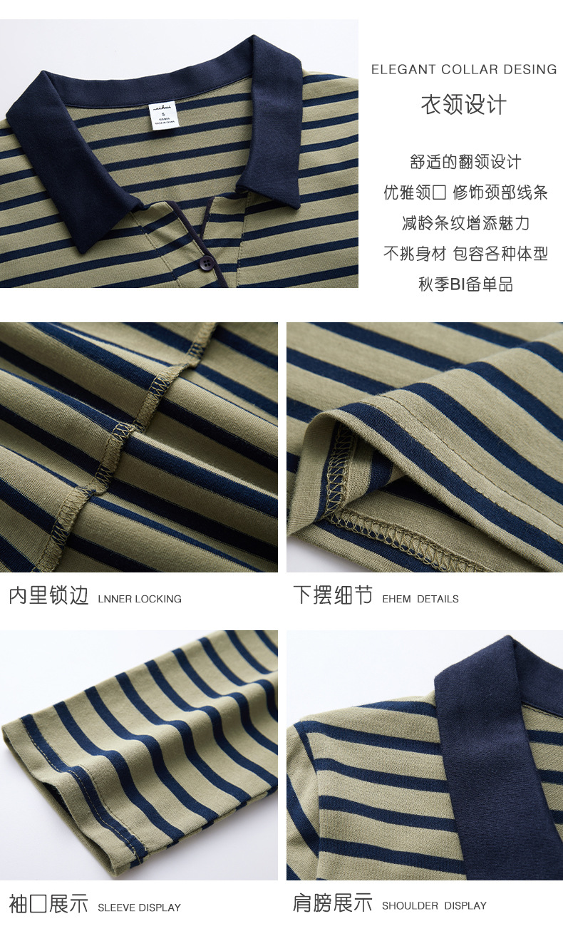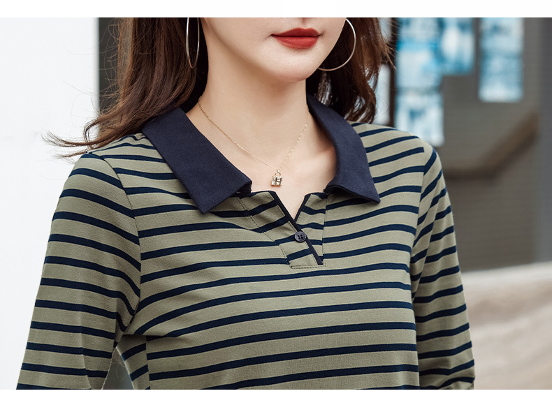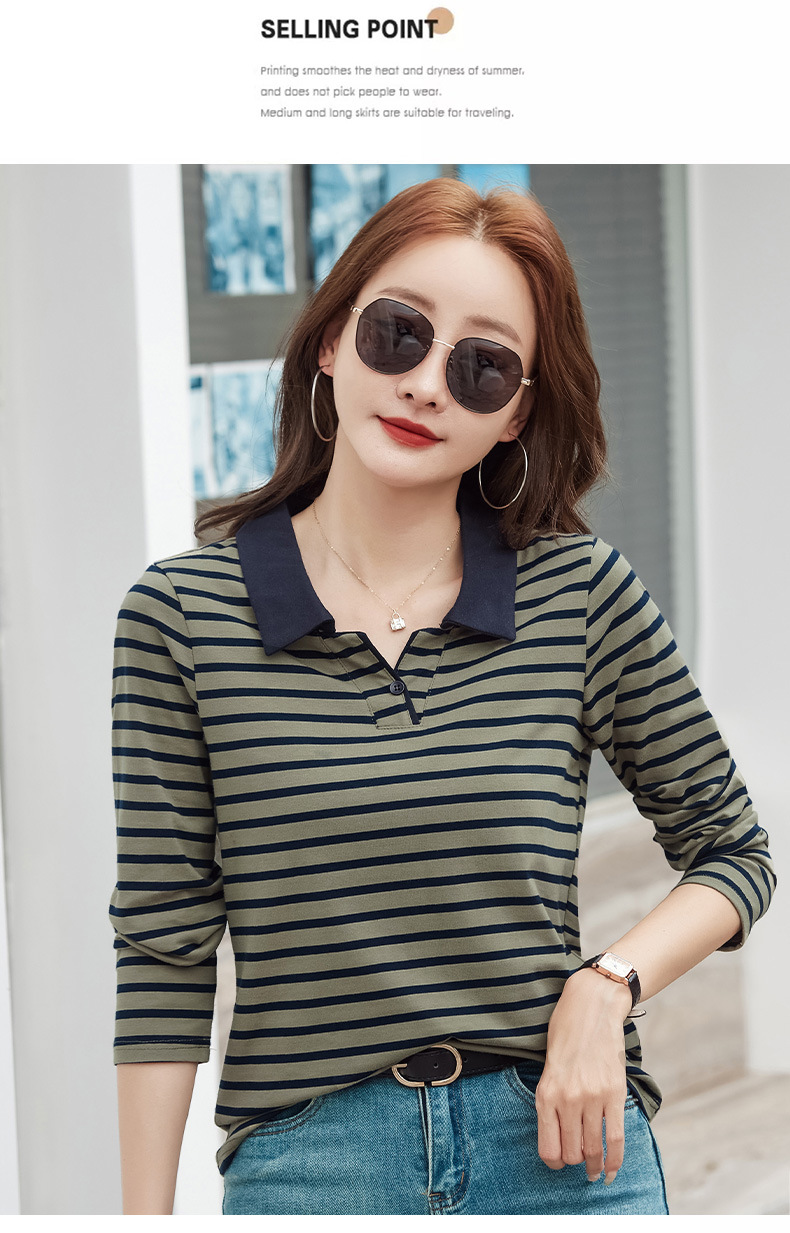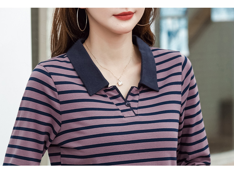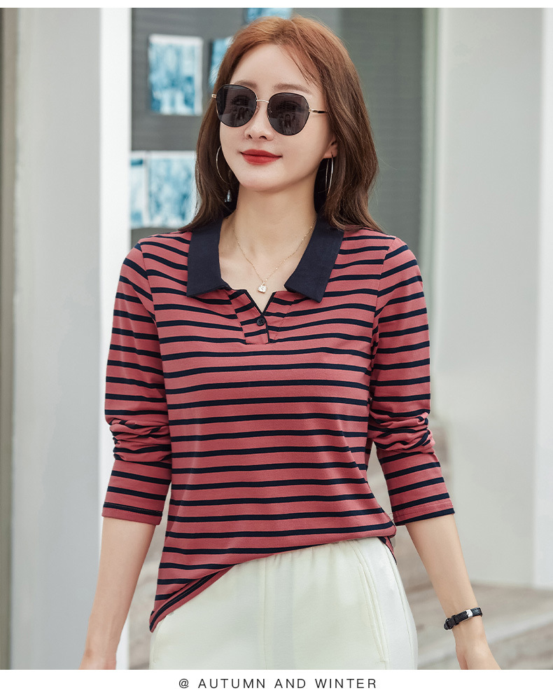 百媚生 棉质条纹翻领长袖T恤打底衫537