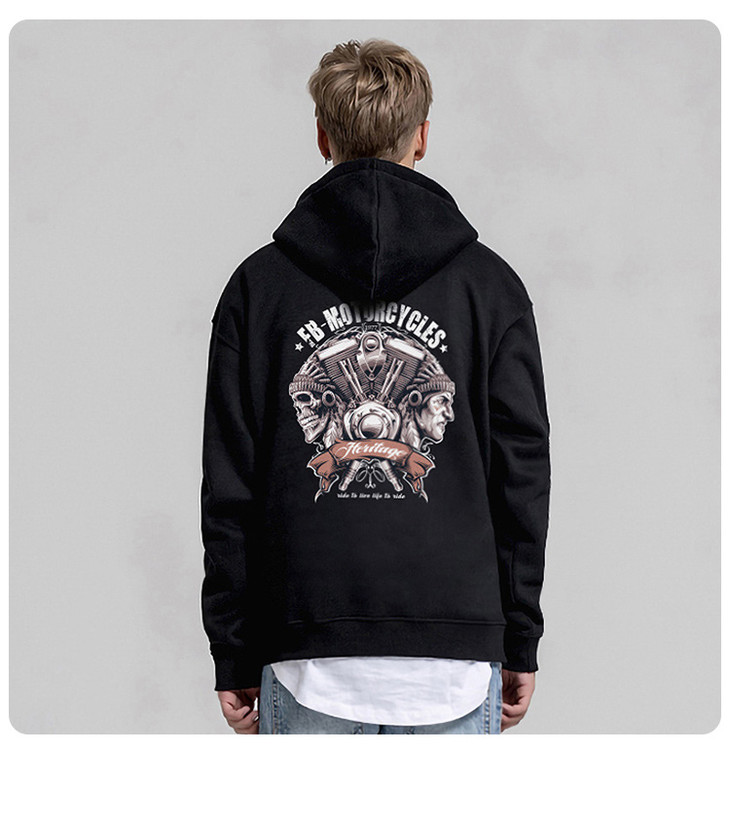 自由基地宽松款情侣机车套头带帽卫衣抓绒保暖衫国潮ins复古帅气