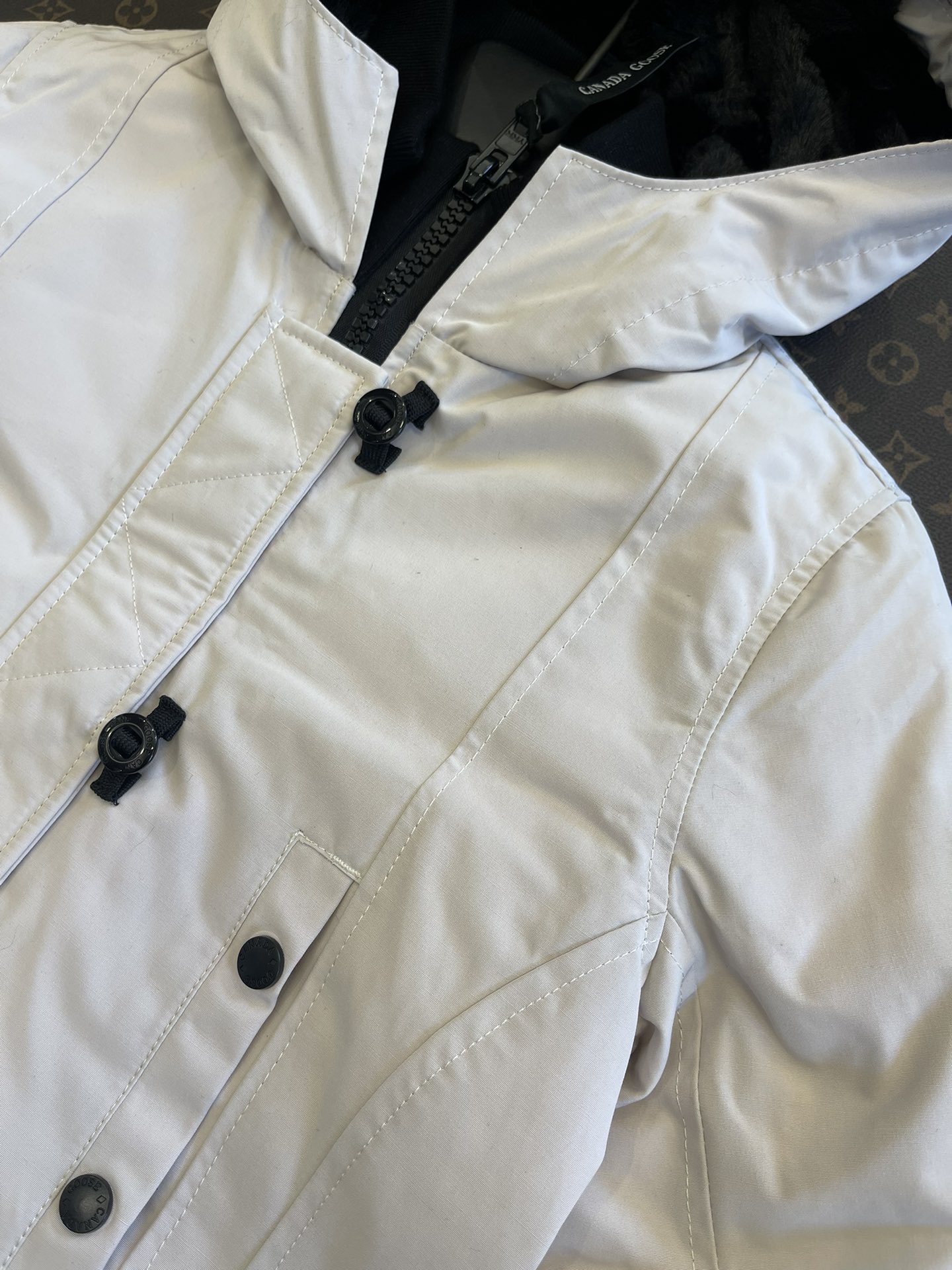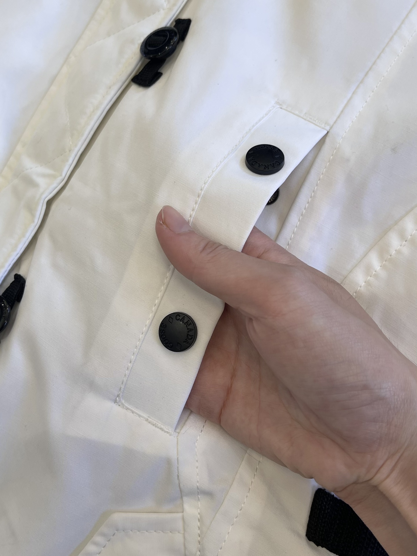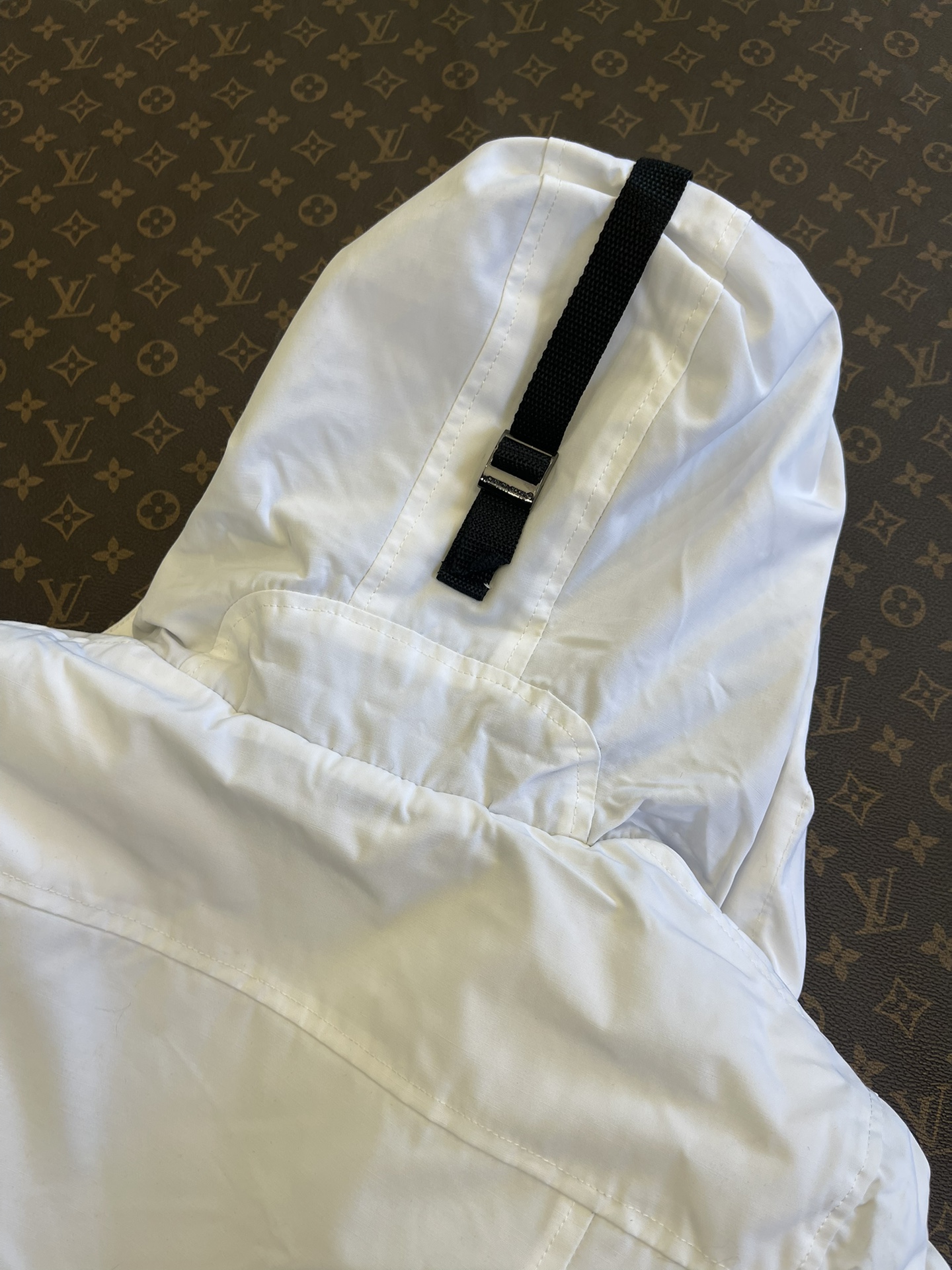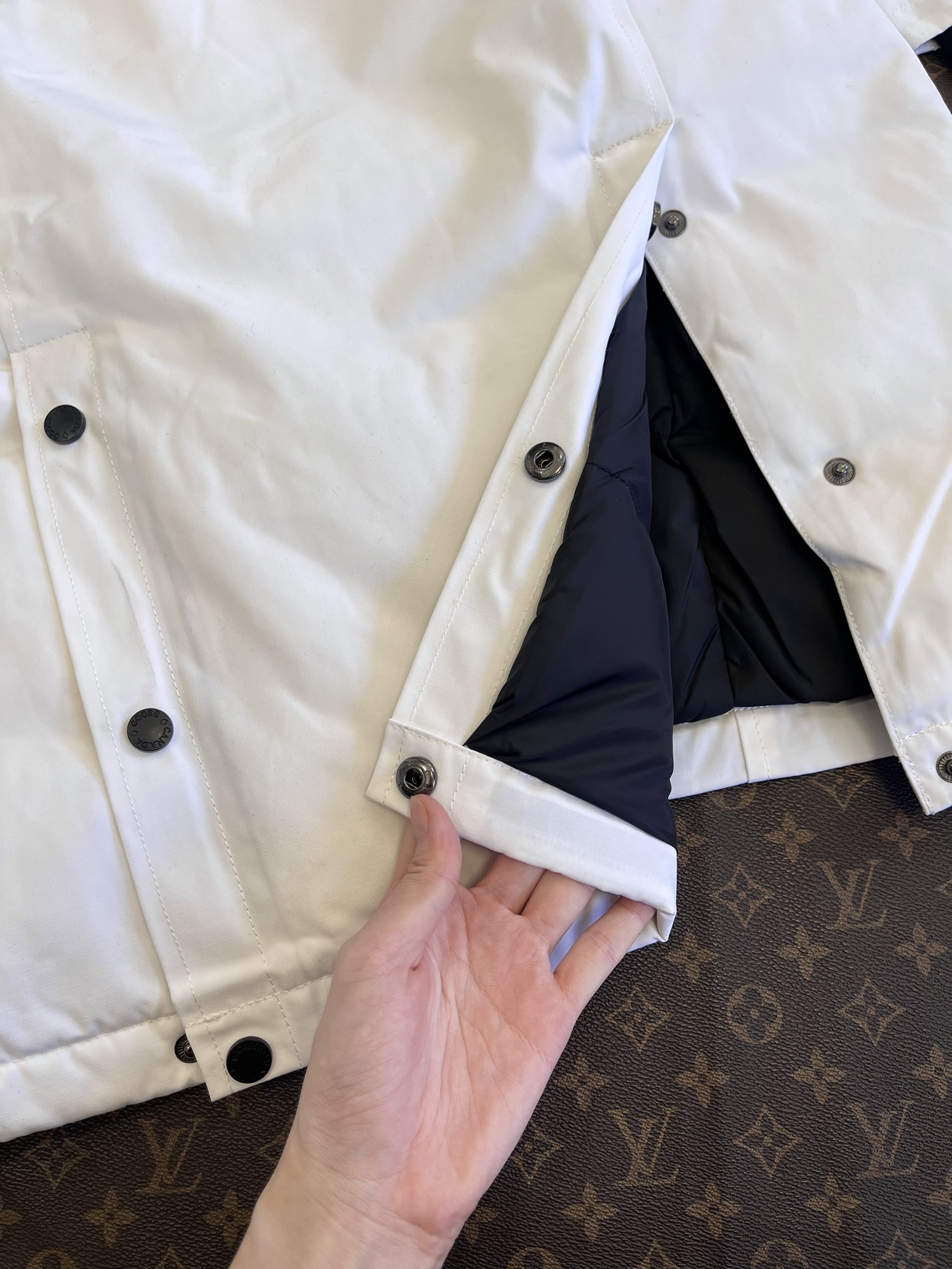 白色 防风表层的高科技防撕裂面料制成,高级客供细腻羽绒,由85%的涤纶和15%棉组成,表面特殊防护涂层处理可防风,品牌方特供YKK五金拉链,重点推荐,那种质感丝滑,卖过好货得自然知道这种好东西。全身多个口袋设计既可以拿来拗造型也可以拿来装物品。口袋处的LOGO设计和品牌名设计更能体现大牌范