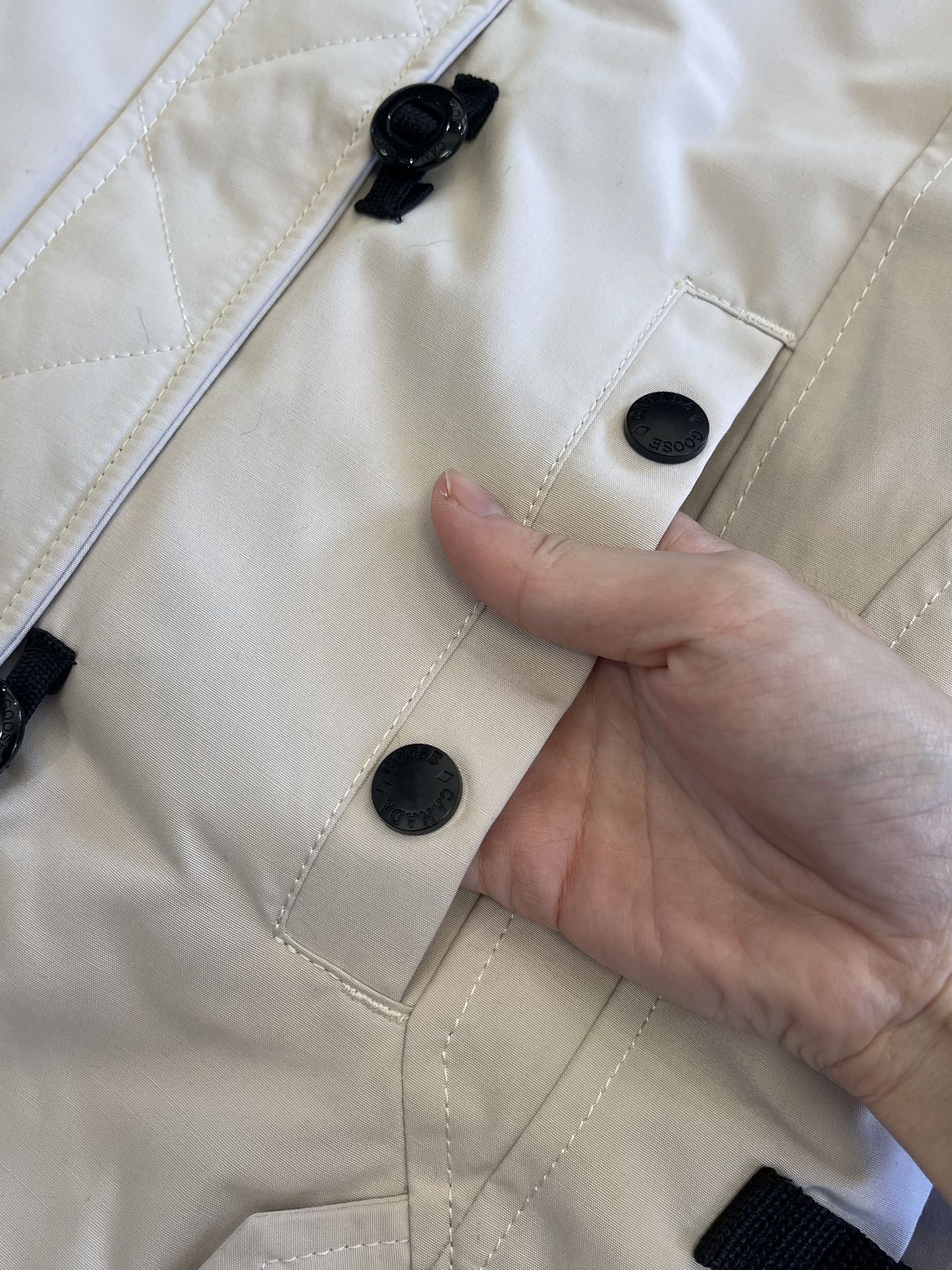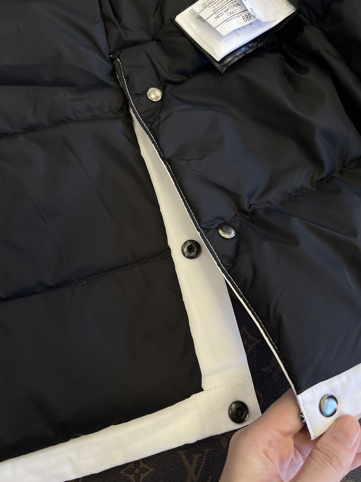 原吊牌洗水唛❗️三标齐全 ,面布1:85%涤纶 15%棉 面布2:100%尼龙,里布:100%涤纶 填充物:白鸭绒 夹层:100%涤纶