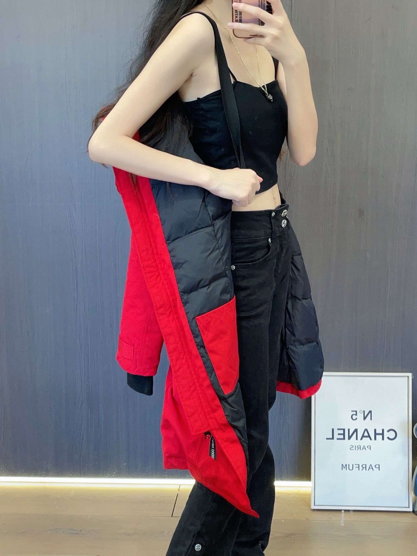 红色 xij红色羽绒服更是区别于常规的黑白灰这种带有活力的颜色醒目大方,每一抹红色都是迎接新开始的信号灯。鸭绒填充,不含任何羽毛杂质。蓬松度达到675(蓬松度是非常核心的区别点)选用优质松加拿大白鸭绒,足以抵抗零下10-20度的极寒天气,那种保暖效果简直是恐怖的!如果你怕冷的体质,这个款是你最好的选择,不是暖是会热!!!
