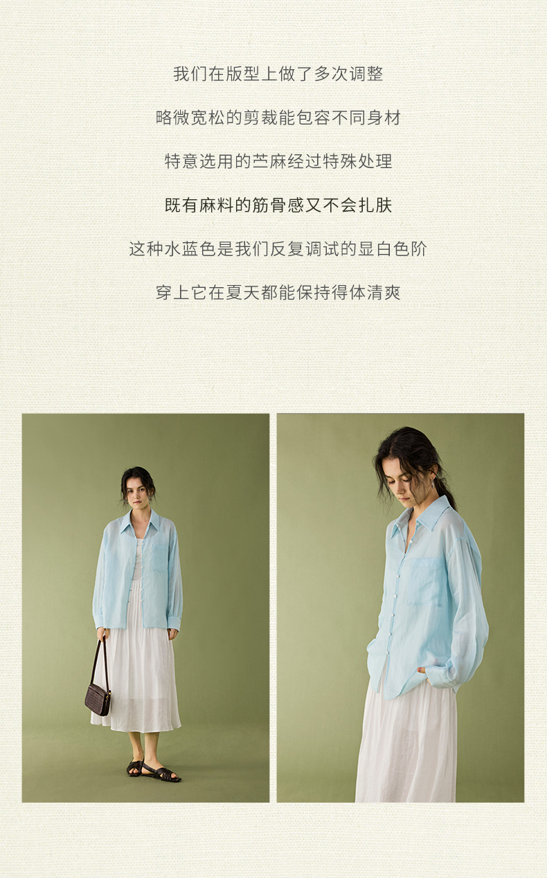 【潮汐备忘录】苎麻衬衫女夏季宽松薄款衬衣休闲防晒上衣