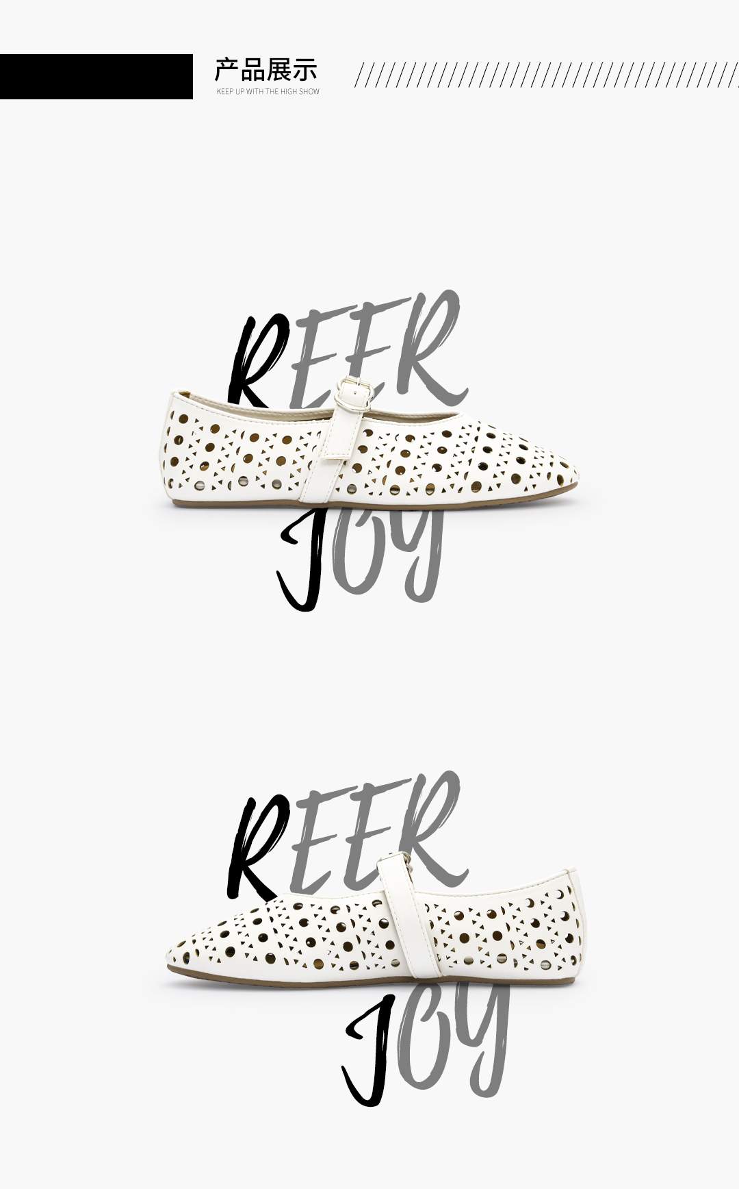 REREJOY 法式镂空浅口玛丽珍鞋圆头一字带芭蕾单鞋