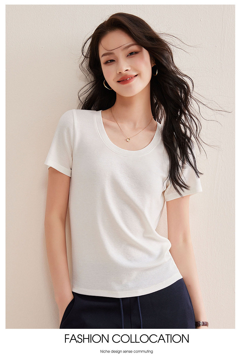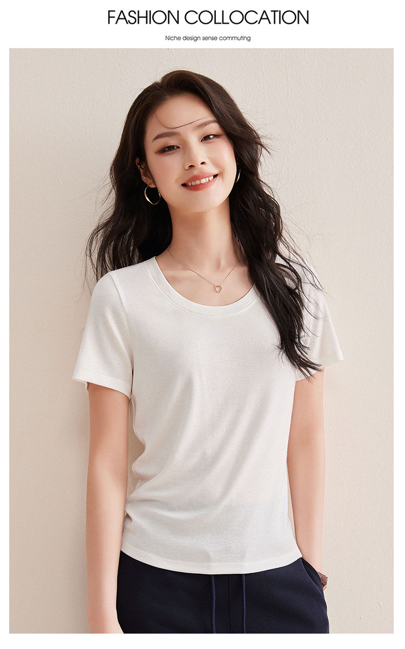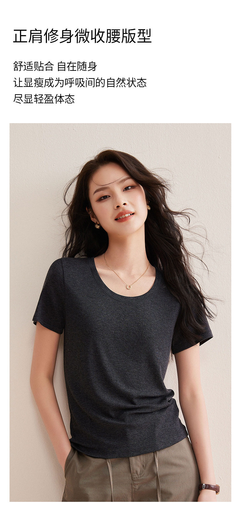 大U领天丝羊毛短袖t恤女面膜t2026新款夏季洋气修身上衣打底内搭  BY-M786 商品图3