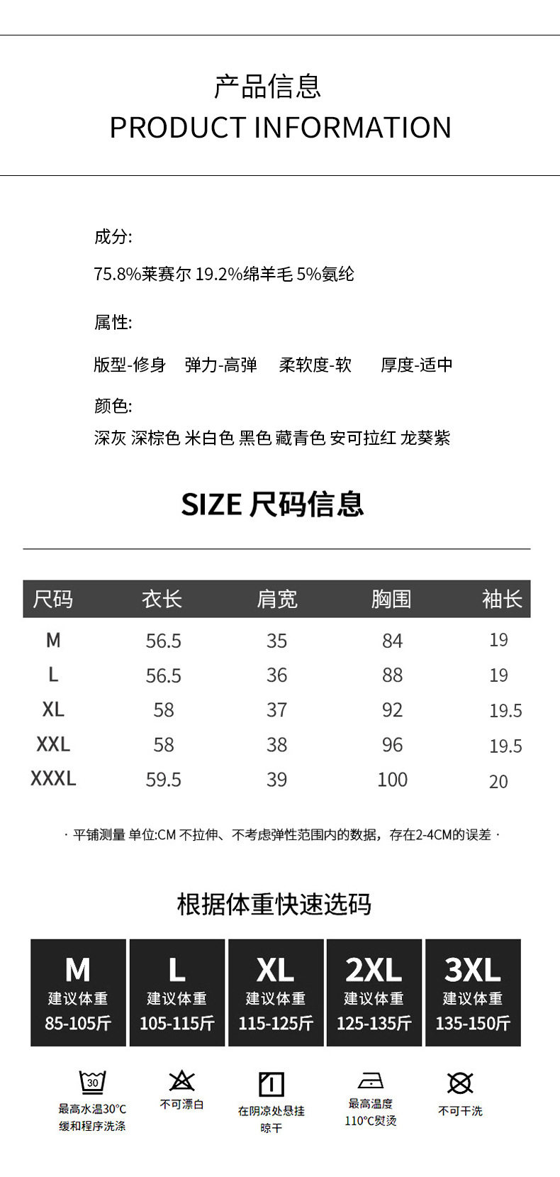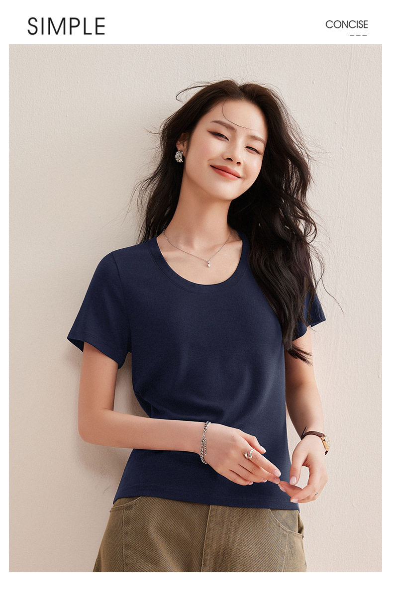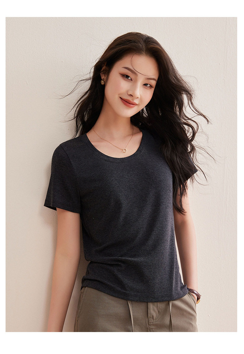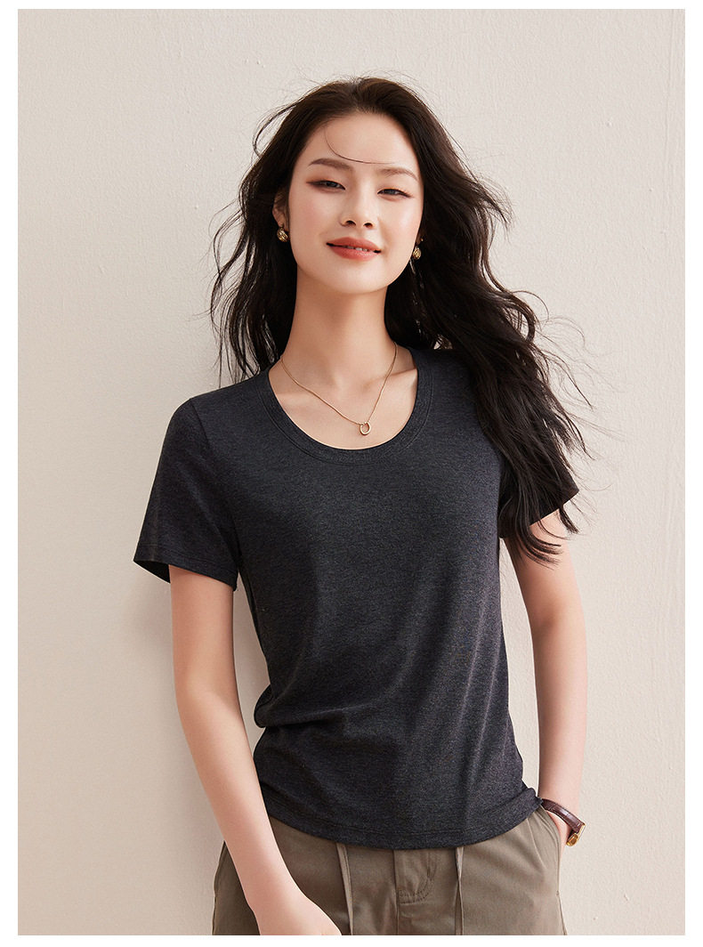 大U领天丝羊毛短袖t恤女面膜t2026新款夏季洋气修身上衣打底内搭  BY-M786 商品图3