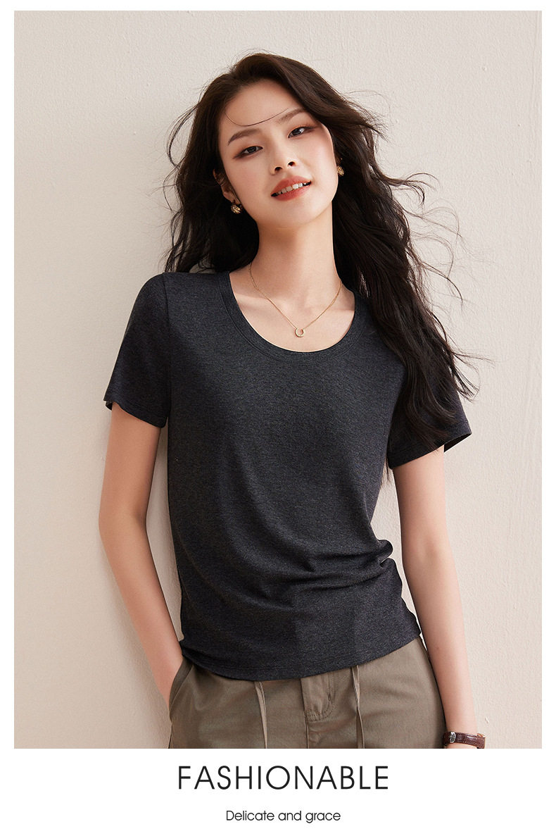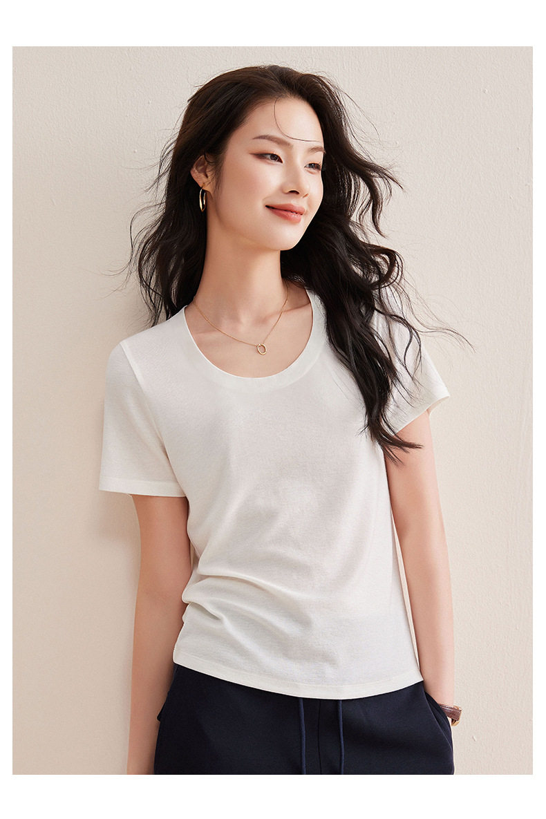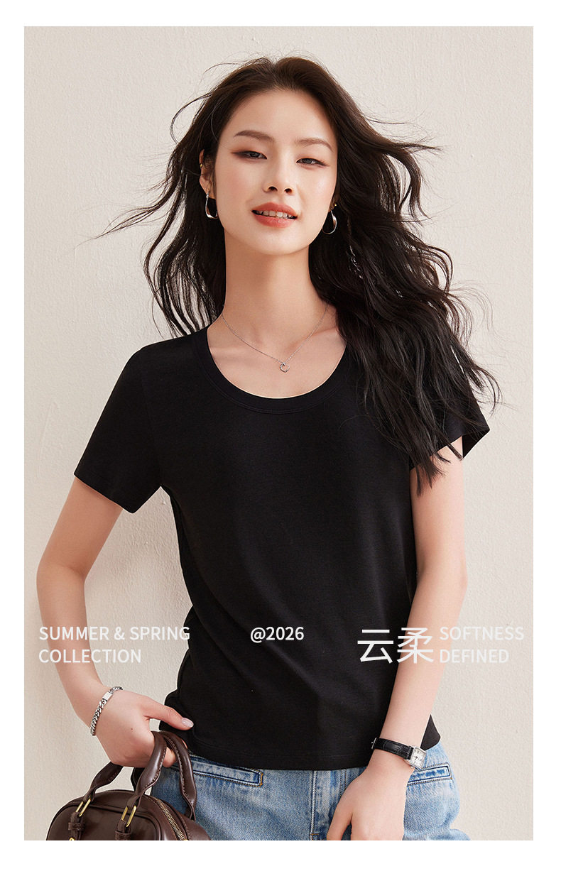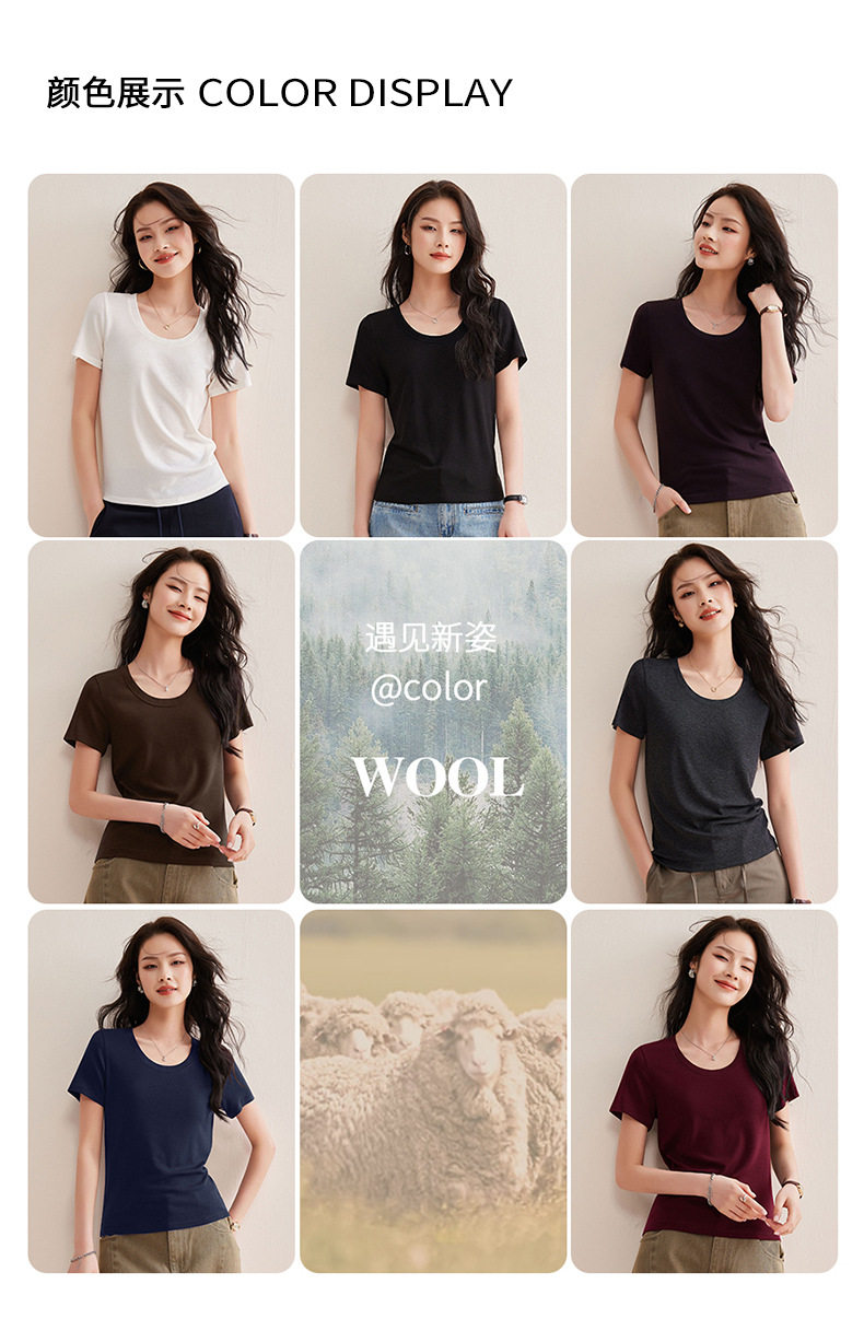 大U领天丝羊毛短袖t恤女面膜t2026新款夏季洋气修身上衣打底内搭  BY-M786 商品图0