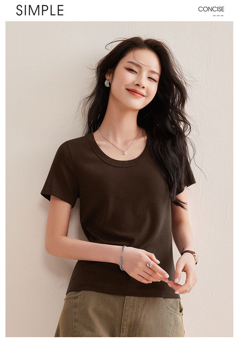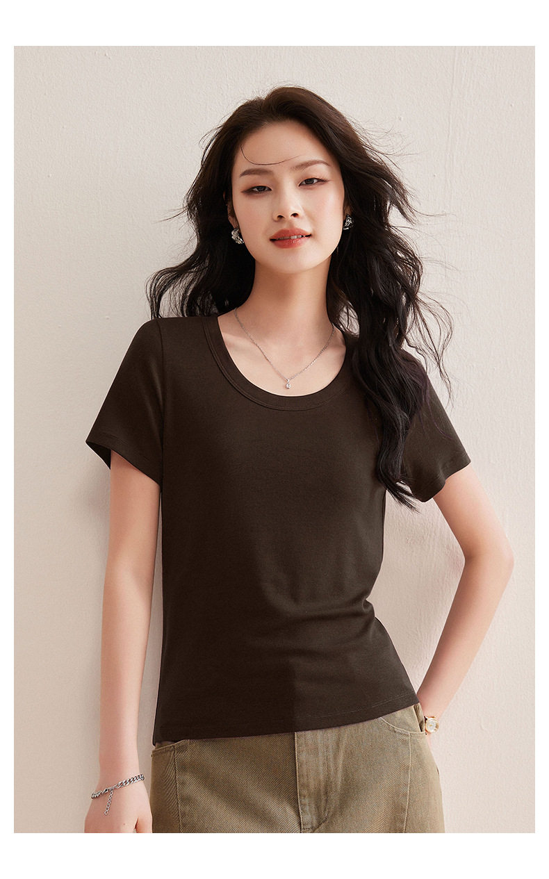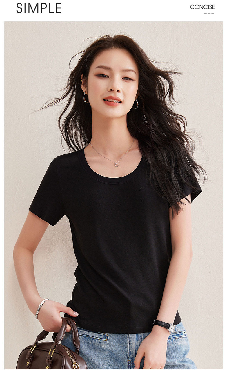 大U领天丝羊毛短袖t恤女面膜t2026新款夏季洋气修身上衣打底内搭  BY-M786 商品图0
