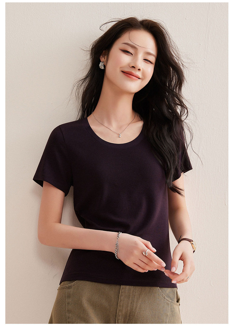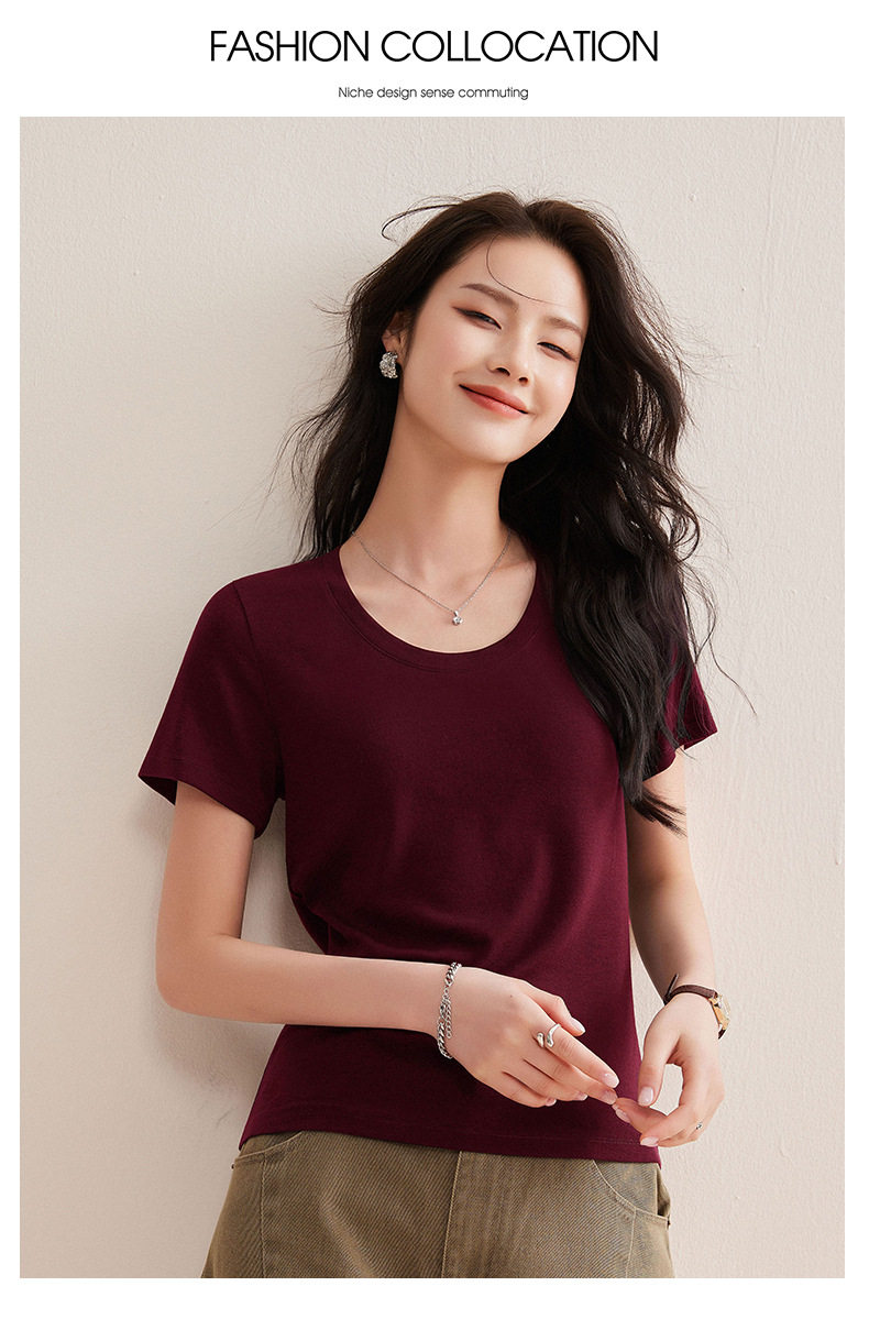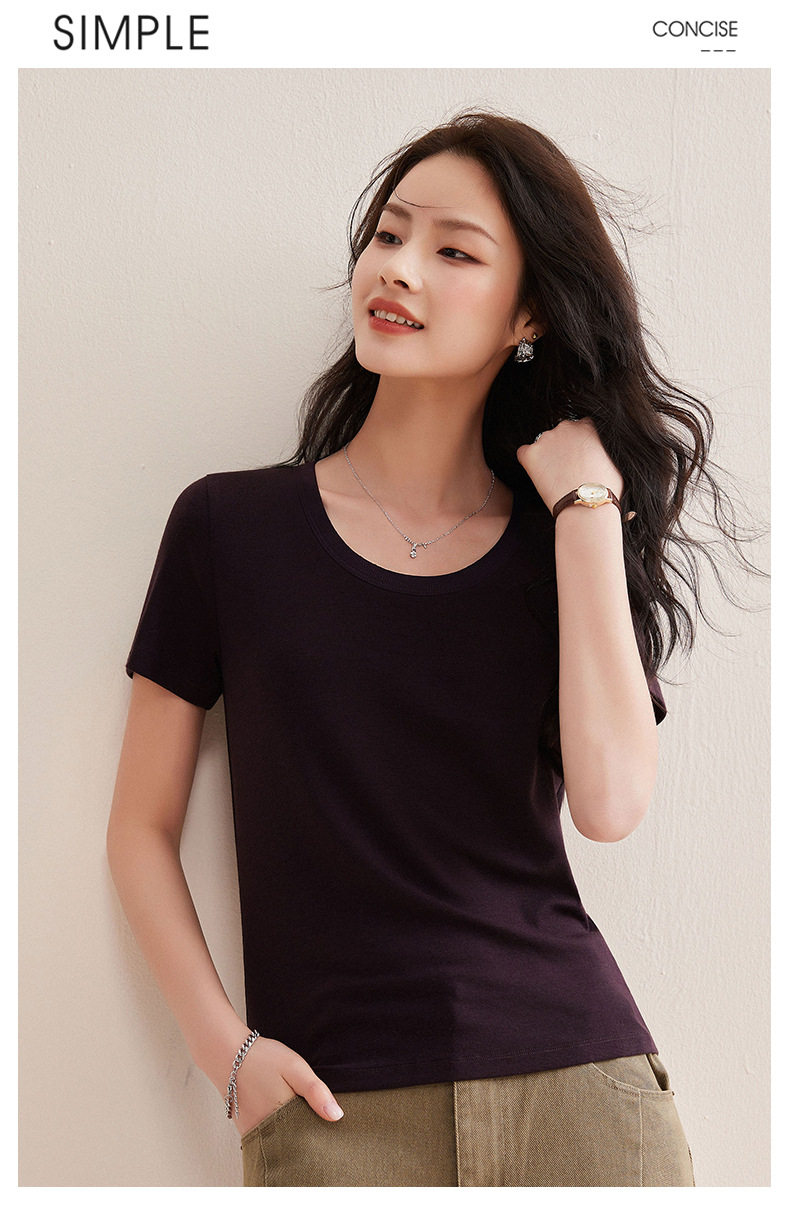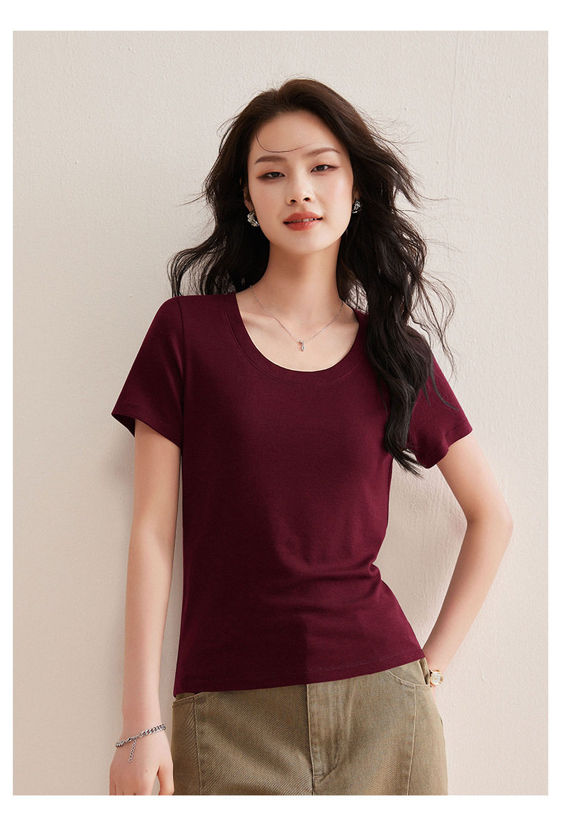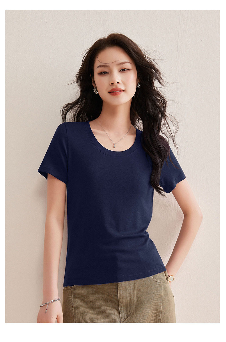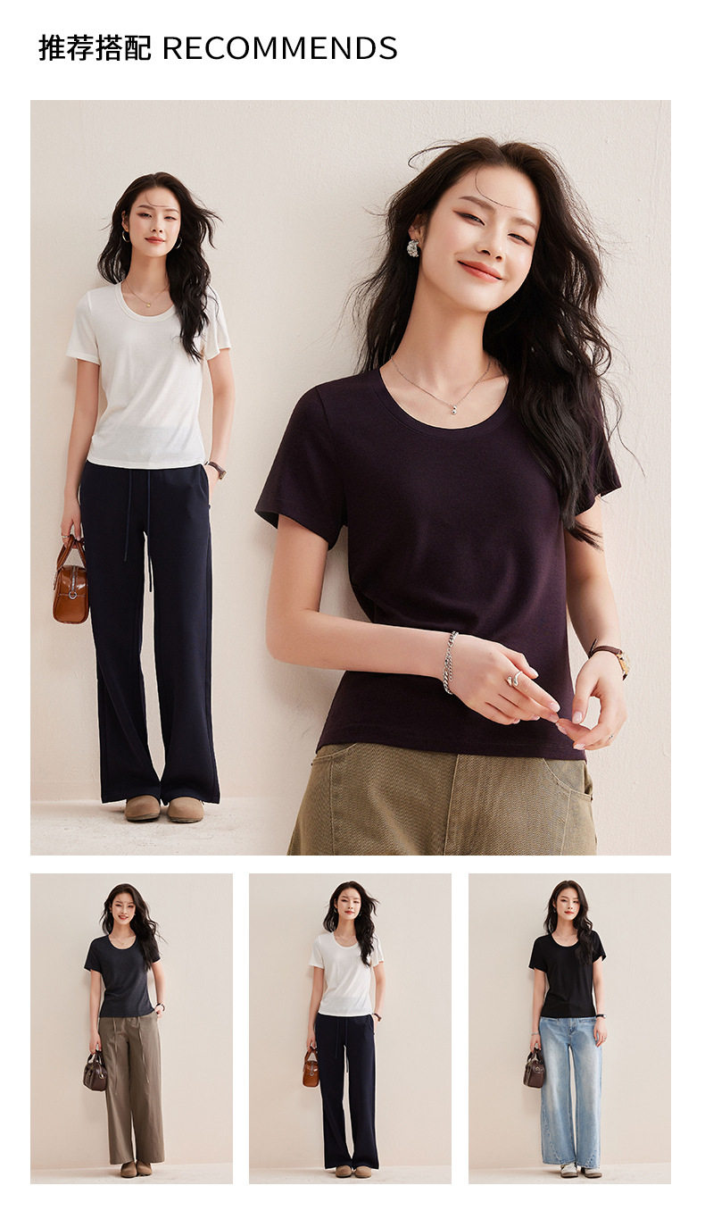 大U领天丝羊毛短袖t恤女面膜t2026新款夏季洋气修身上衣打底内搭  BY-M786 商品图2