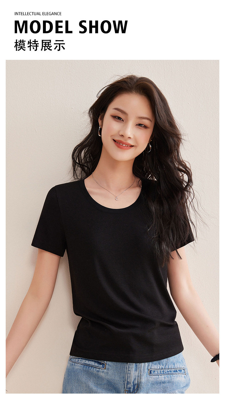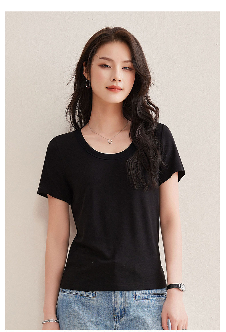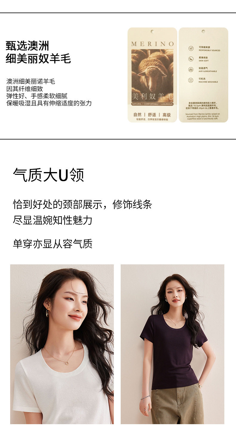 大U领天丝羊毛短袖t恤女面膜t2026新款夏季洋气修身上衣打底内搭  BY-M786 商品图4