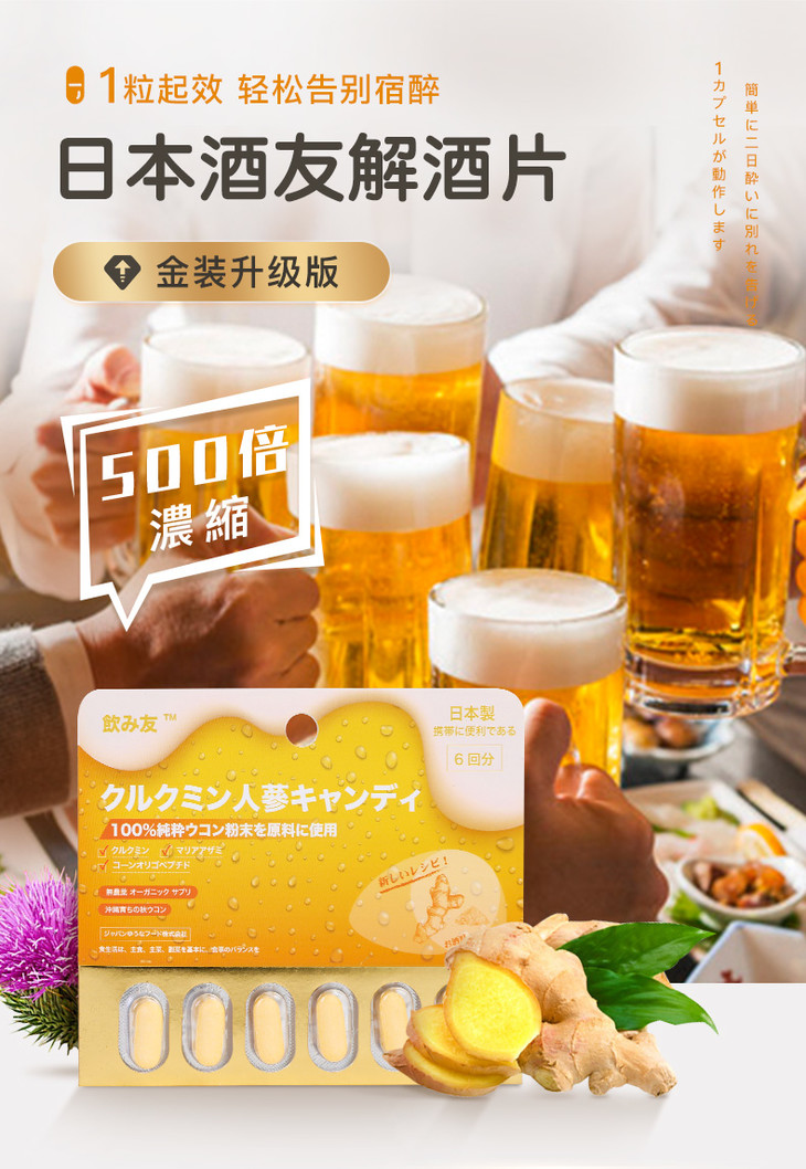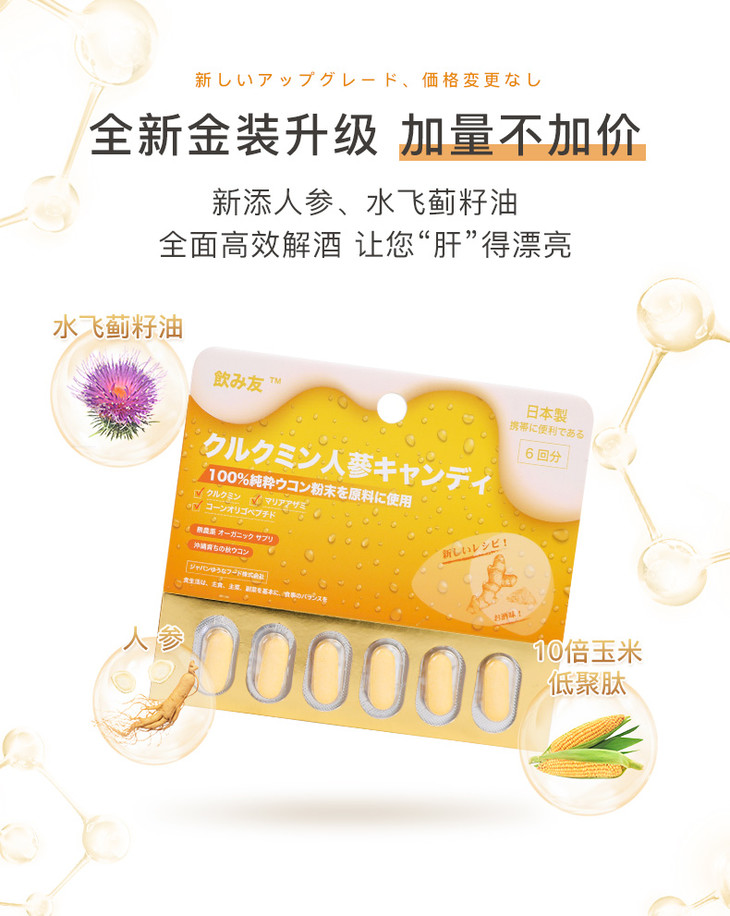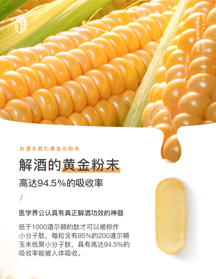 【快速解酒500倍浓缩】二代日本酒友玉米低聚肽解酒片新配方金装升级版激活解酒酶快速分解酒精告别宿醉保护肝脏