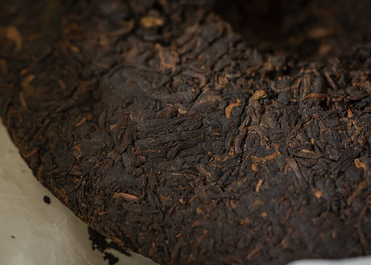 饼面圆整,条索清晰,乌褐油亮。