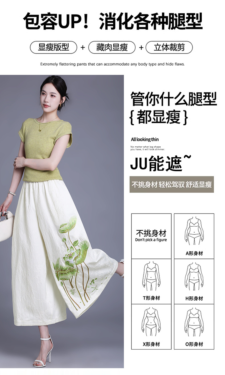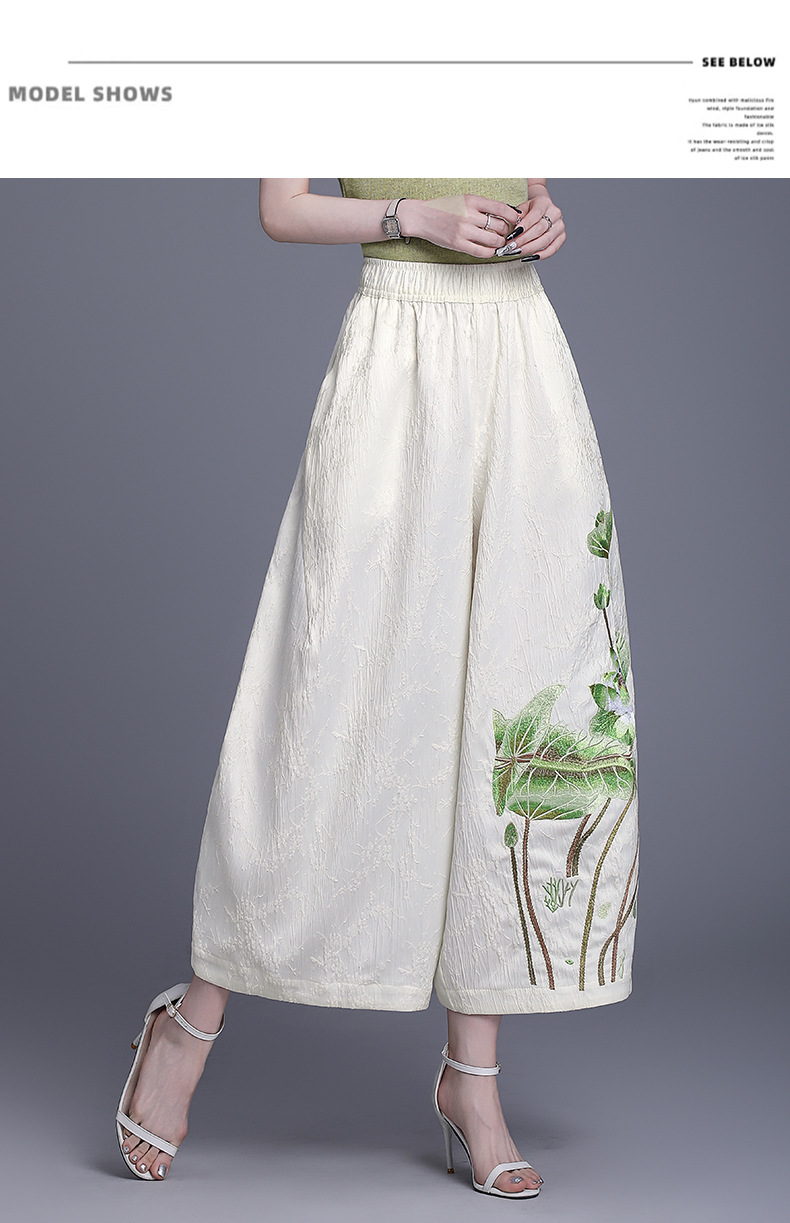 KQL 422H5303刺绣提花国风九分花苞裤宽松休闲裤松紧腰裤