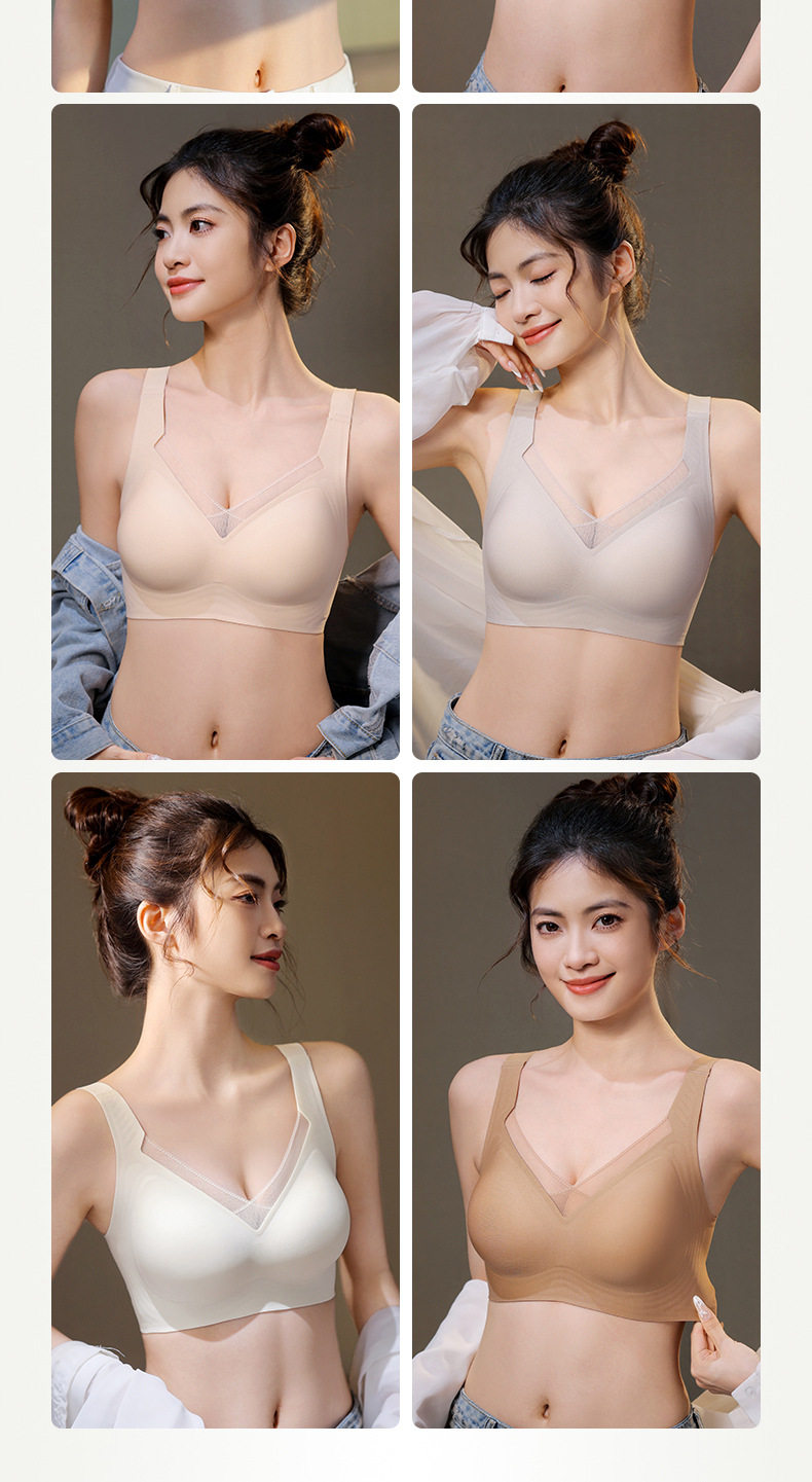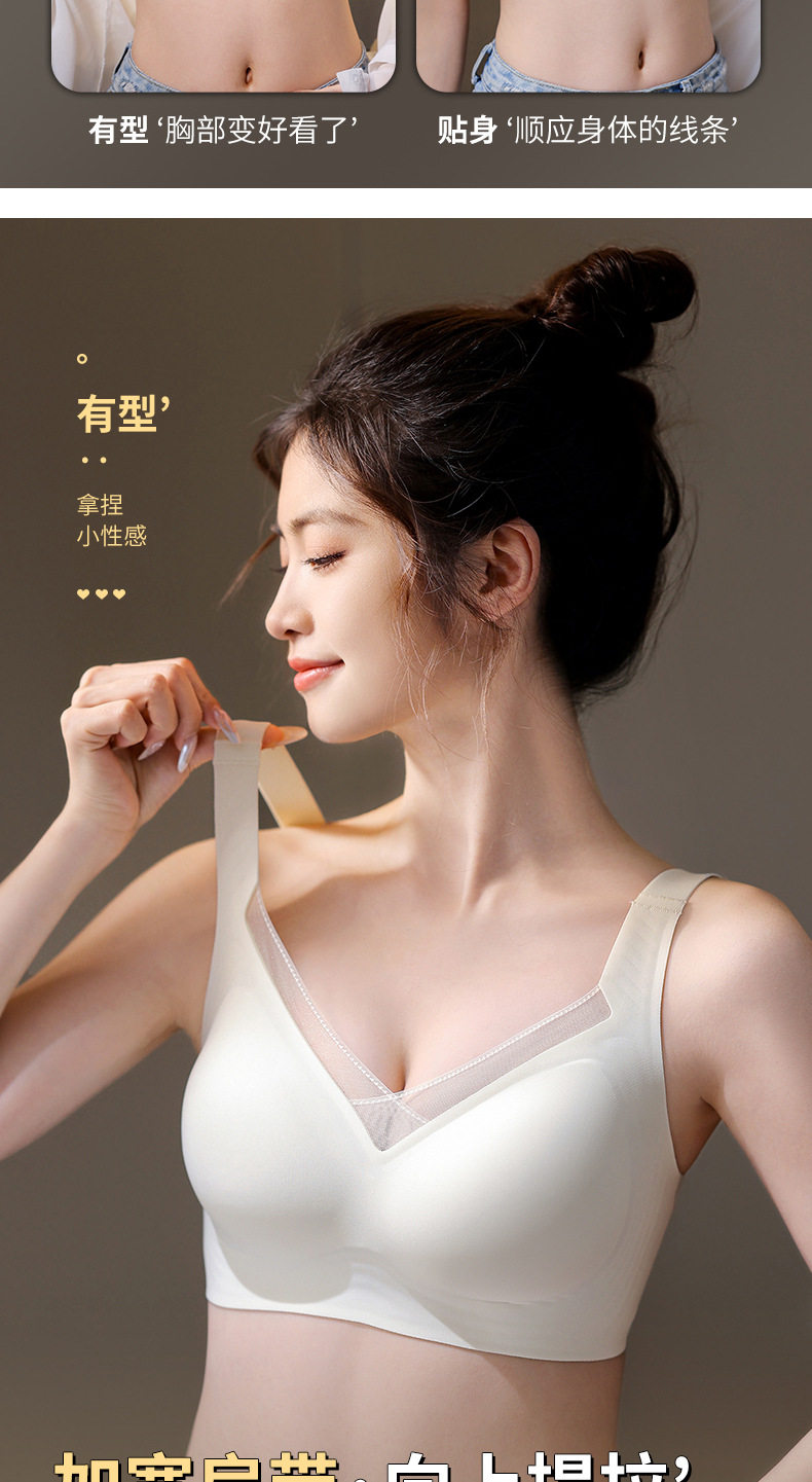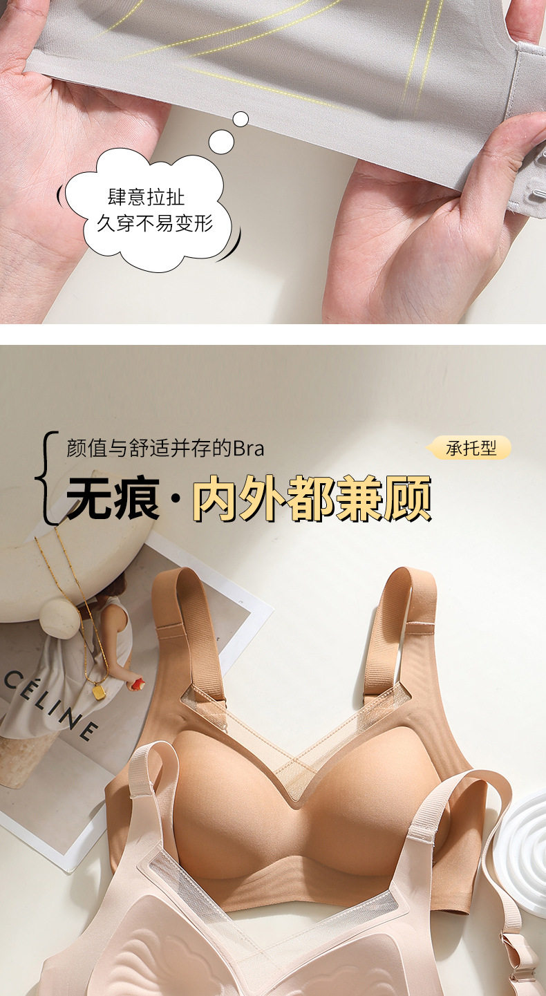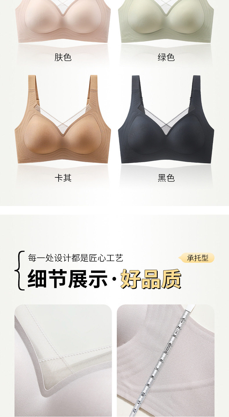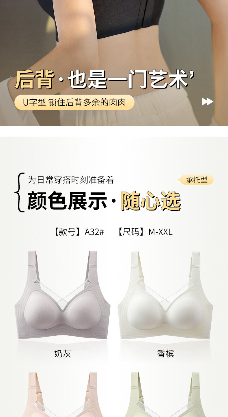 SDE-A32# 一体式固定杯无痕内衣女无钢圈软支撑收副乳光面网纱镂空文胸(单件)