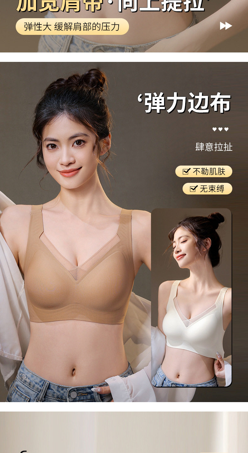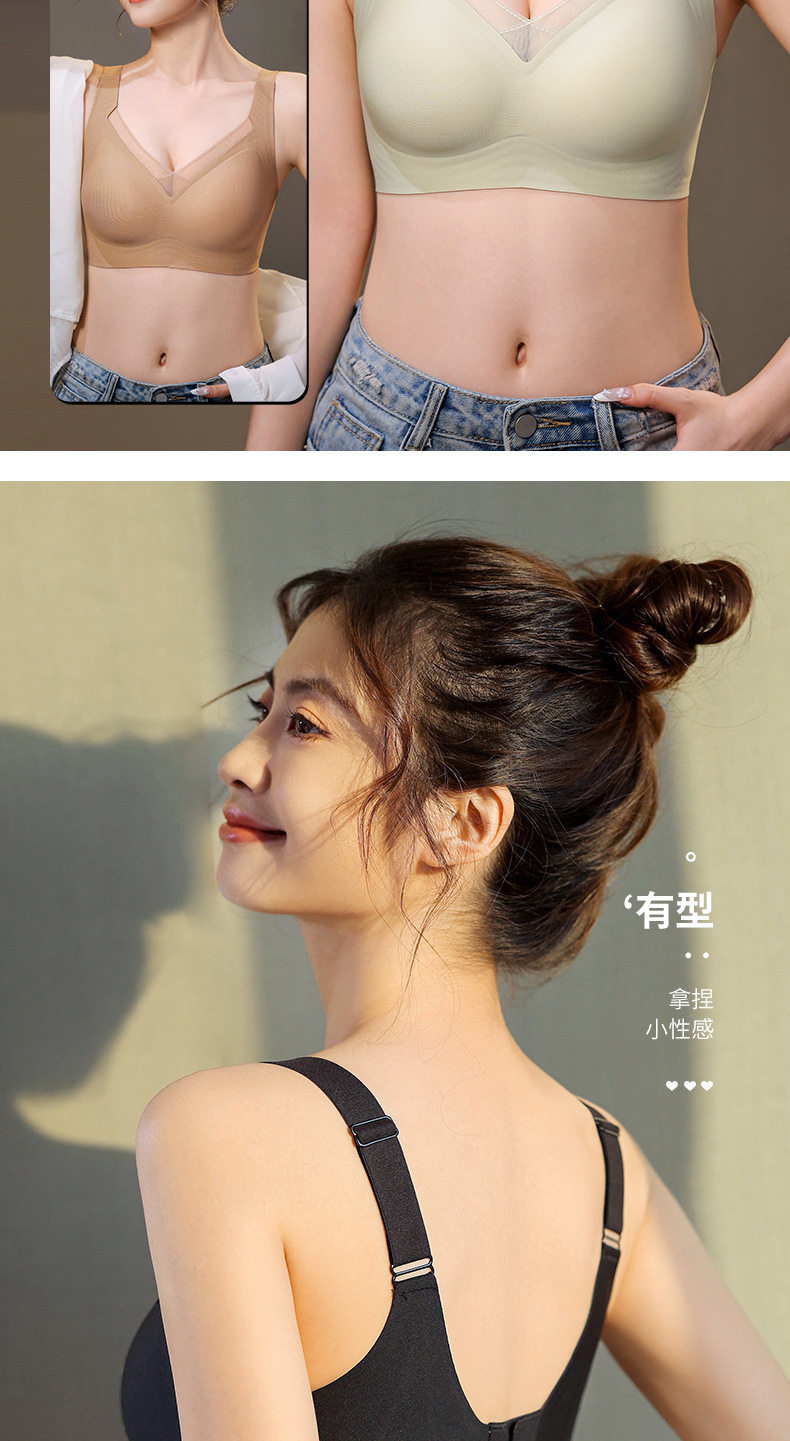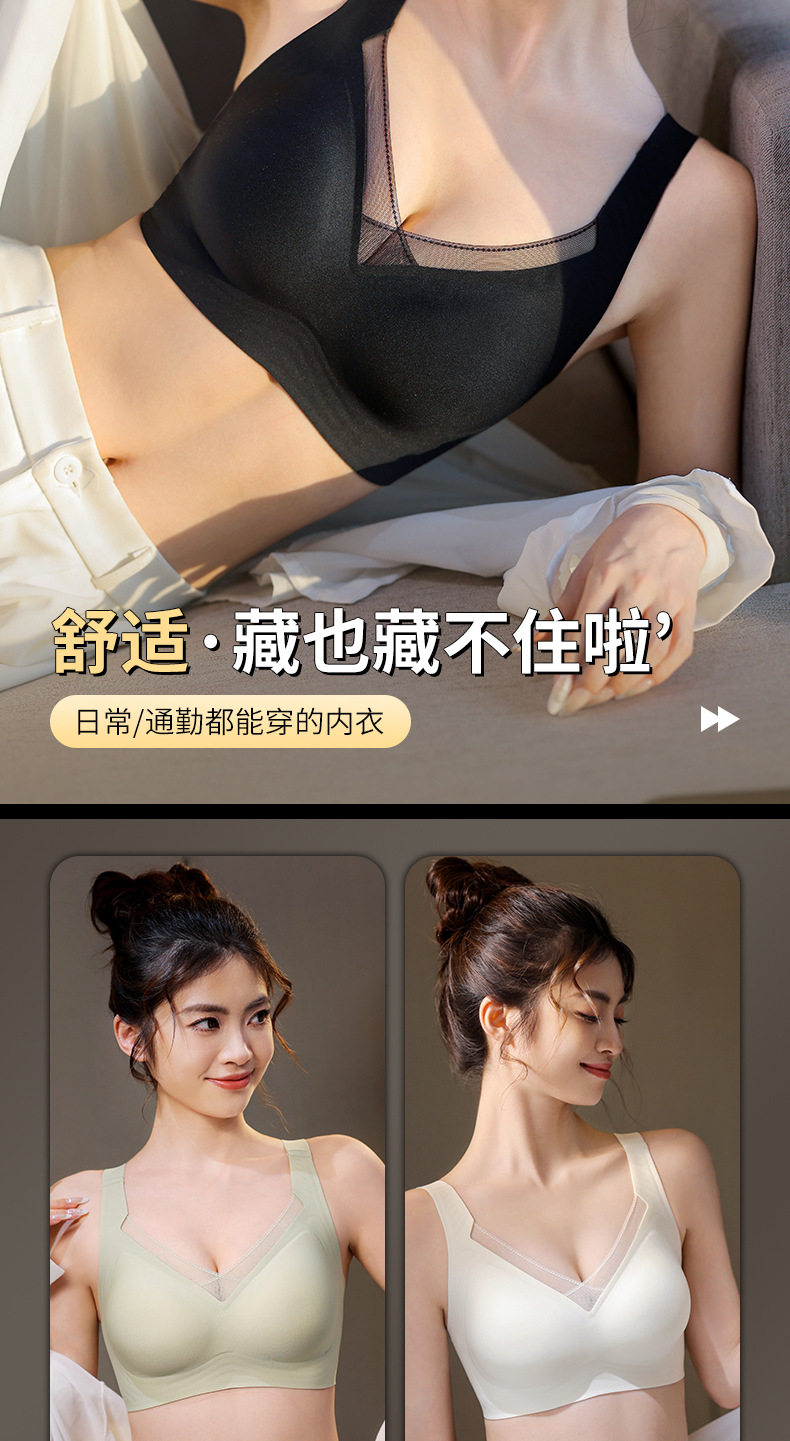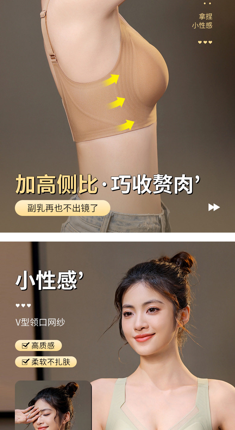 SDE-A32# 一体式固定杯无痕内衣女无钢圈软支撑收副乳光面网纱镂空文胸(单件)