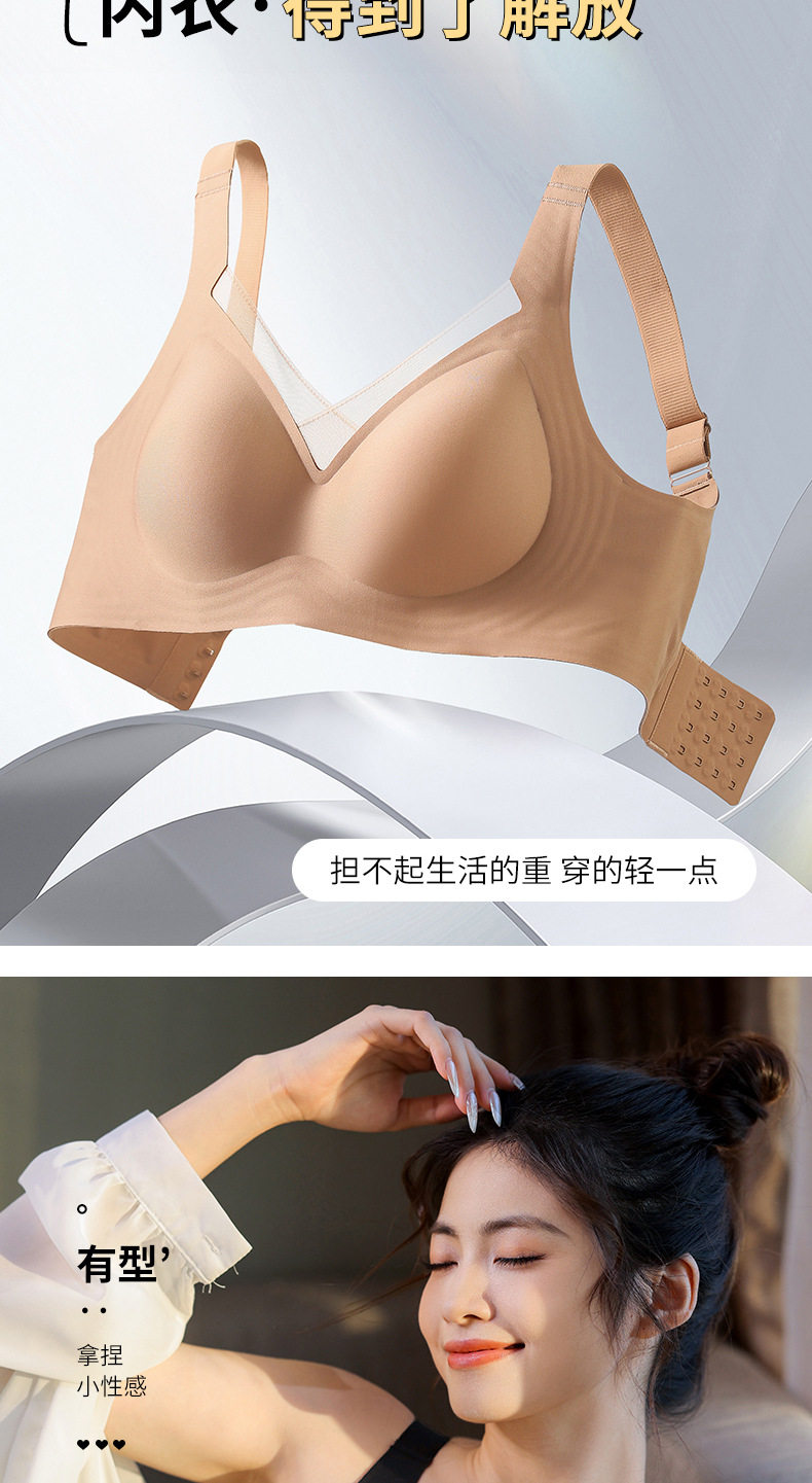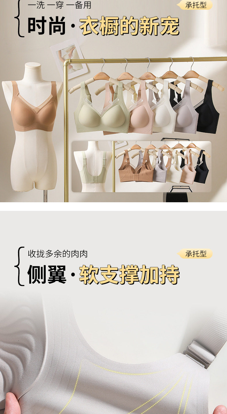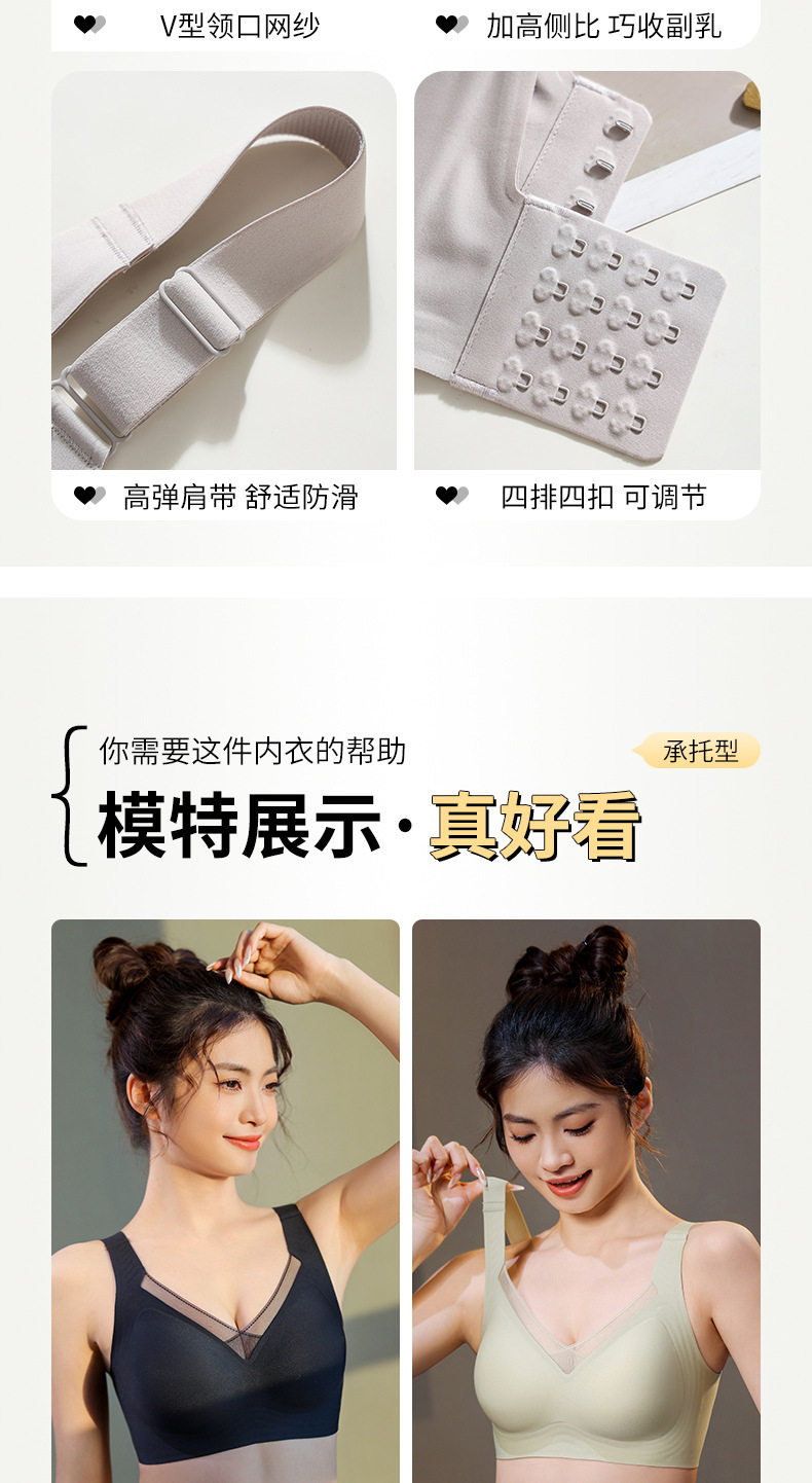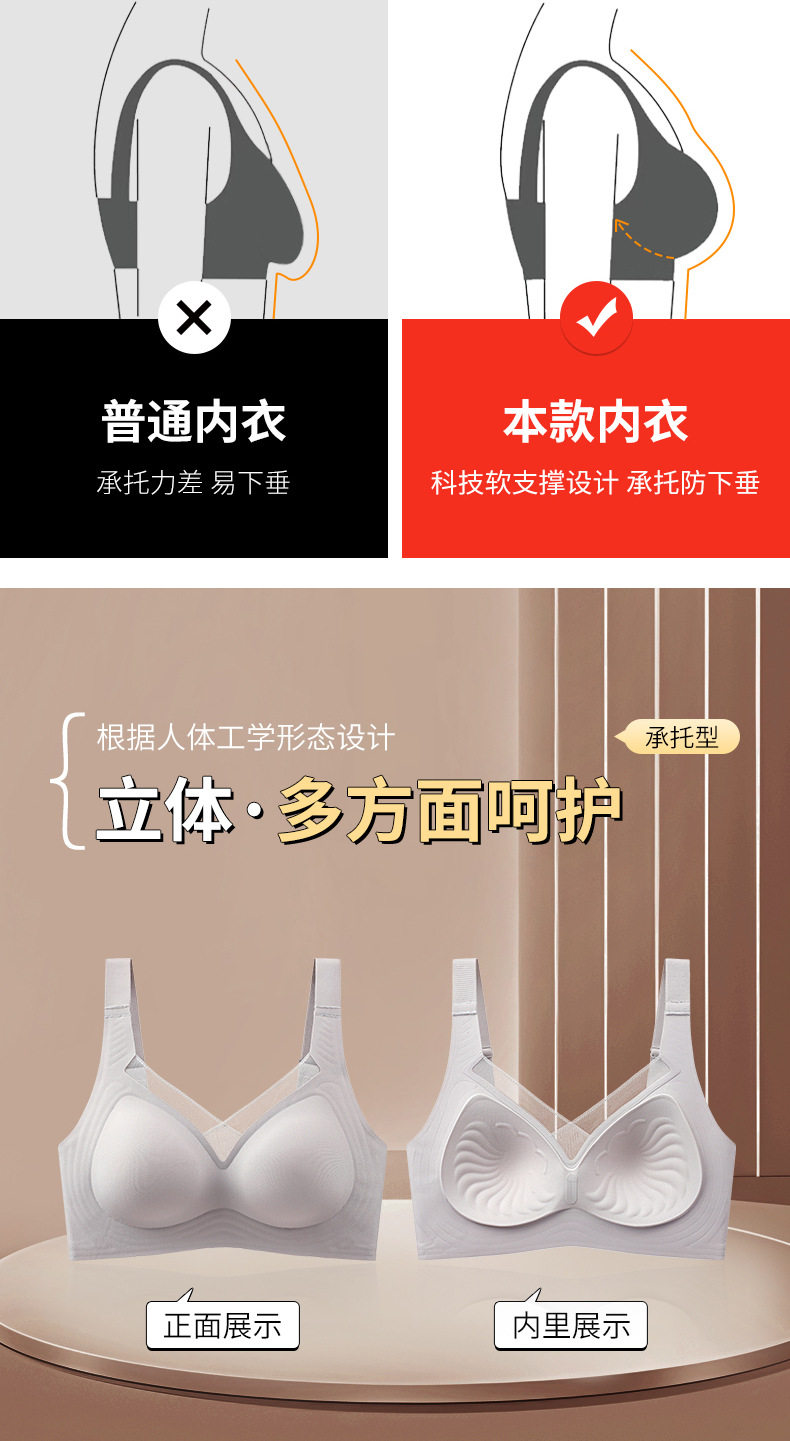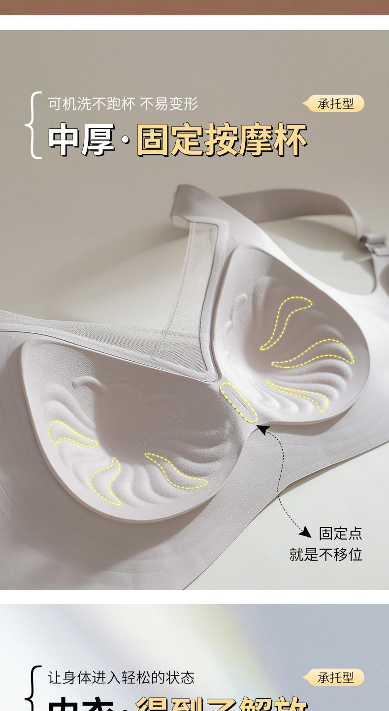 SDE-A32# 一体式固定杯无痕内衣女无钢圈软支撑收副乳光面网纱镂空文胸(单件)