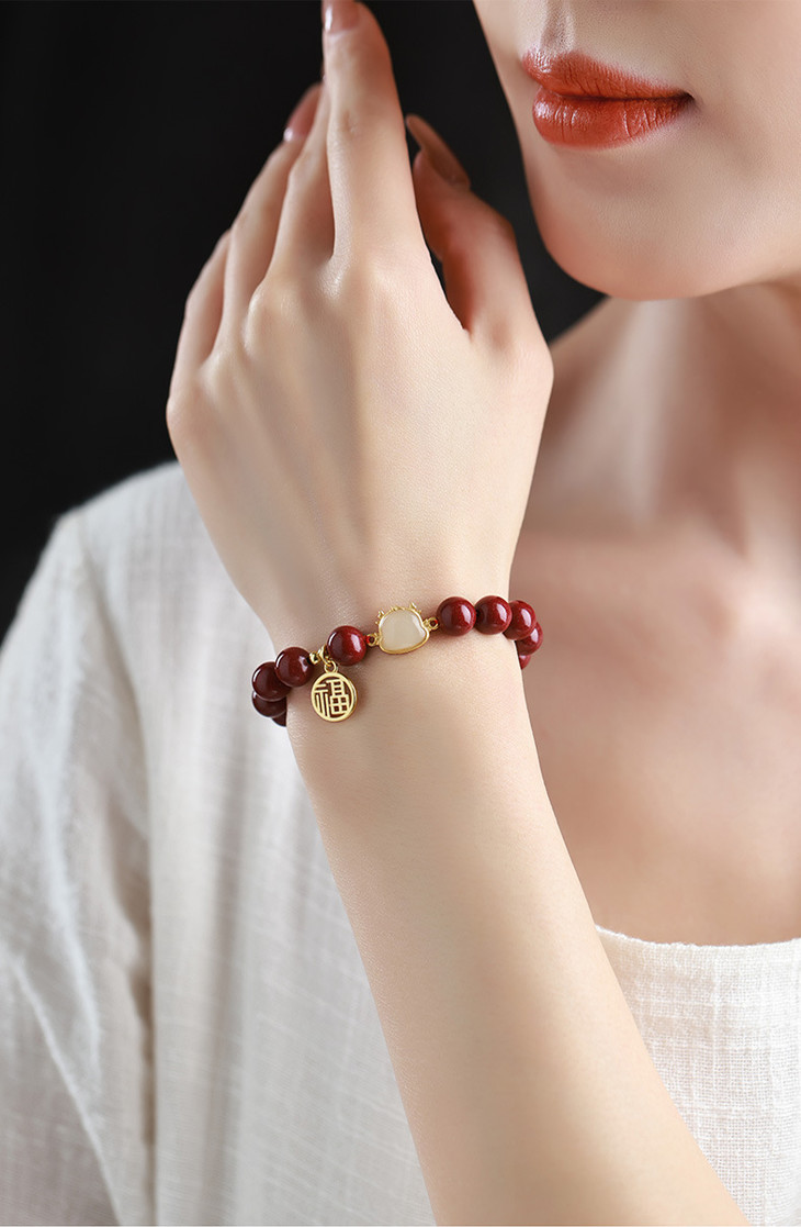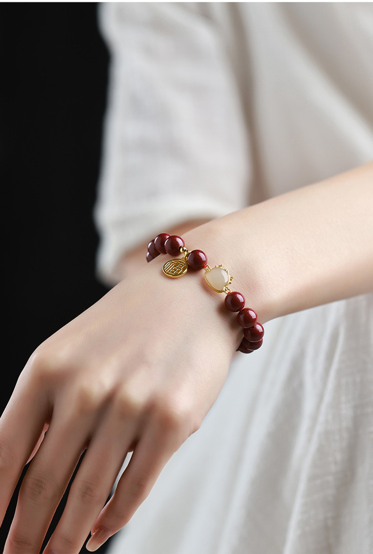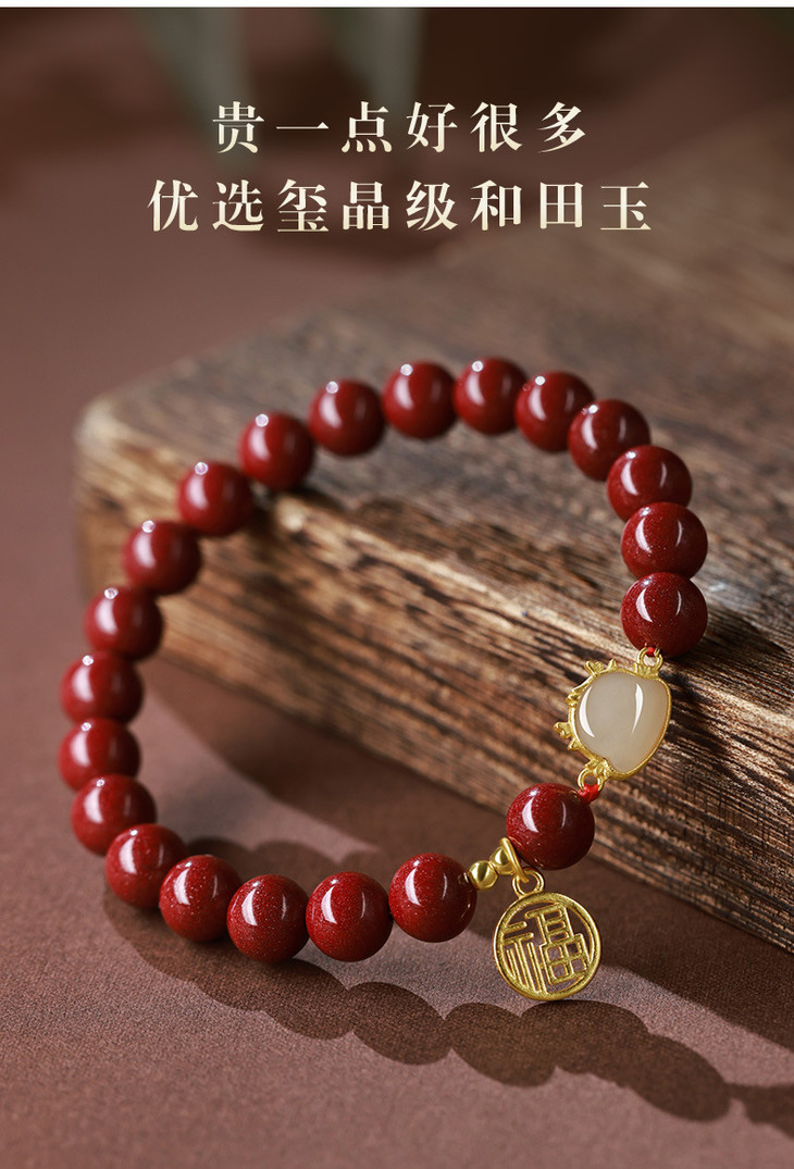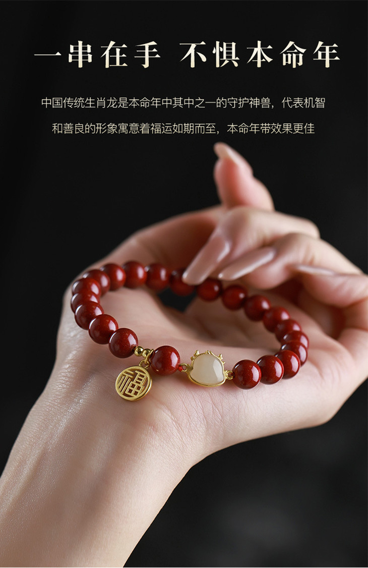 太清紫金砂手链银镶嵌和田玉祥龙本命年手串