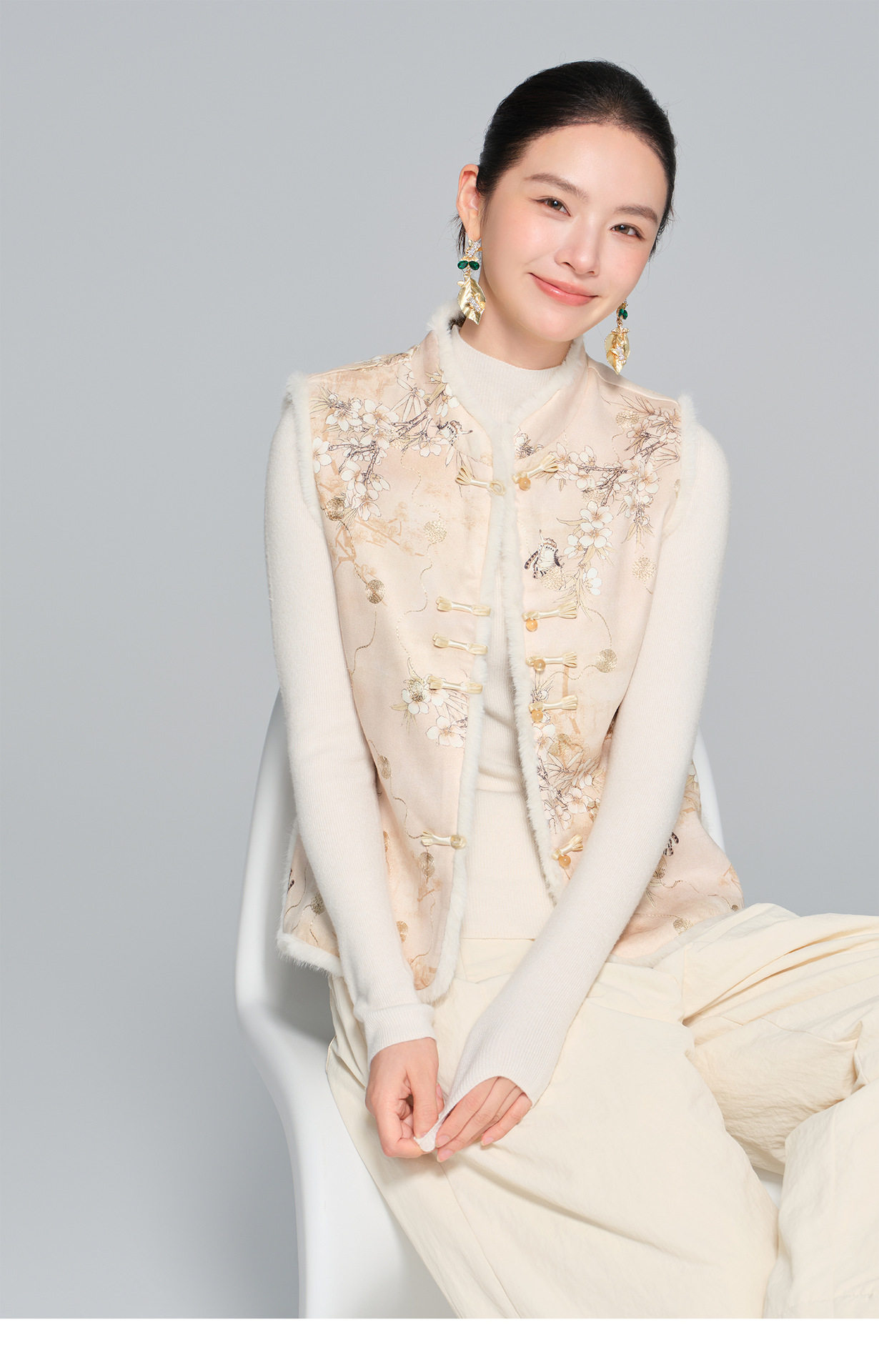 「自」全新升级【铂金会员220/天猫299/差价79】(42503)洛诗琳高级感新中式马甲2025冬季国风立领盘扣夹棉背心