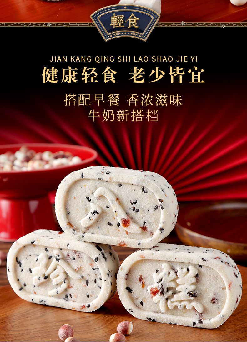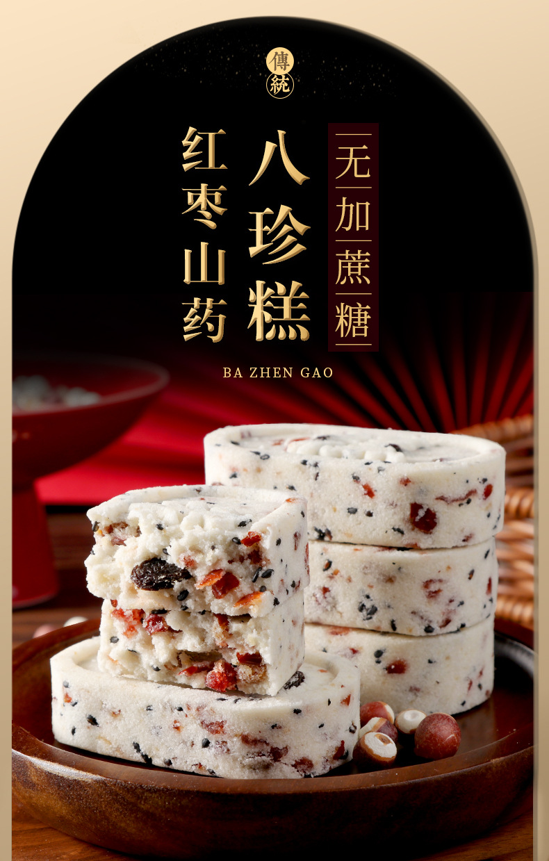 【健康轻食!还吃不腻】红枣山药八珍糕无蔗糖代餐饱腹传统中式糕点心茯苓芡实糕即食早餐。xa