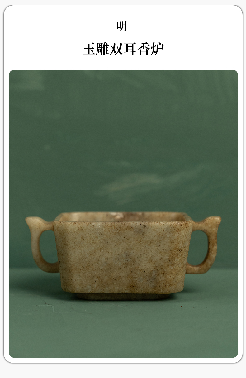 明 玉雕双耳香炉