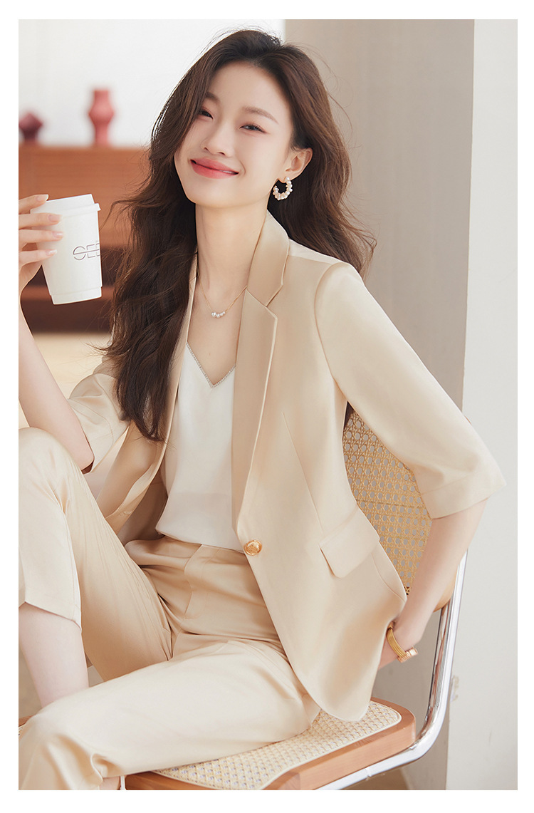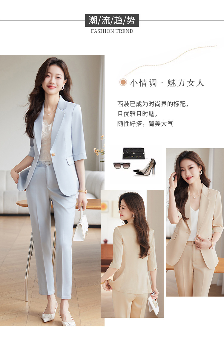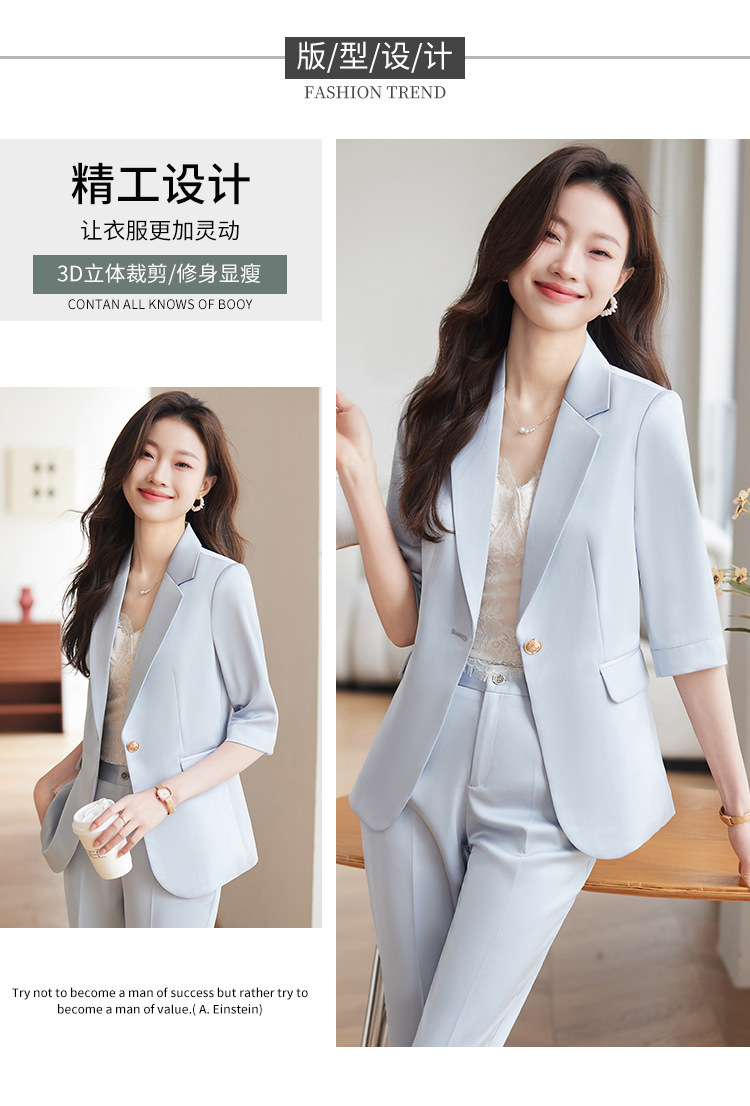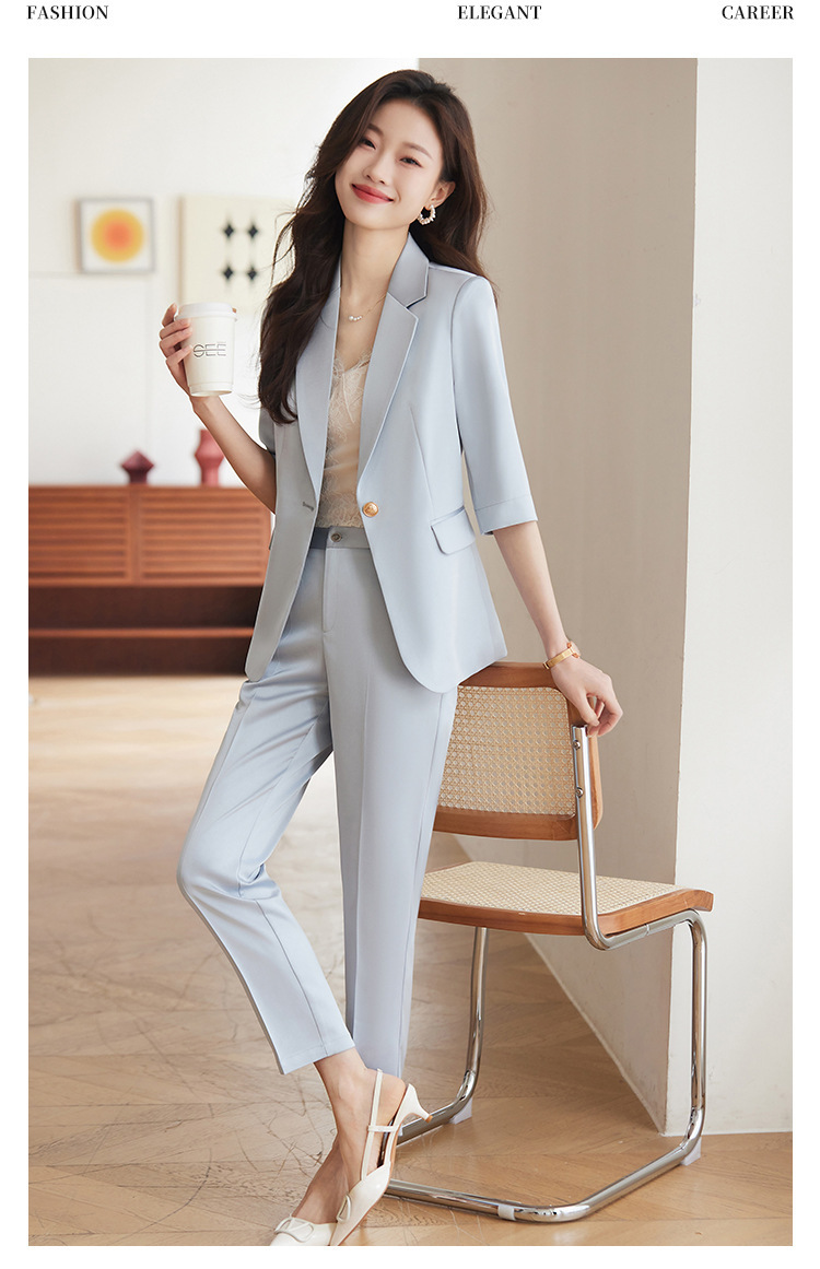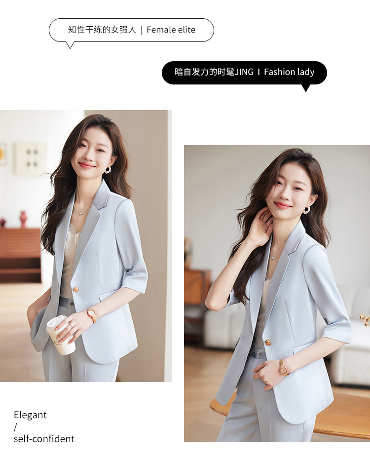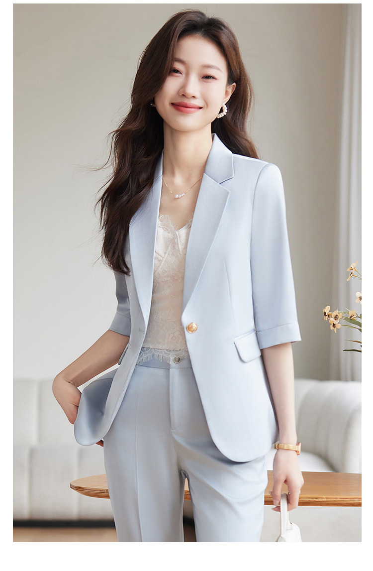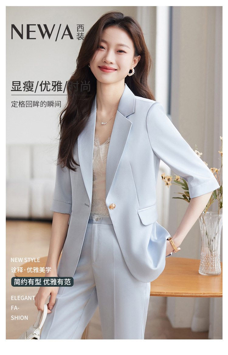 XZ-813浅蓝色中袖薄款外套小个子小西装套装女西服职业2024休闲春夏西服