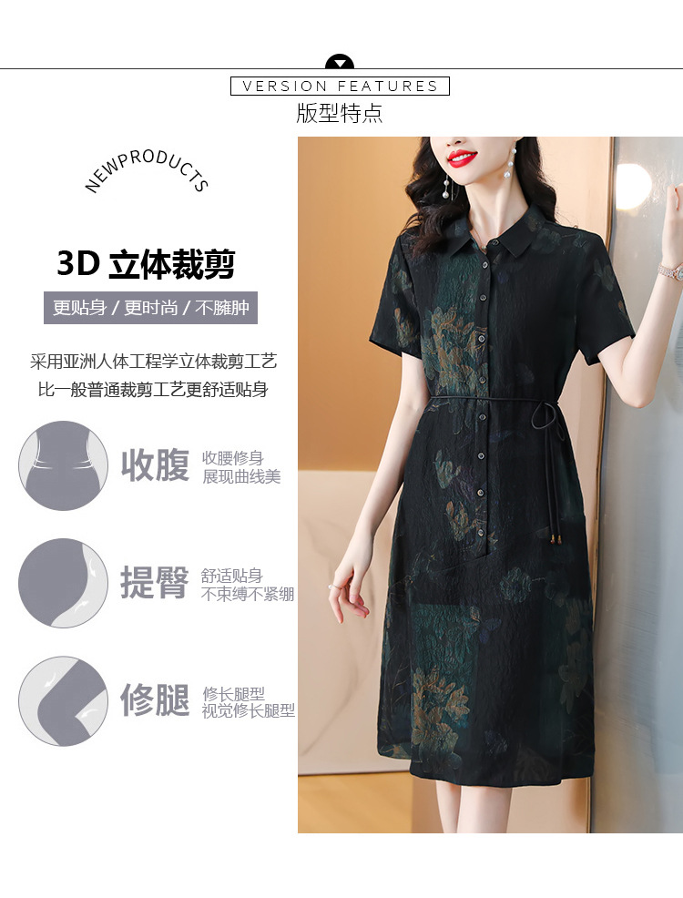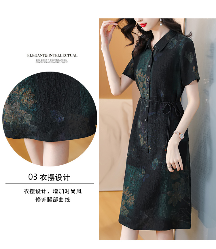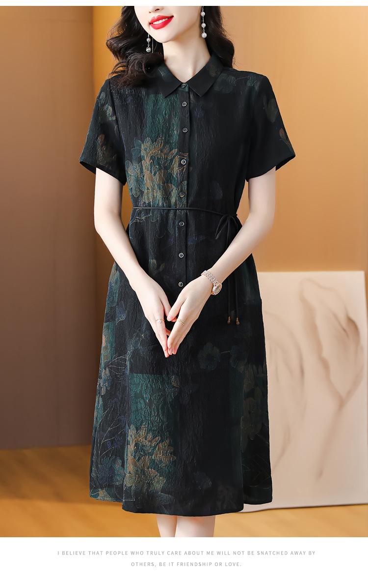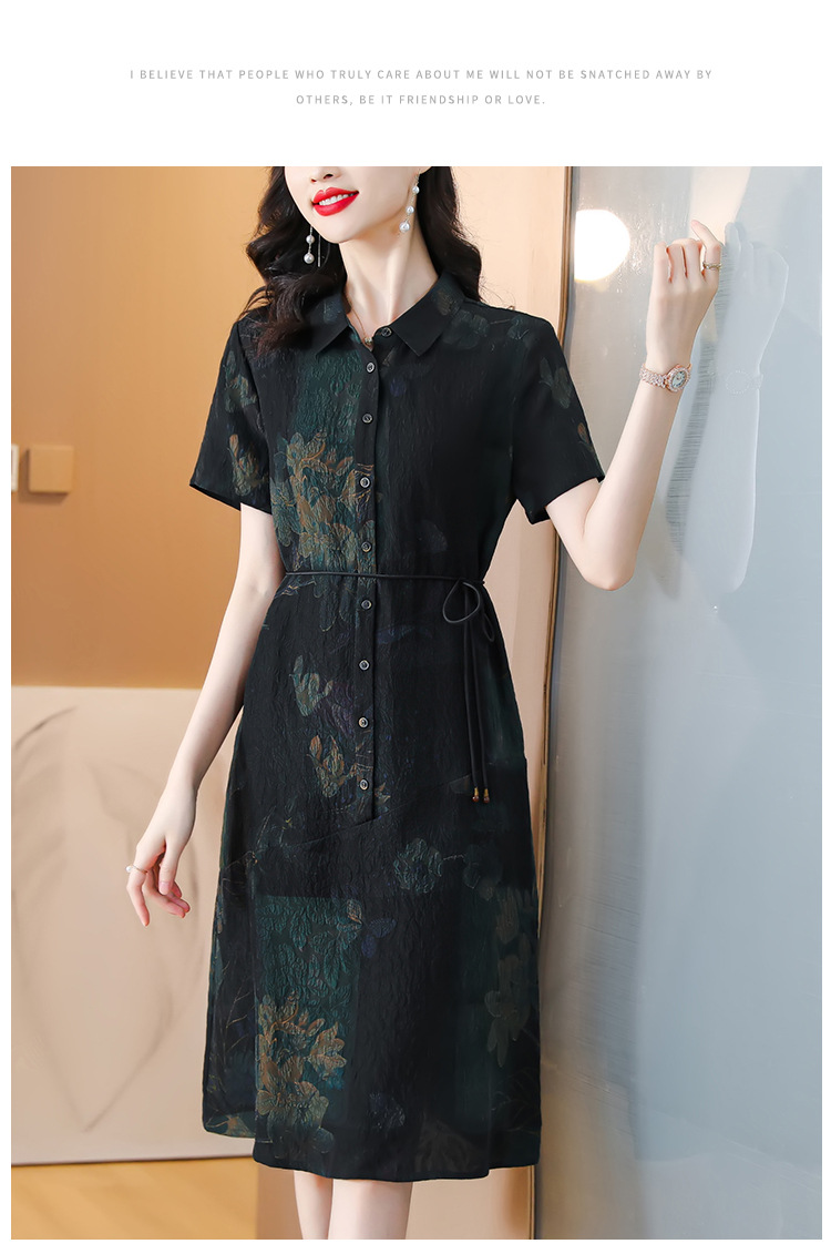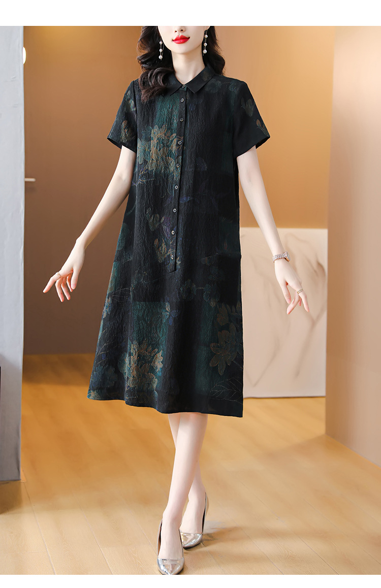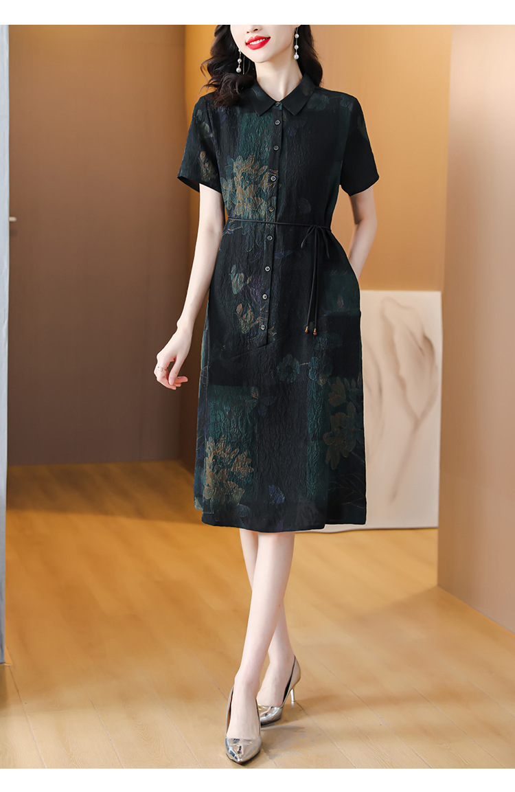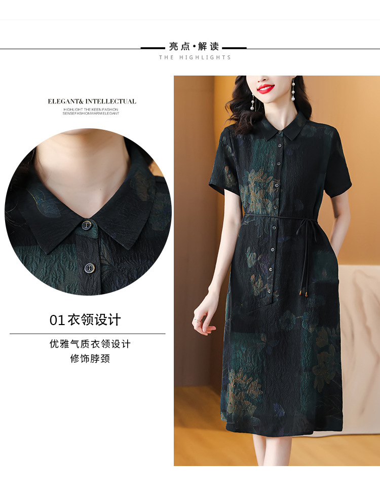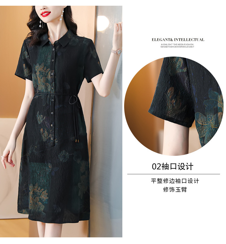A32707高品质减龄遮肉中年妈妈夏季新款真丝连衣裙复古香云纱桑蚕丝裙子