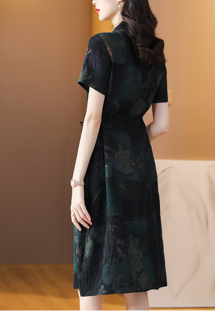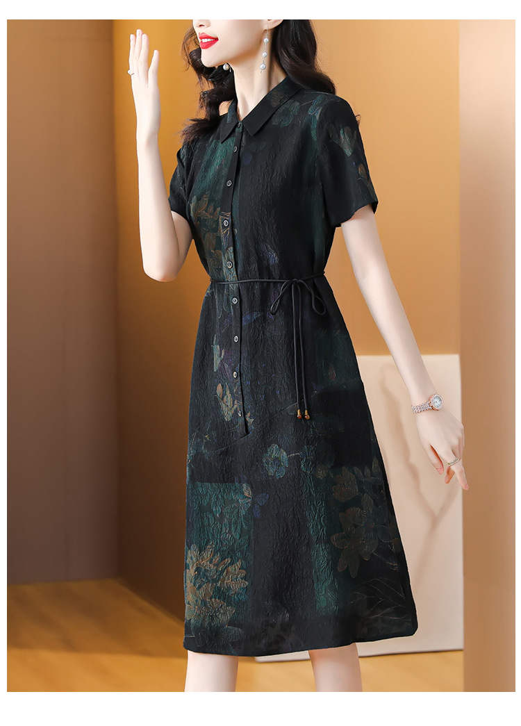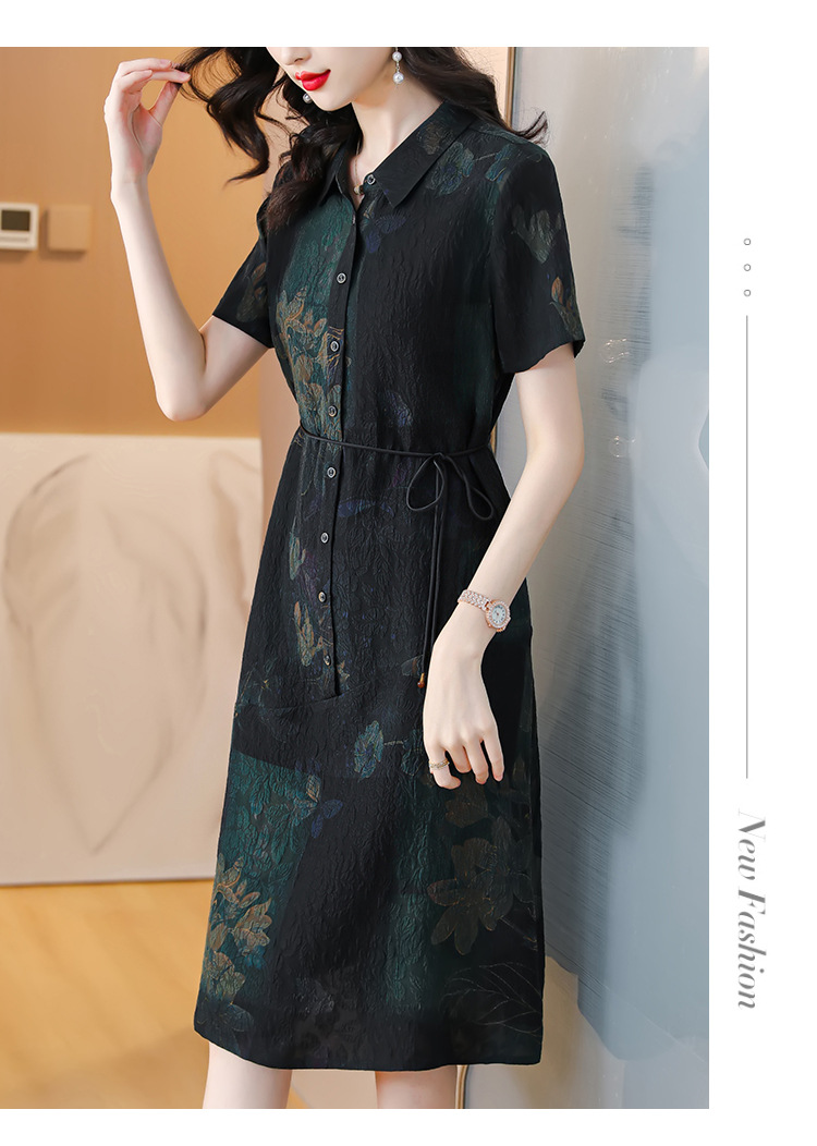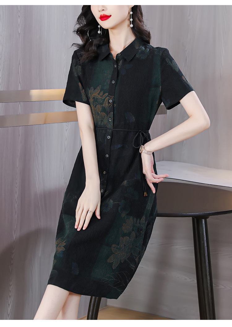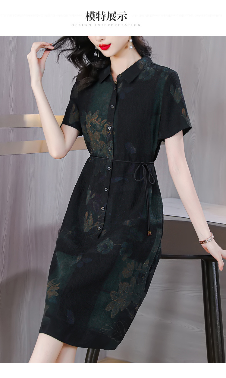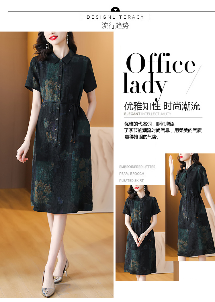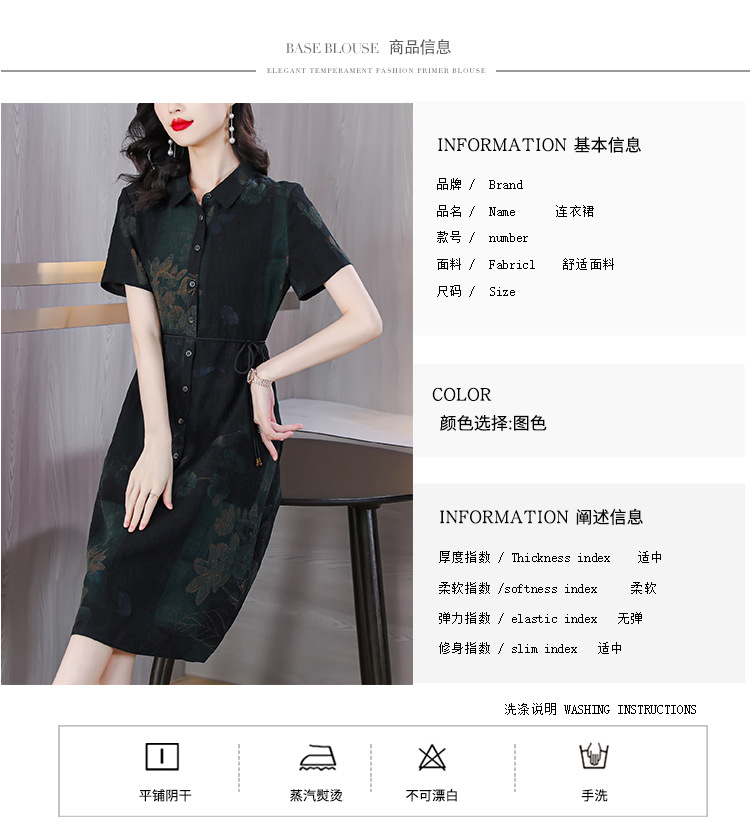 A32707高品质减龄遮肉中年妈妈夏季新款真丝连衣裙复古香云纱桑蚕丝裙子