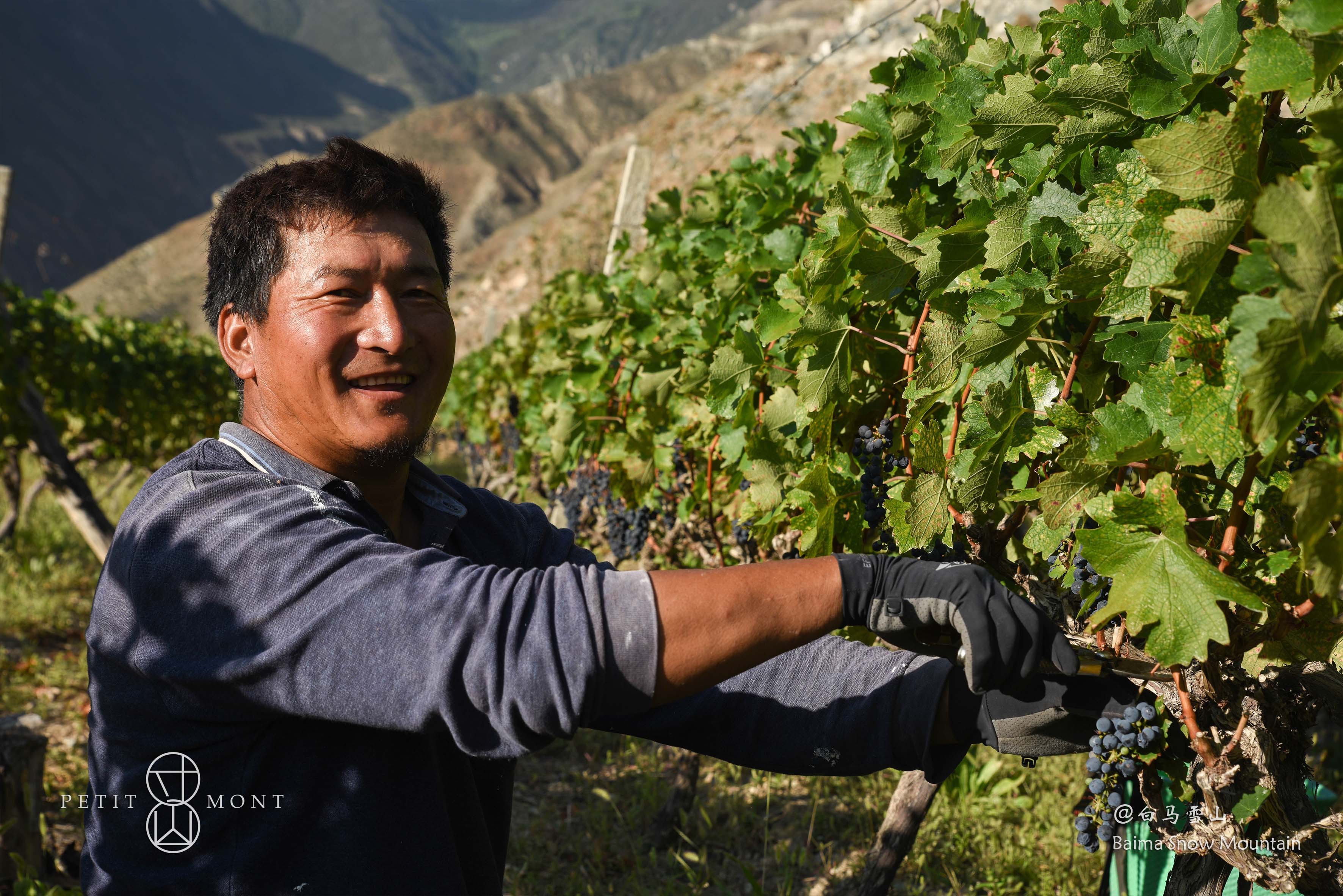 而这还不够,我在德钦找到了它的搭档——黑巴科(Baco Noir)当地人叫它“黑珍珠”或者“藏葡萄”是19世纪法国传教士带来种植的品种,它抗病、晚熟、酸度很高,果皮薄但有韧性,酿造出来的酒有一种迷人的木质香。在浓郁的赤霞珠中加入2%的黑巴科使得酒更有层次和立体感,并增加了一种神秘气质。