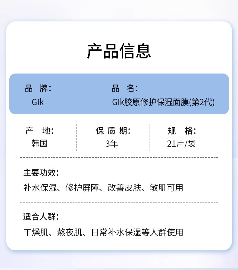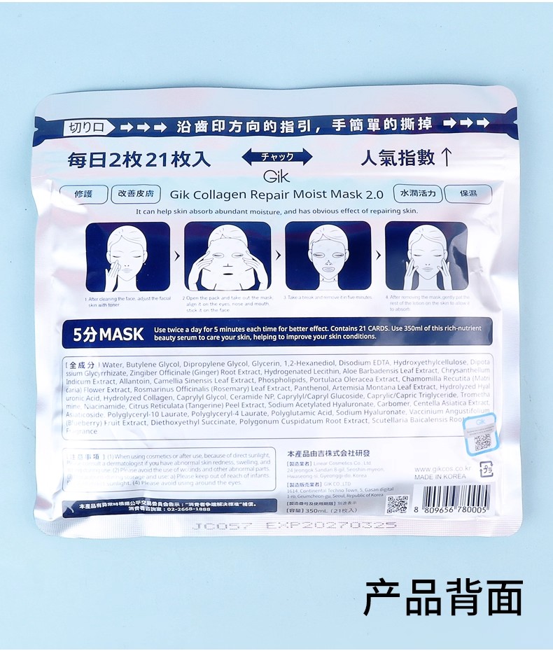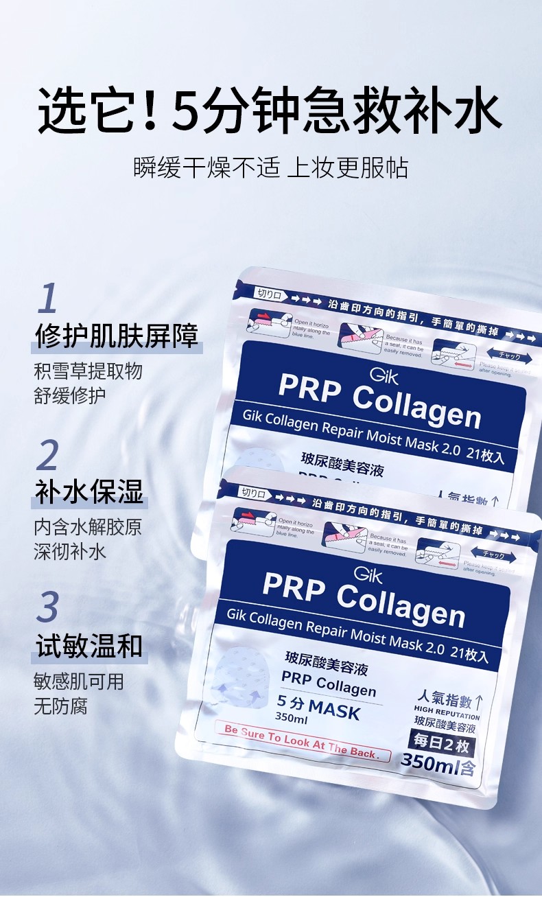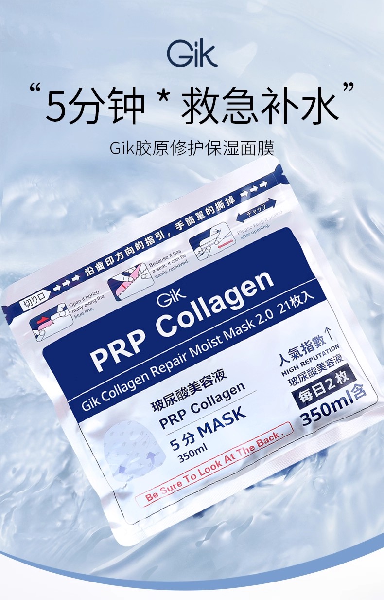 【年终限时大促】【香港直邮】Gikprp5分钟急救面膜补水保湿21片/盒