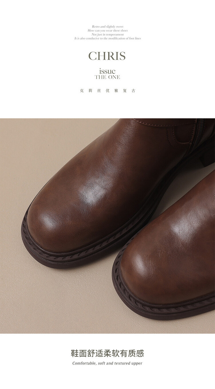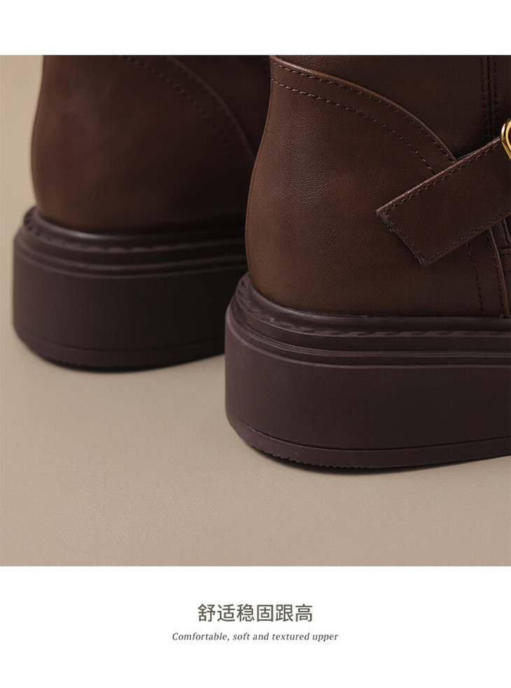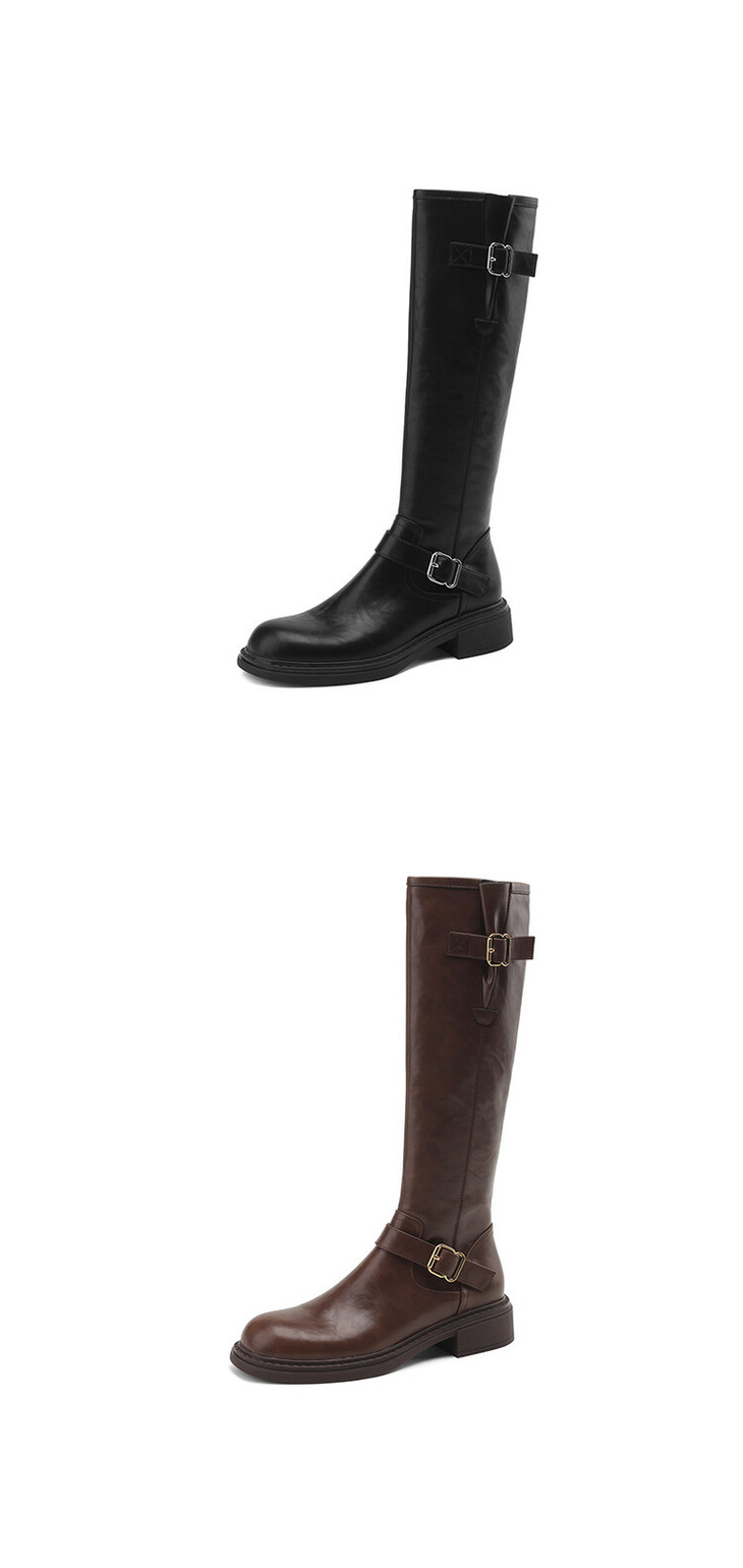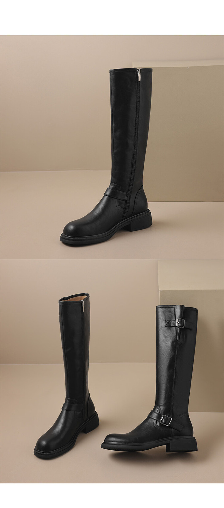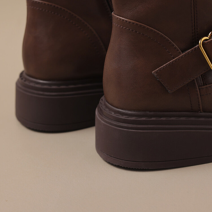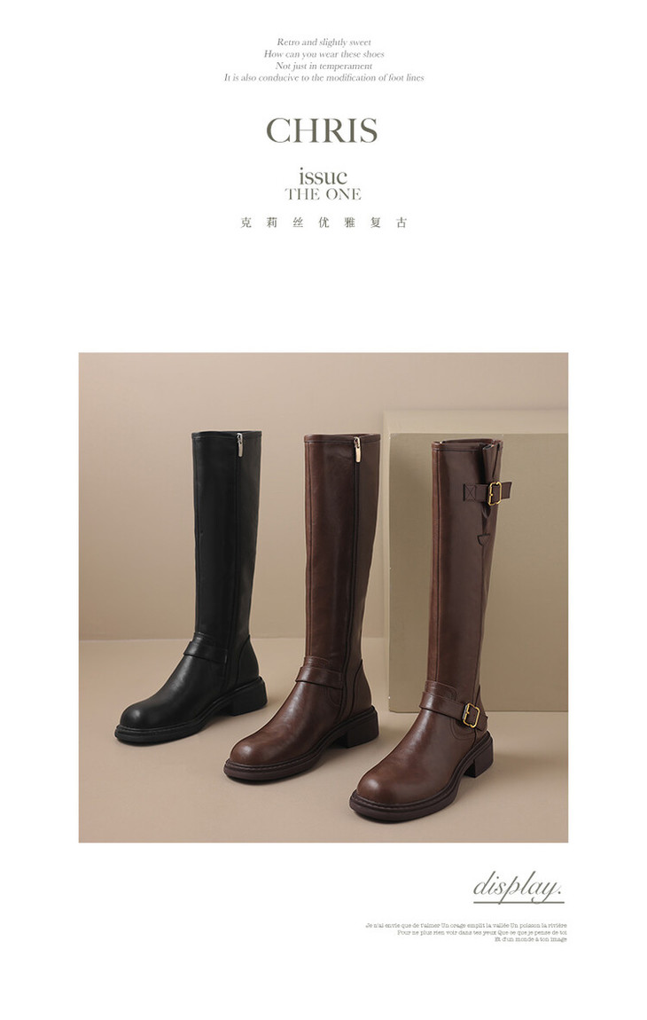 【预售7天】全牛皮复古粗跟长筒靴女秋冬新款真皮显瘦高筒骑士靴MD&67-45