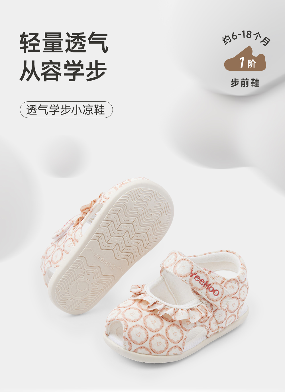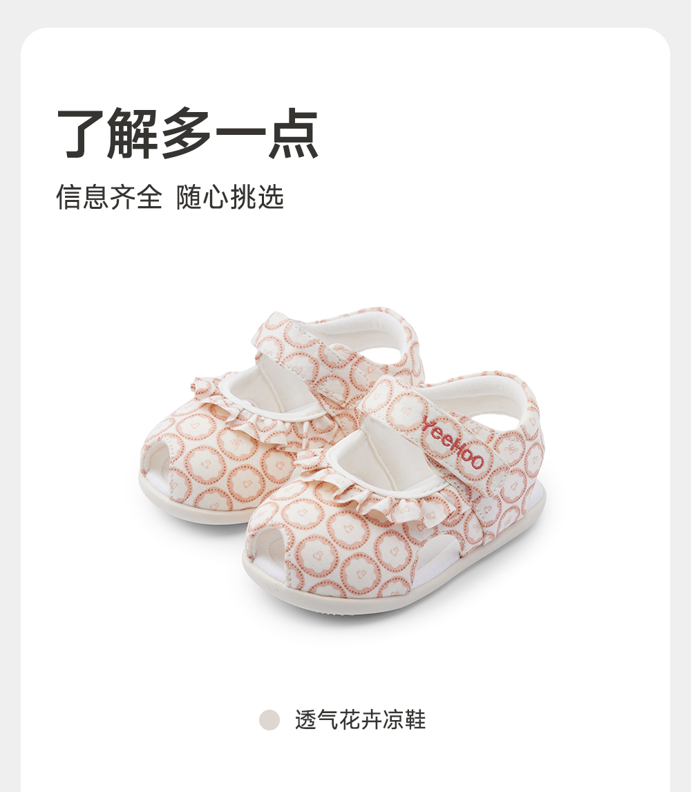 【商场同款】英氏儿童鞋夏季女宝透气步前鞋小凉鞋魔术贴新款