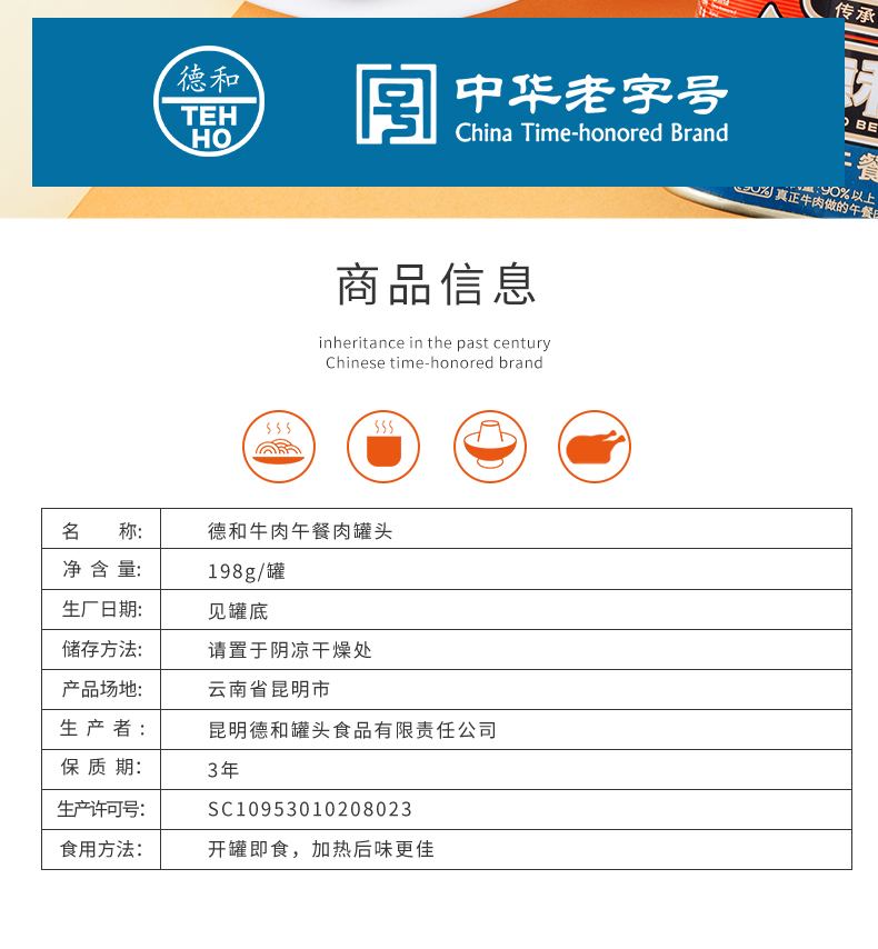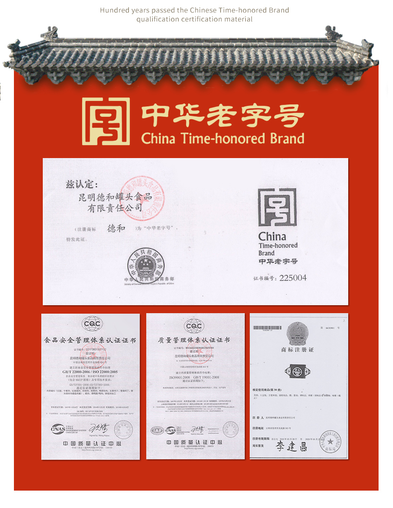 昆明德和罐头厂是中国最早开始生产制造罐头的企业之一,至今已有九十八年的悠久历史,现已形成以罐头食品为主,腌腊制品、糕点月饼等为辅的云南省规模最大和最具影响力综合食品制造企业,奠定了云南罐头行业的基石。