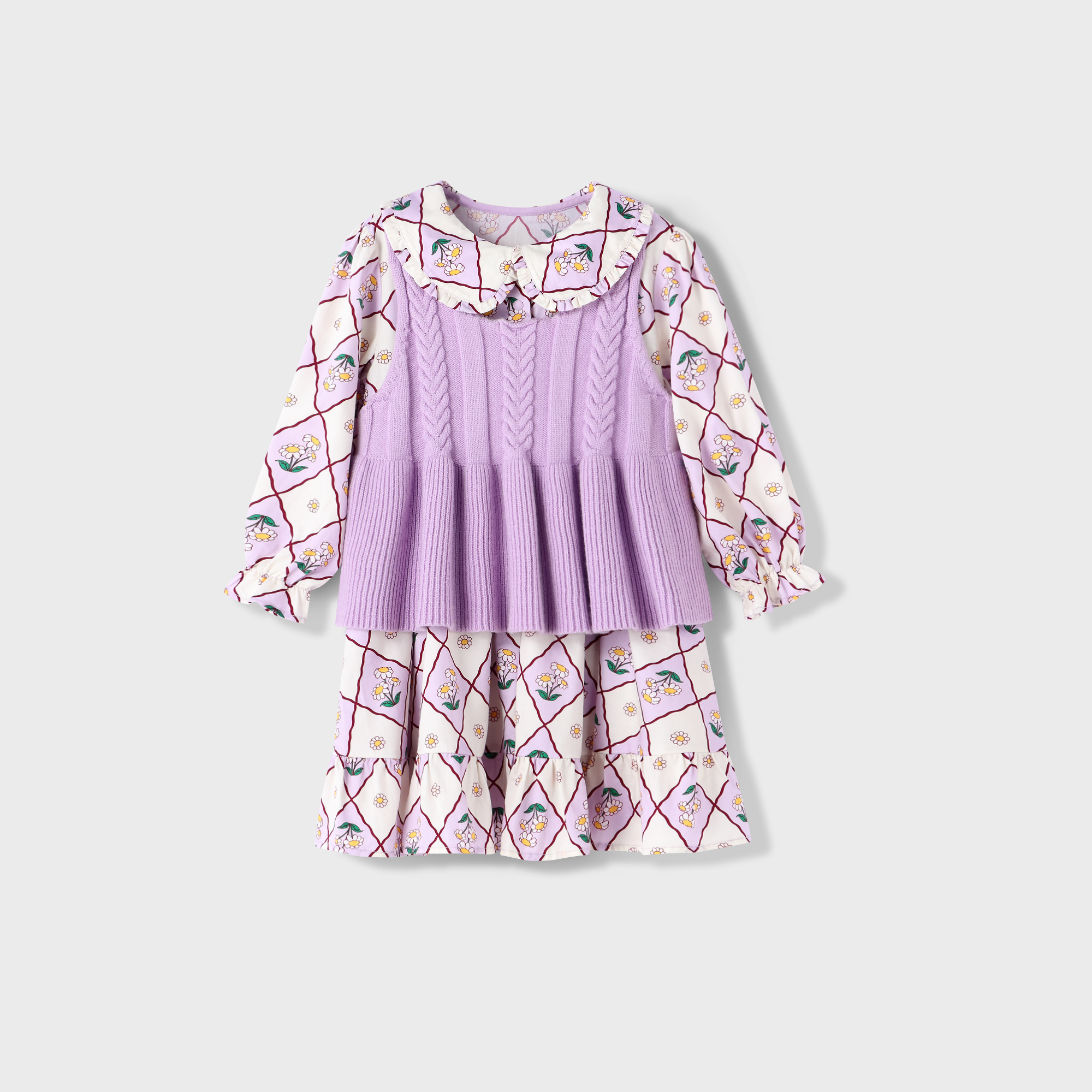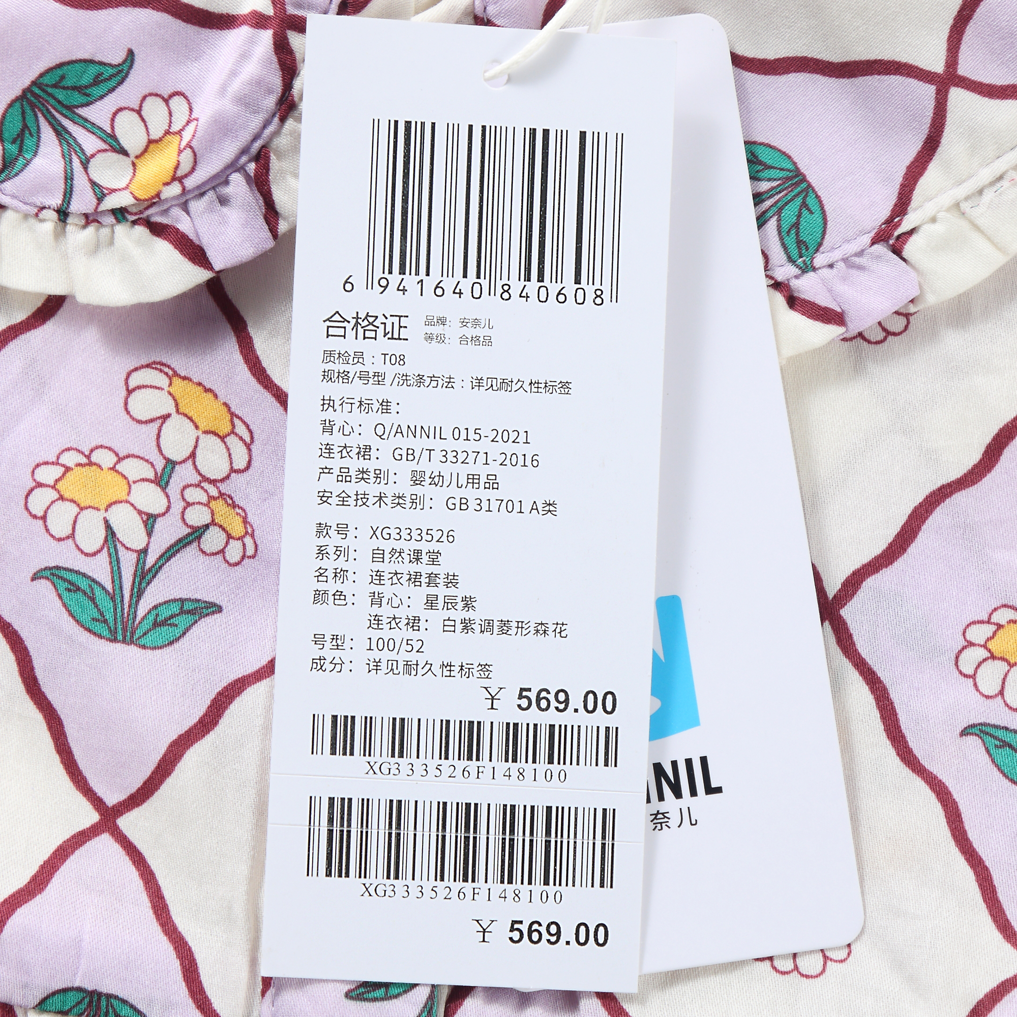 【实体店同款】女童田园风两件式连衣裙套装2023年秋季新款安奈儿童装XG333526