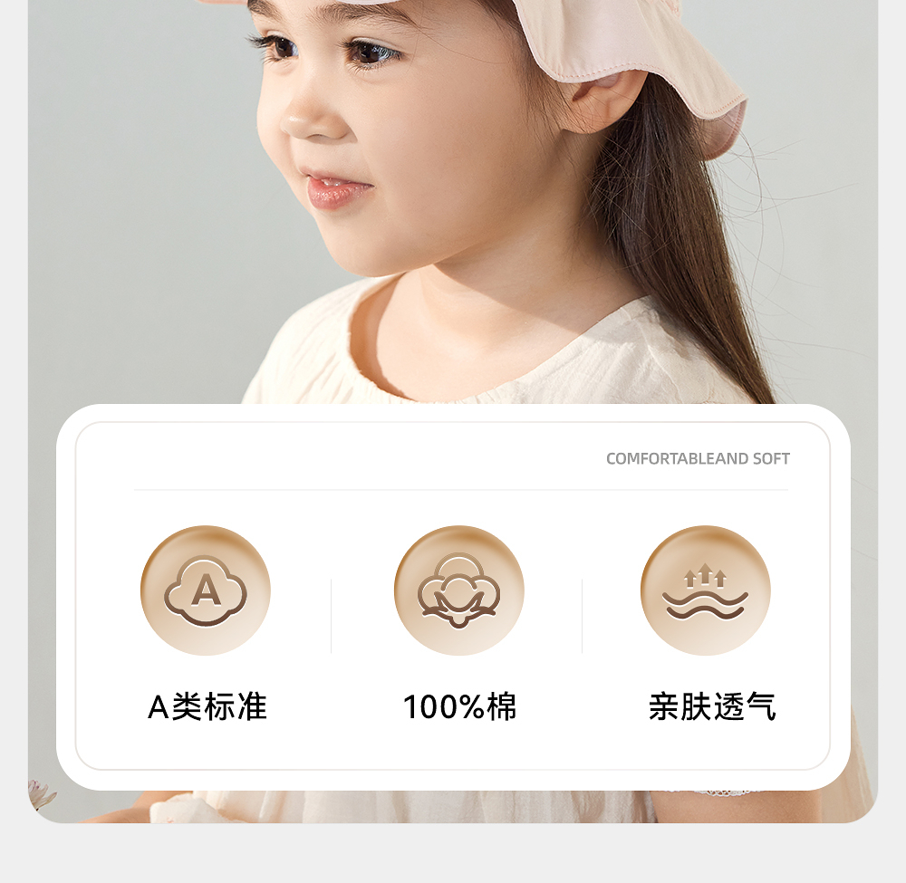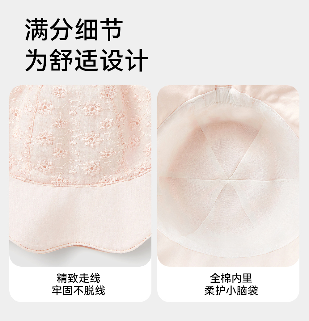 【商场同款】英氏儿童帽子春夏透气遮阳女童渔夫帽纯棉2025新款