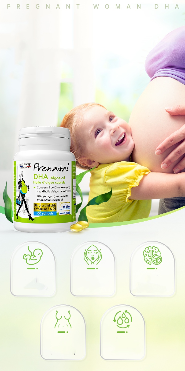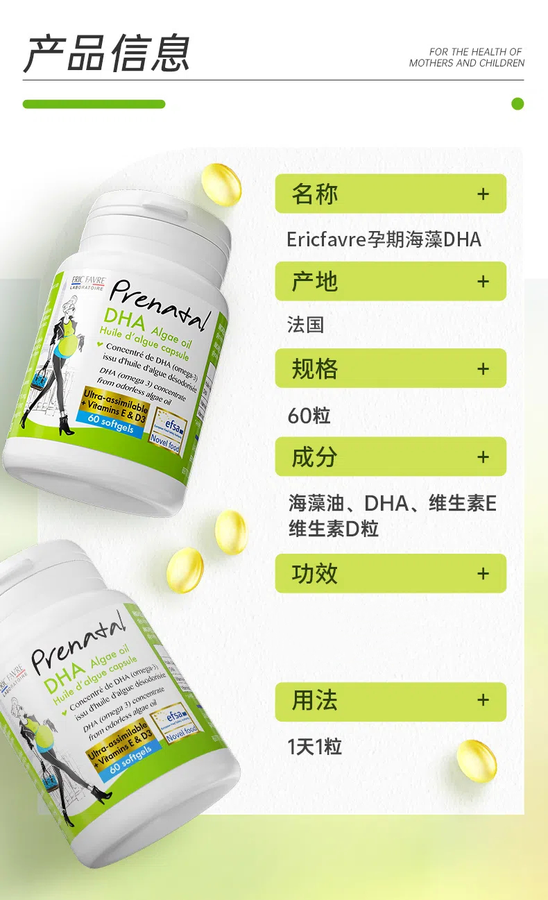 【跨境】法国艾瑞可Eric Farve 孕妇DHA 海藻油 60粒/瓶