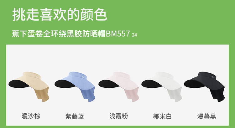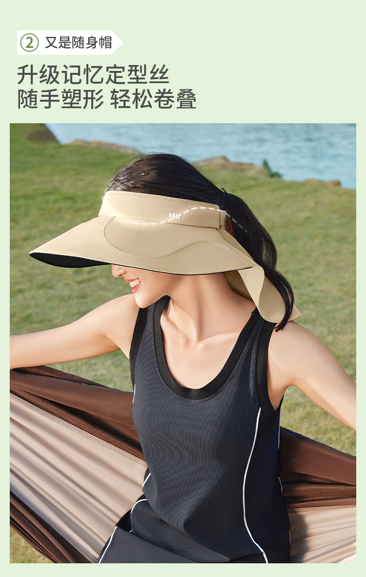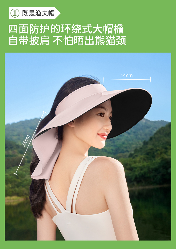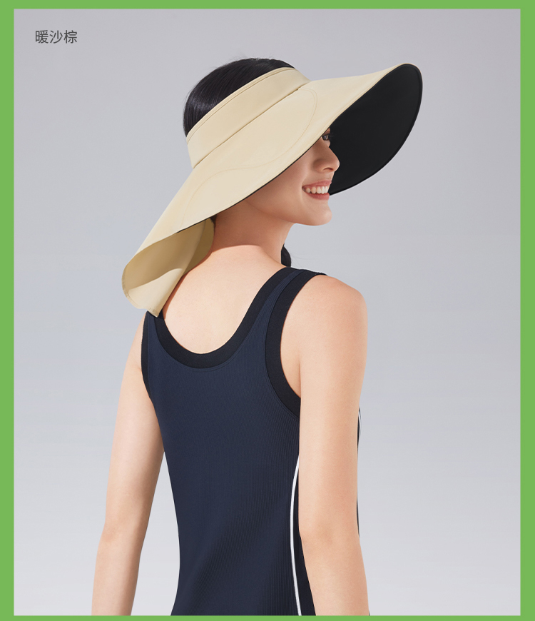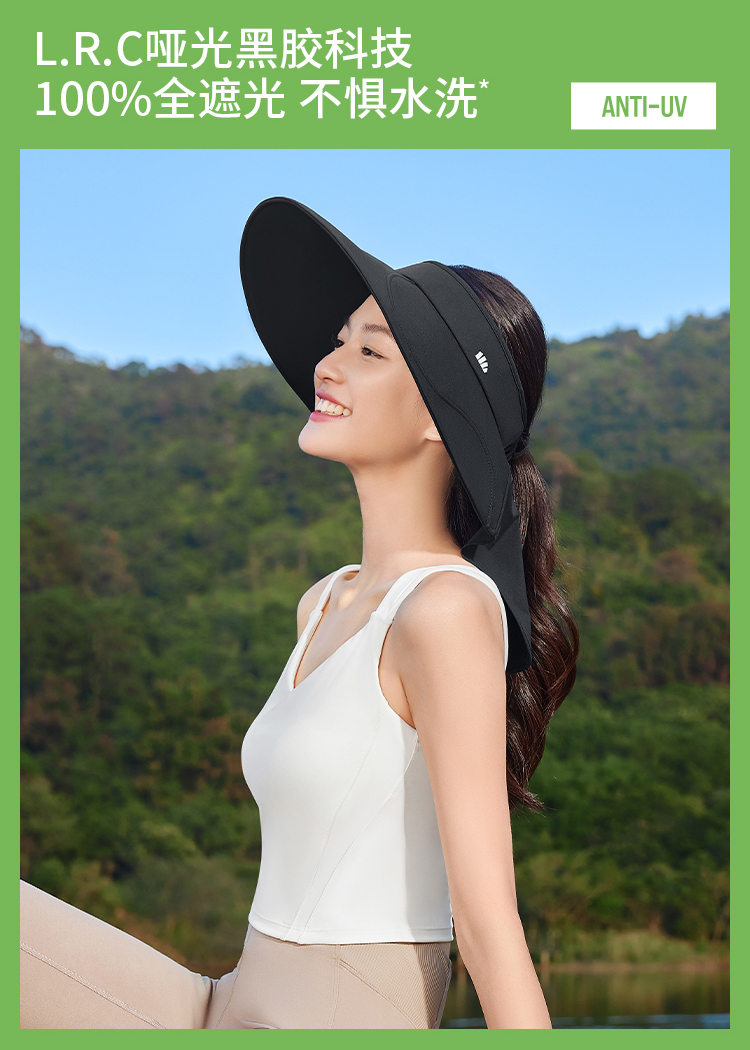 蕉下全环绕蛋卷帽BM55724黑胶全遮光女士遮脸护颈大檐空顶防晒帽