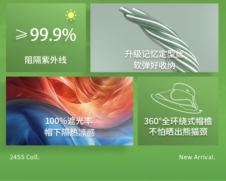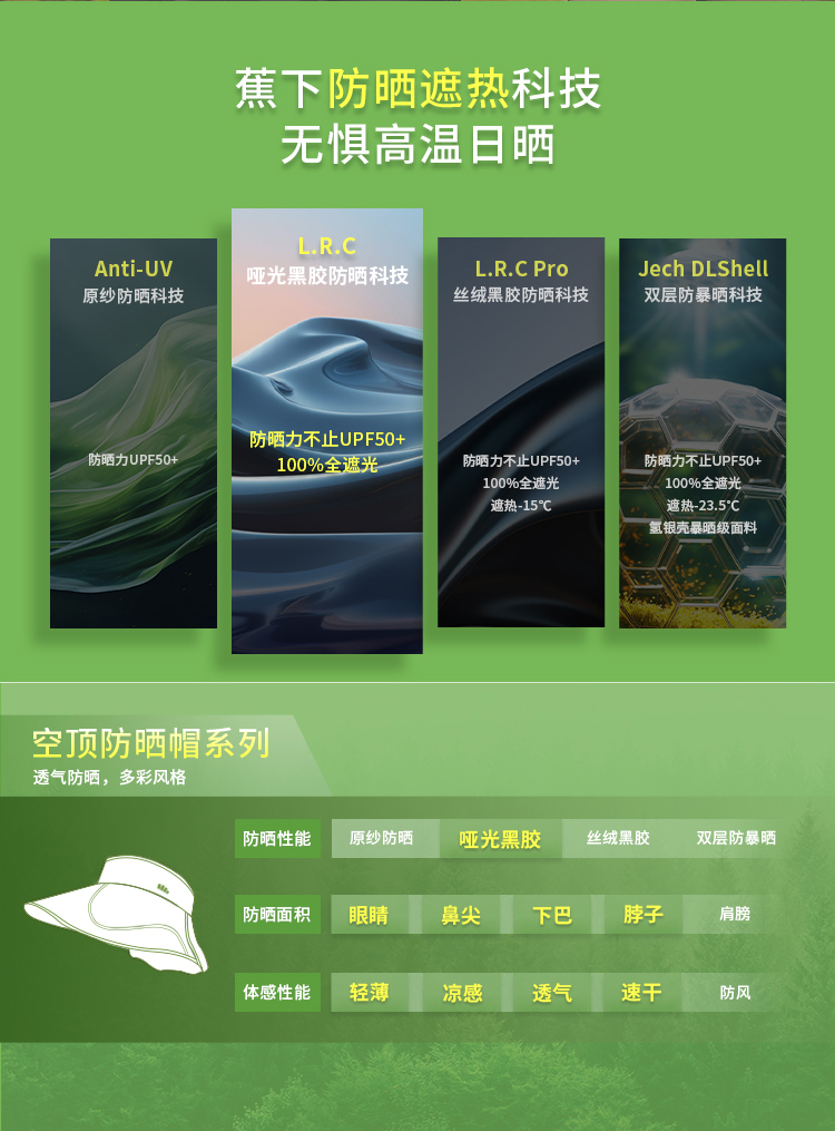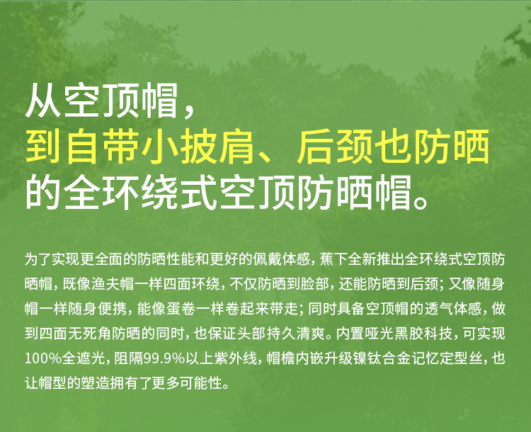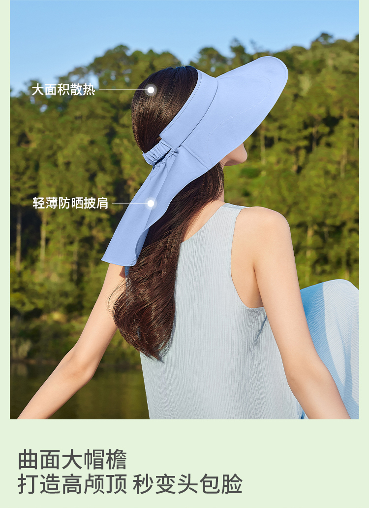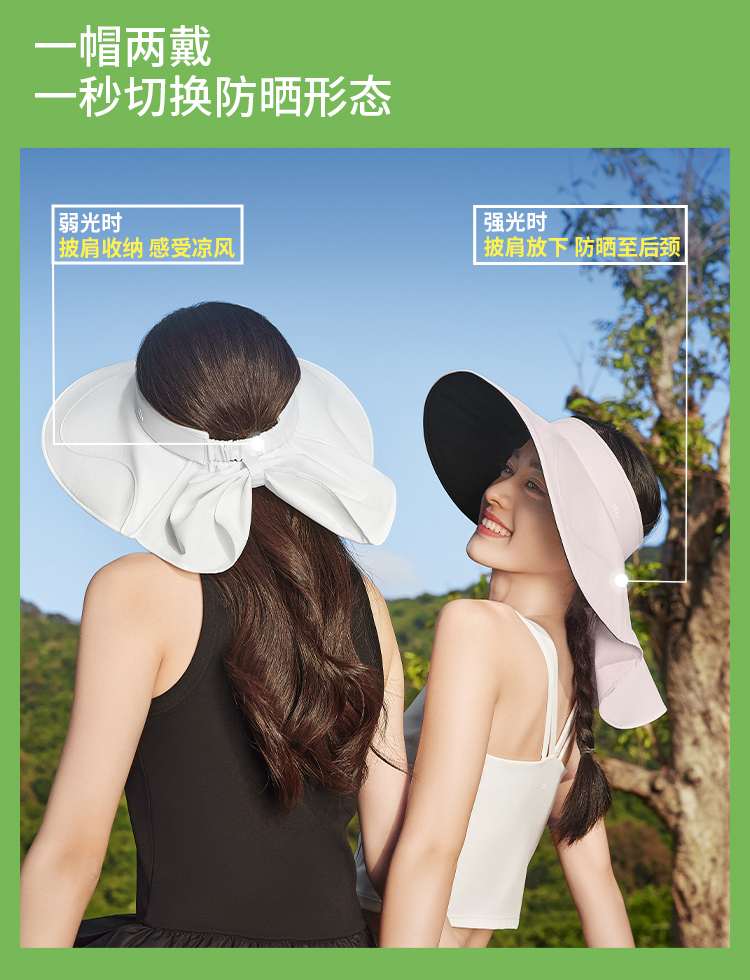 蕉下全环绕蛋卷帽BM55724黑胶全遮光女士遮脸护颈大檐空顶防晒帽