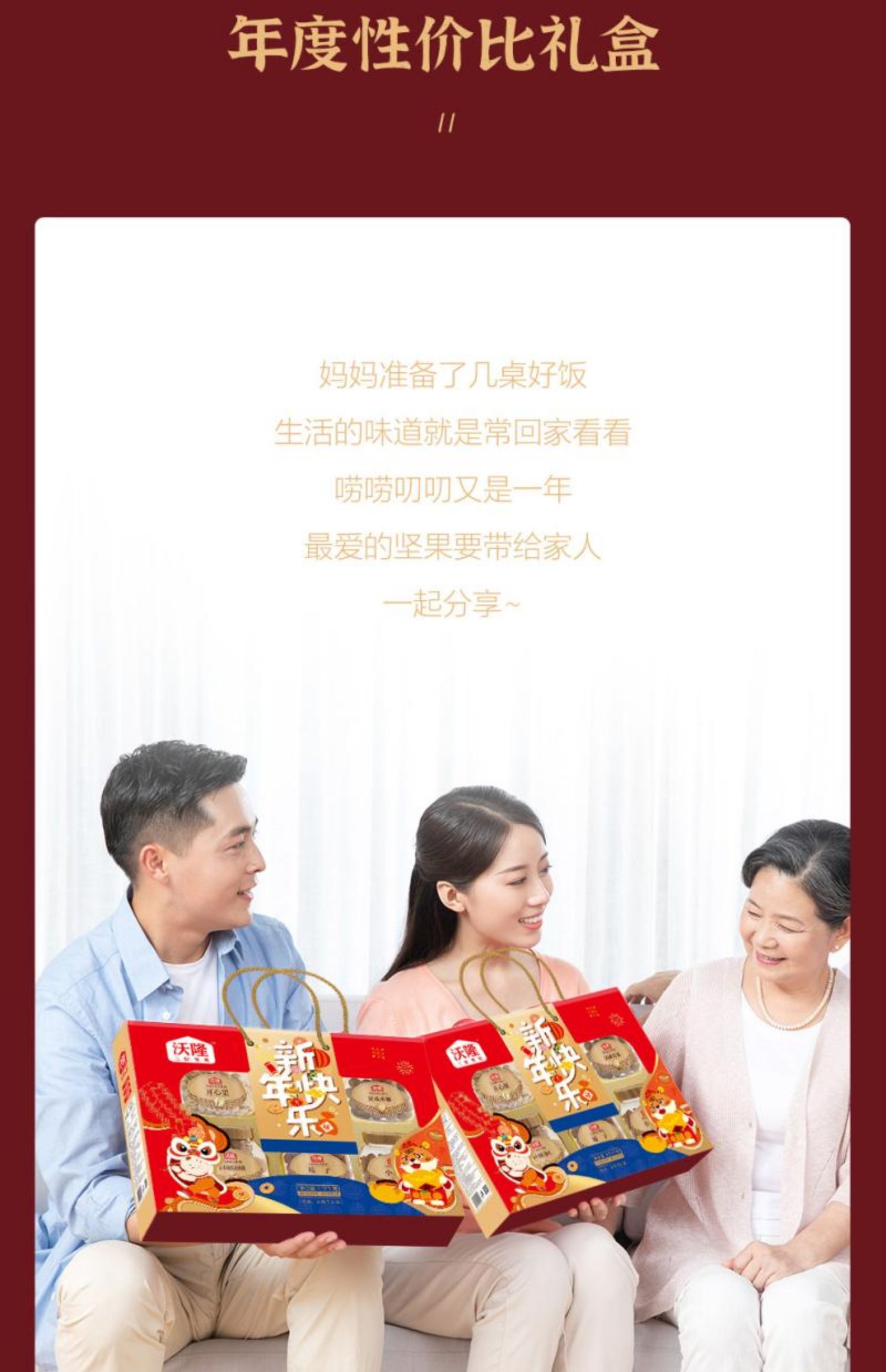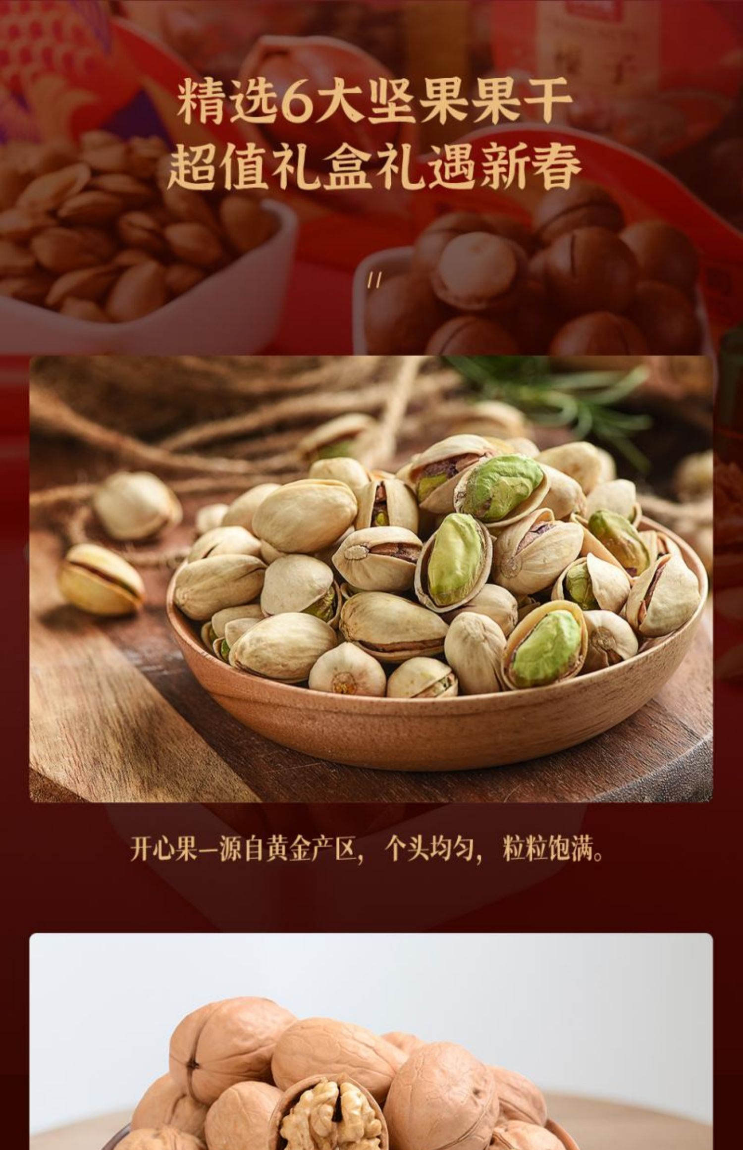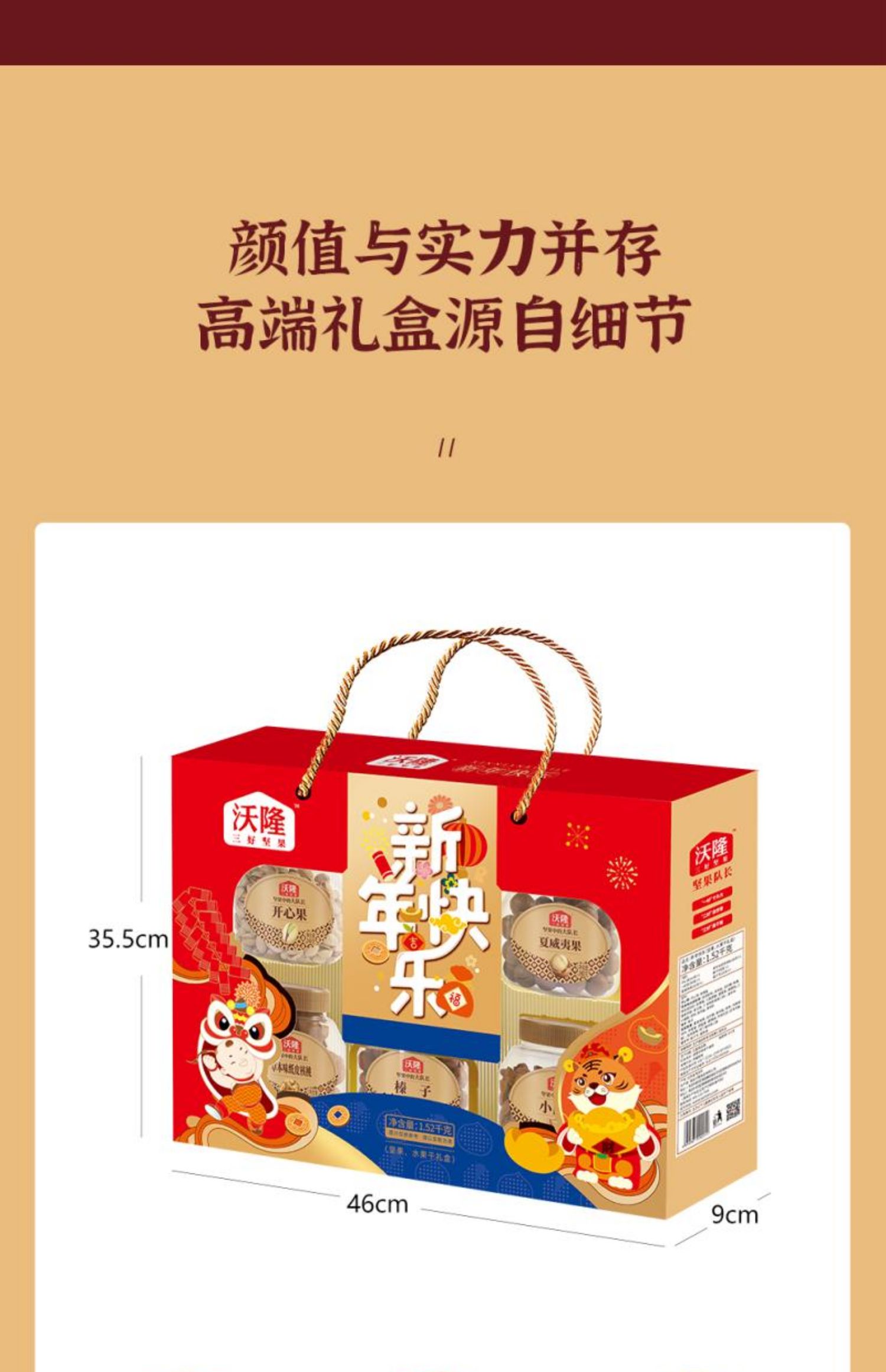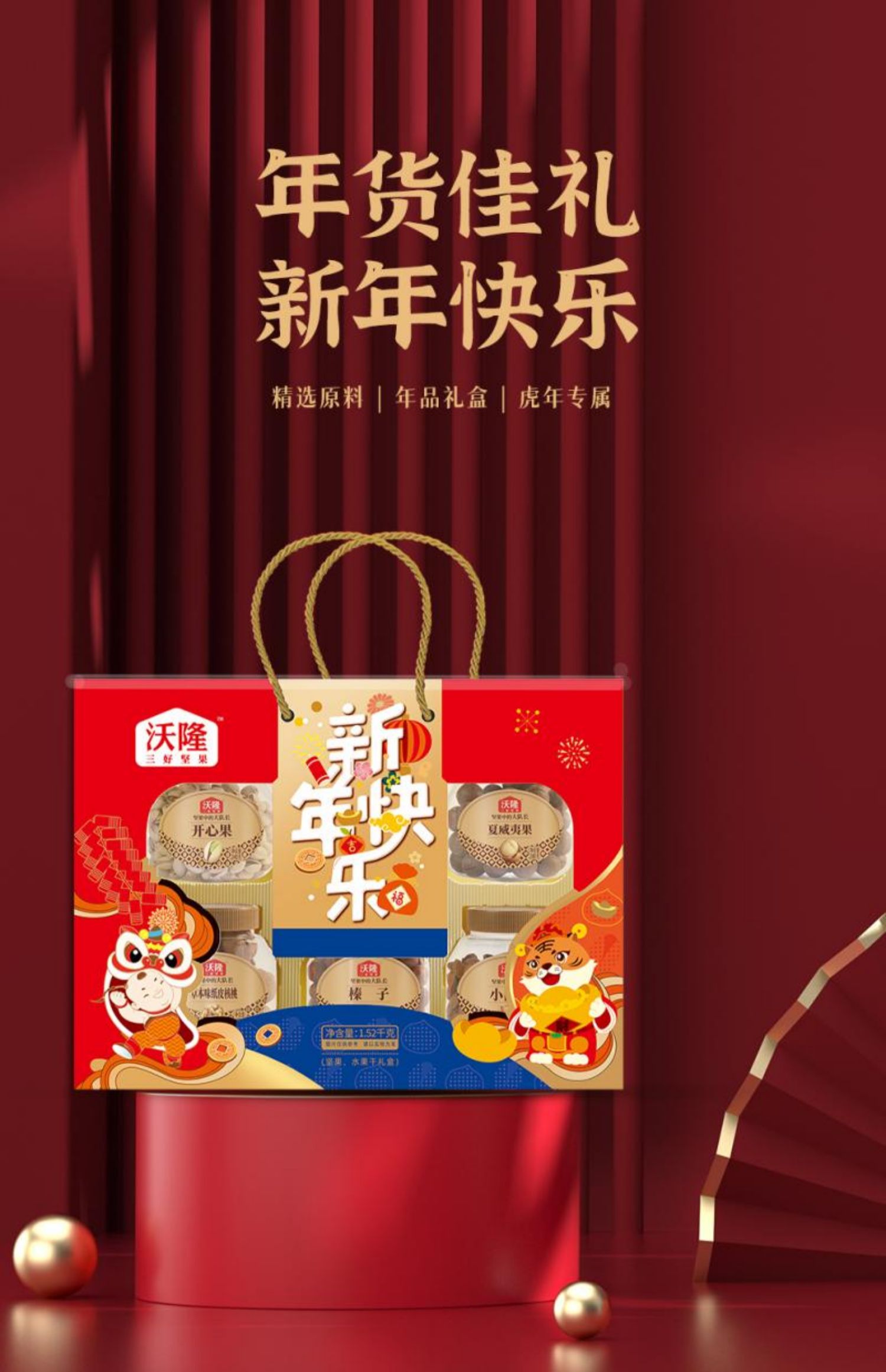 沃隆坚果礼盒新年快乐1520g开心果零食炒货大礼包年货送礼罐装