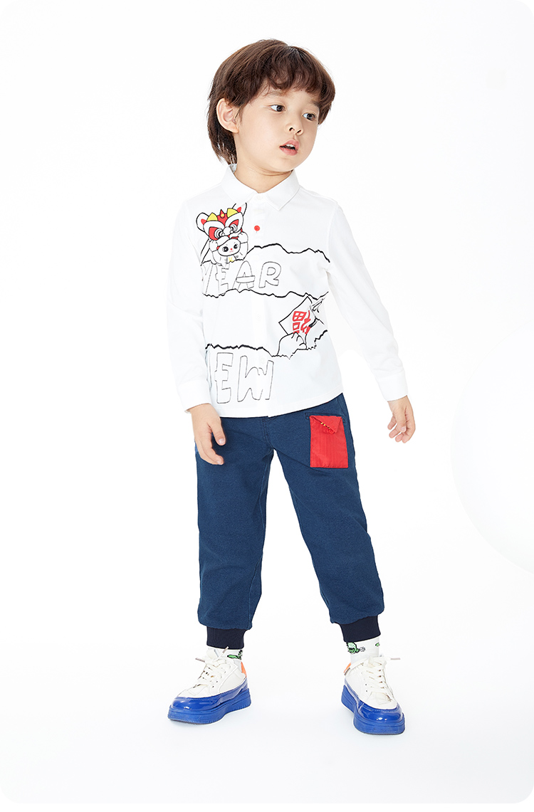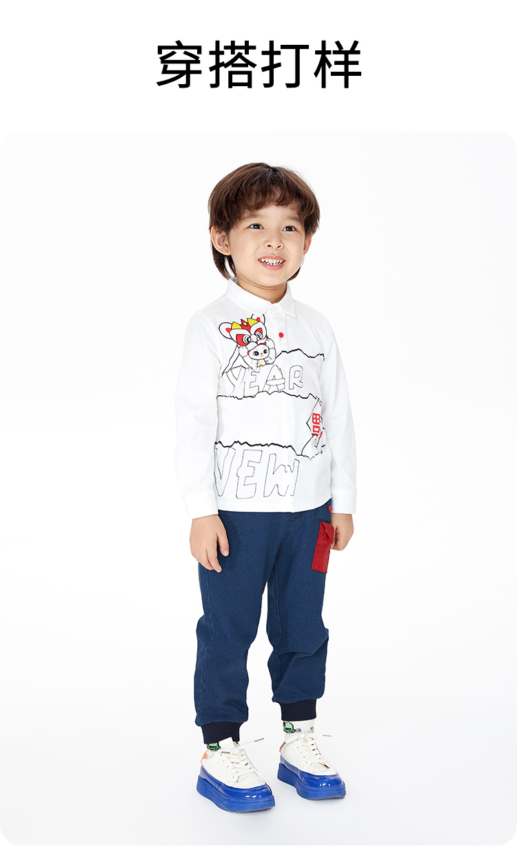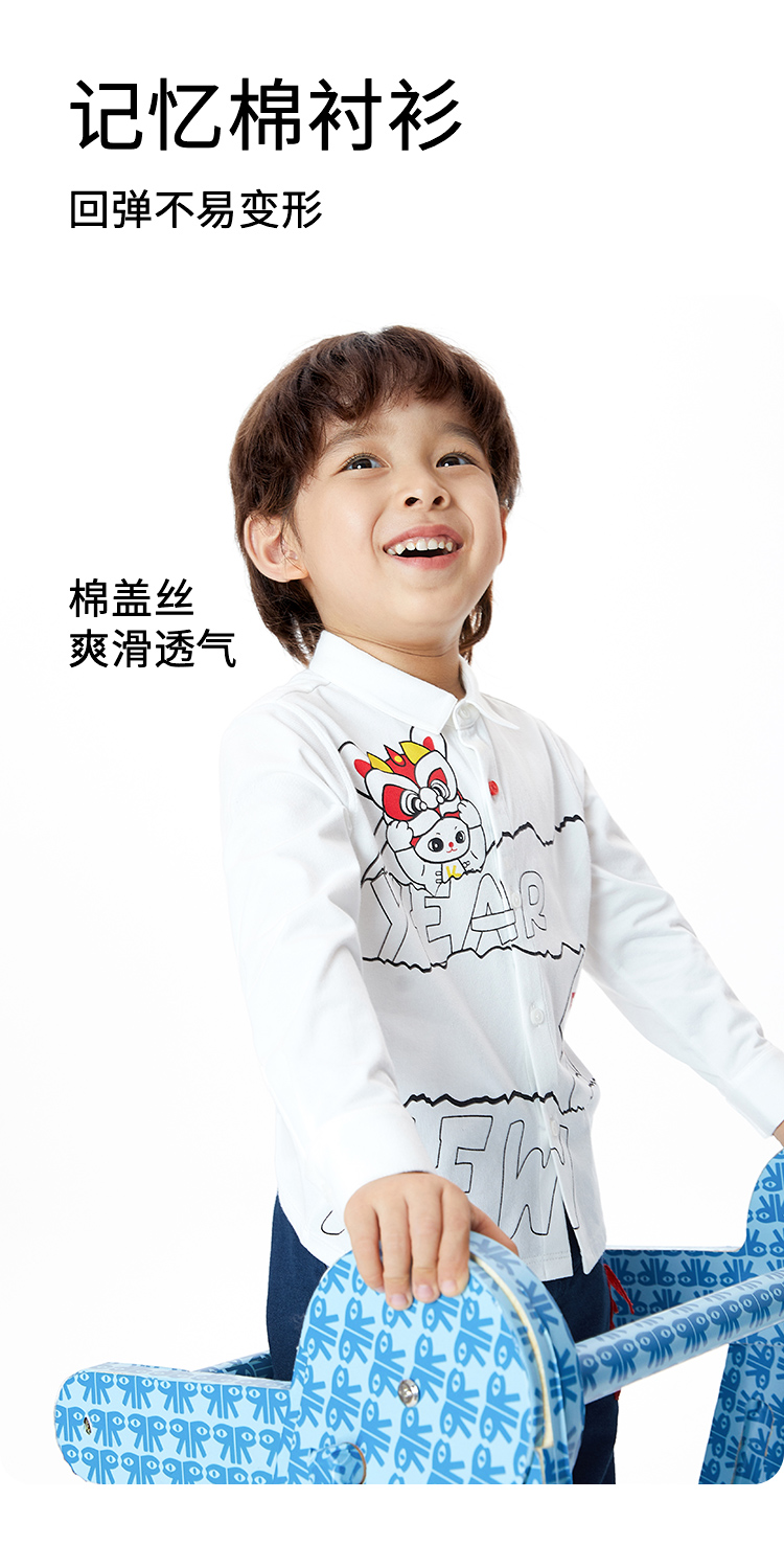 【实体店同款】【新年红】儿童衬衫秋新款男宝白衬衣棉安奈儿童装XB311516