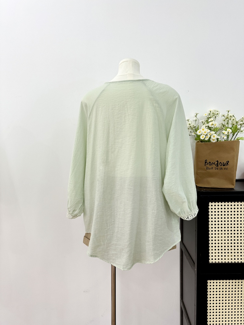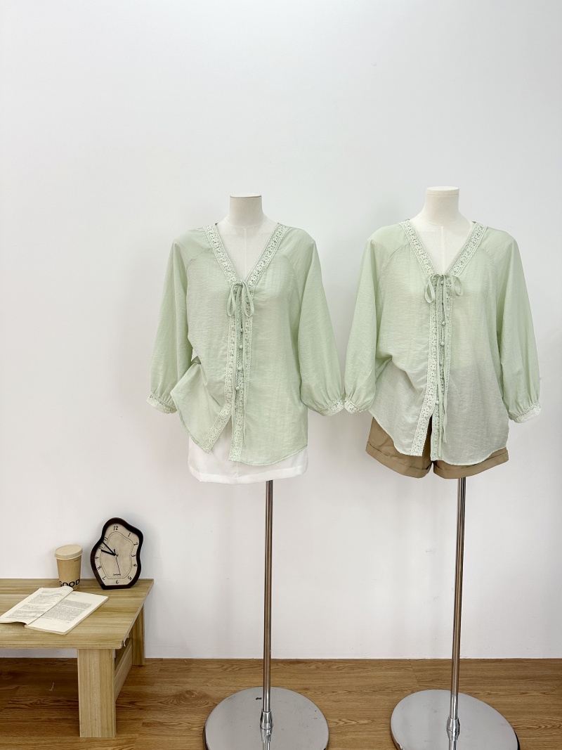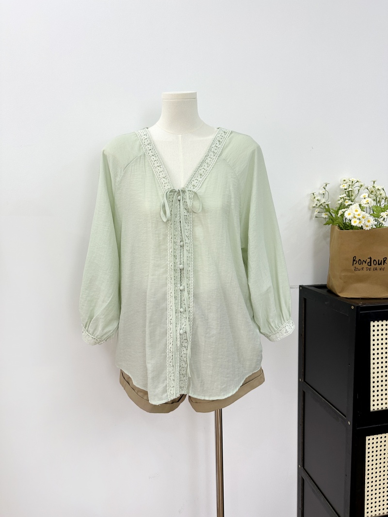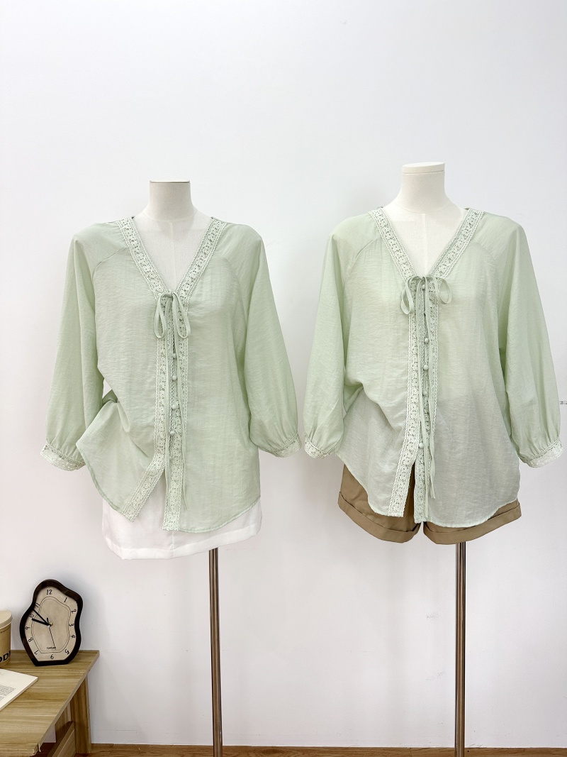 品名:AUChris早秋清冷气质宽松v领蕾丝衫显白衬衣ACU081401