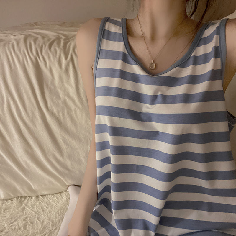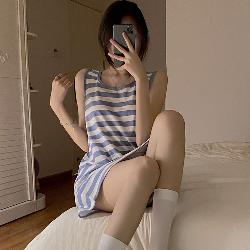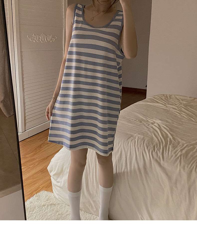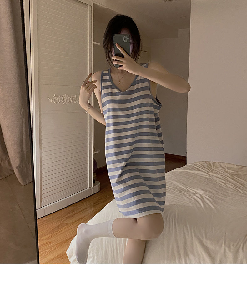 【衣舒心,梦缤纷】黛唯梵夏季薄款2022年新款背心睡裙女吊带纯欲风无袖条纹睡衣裙