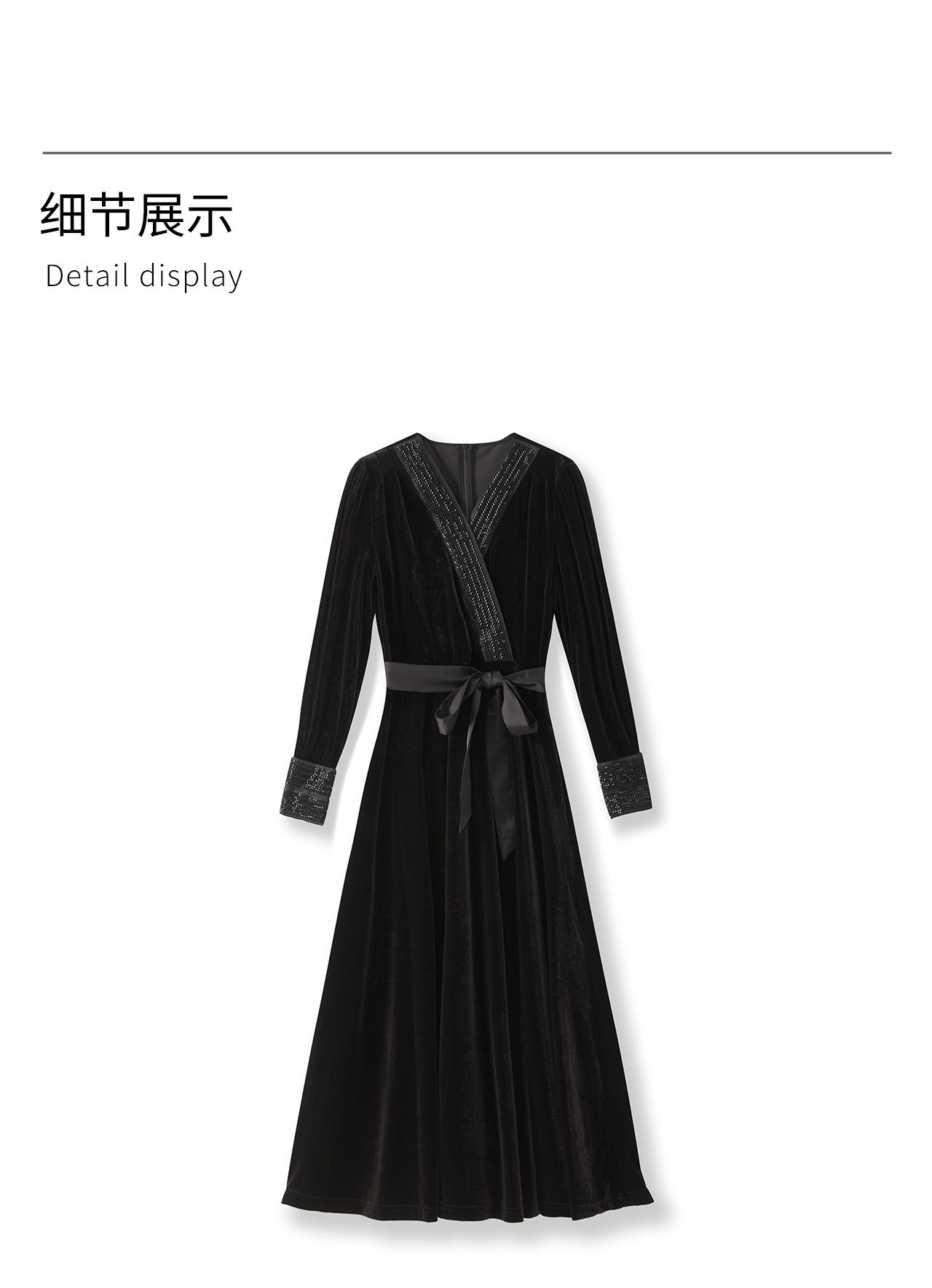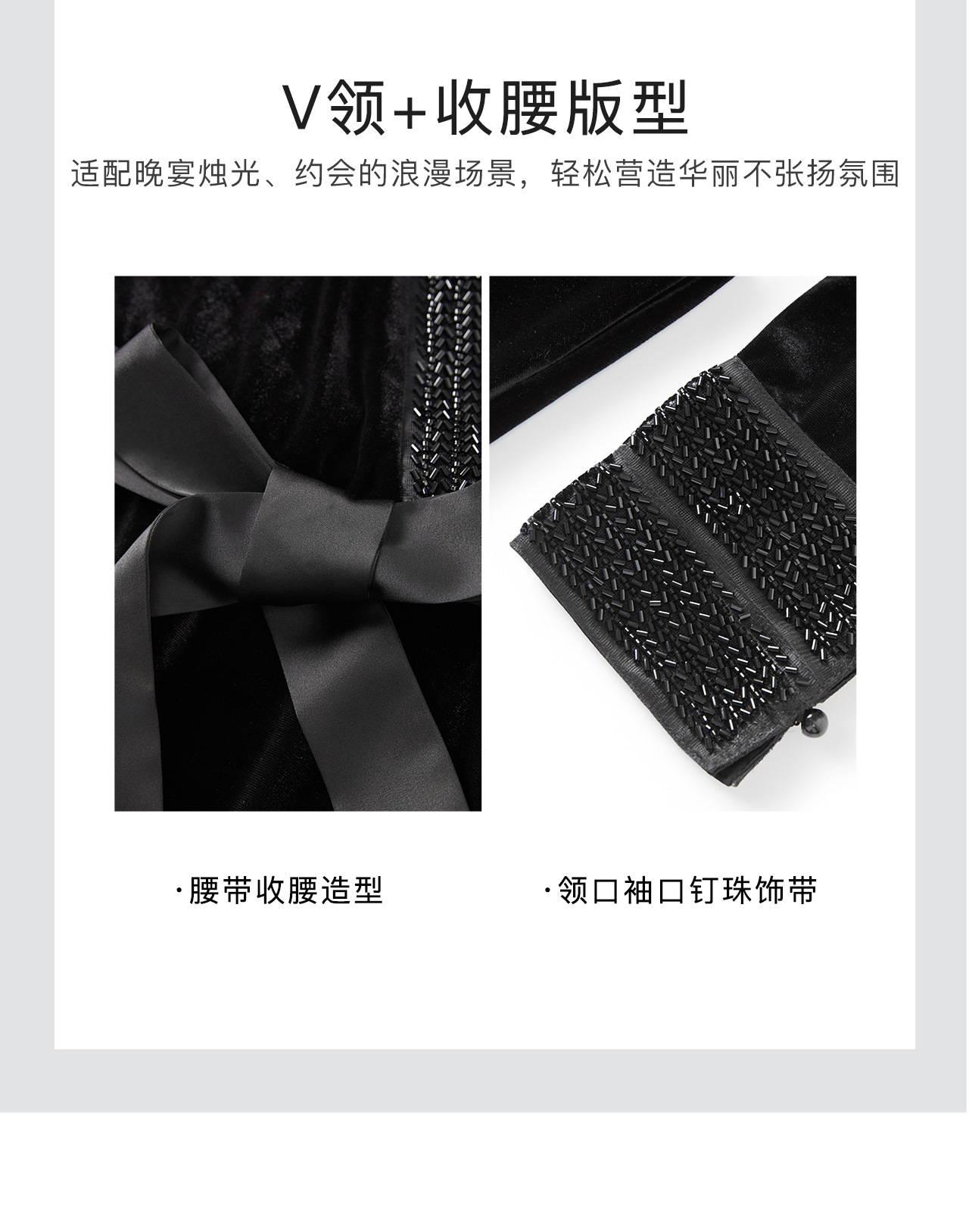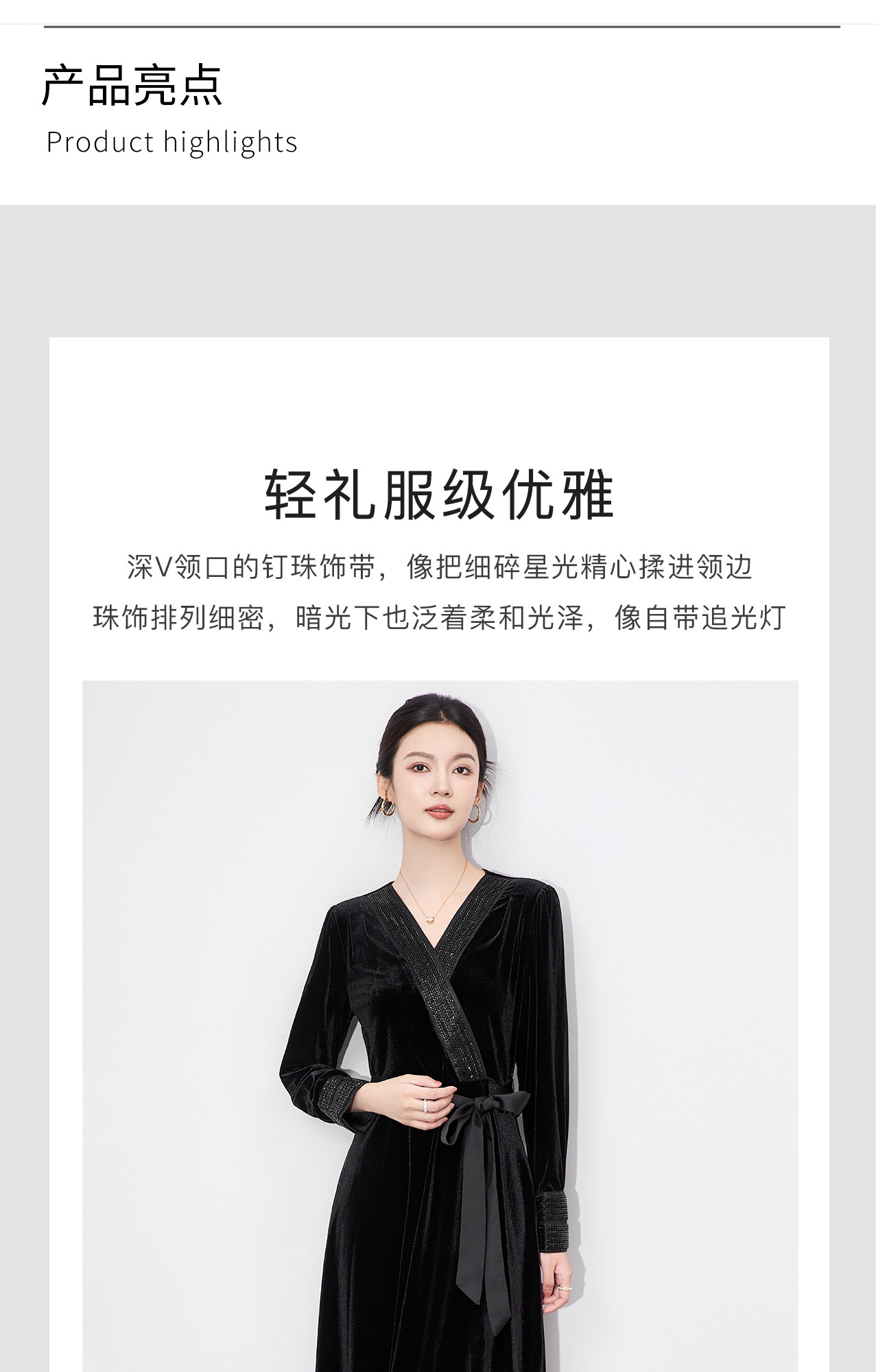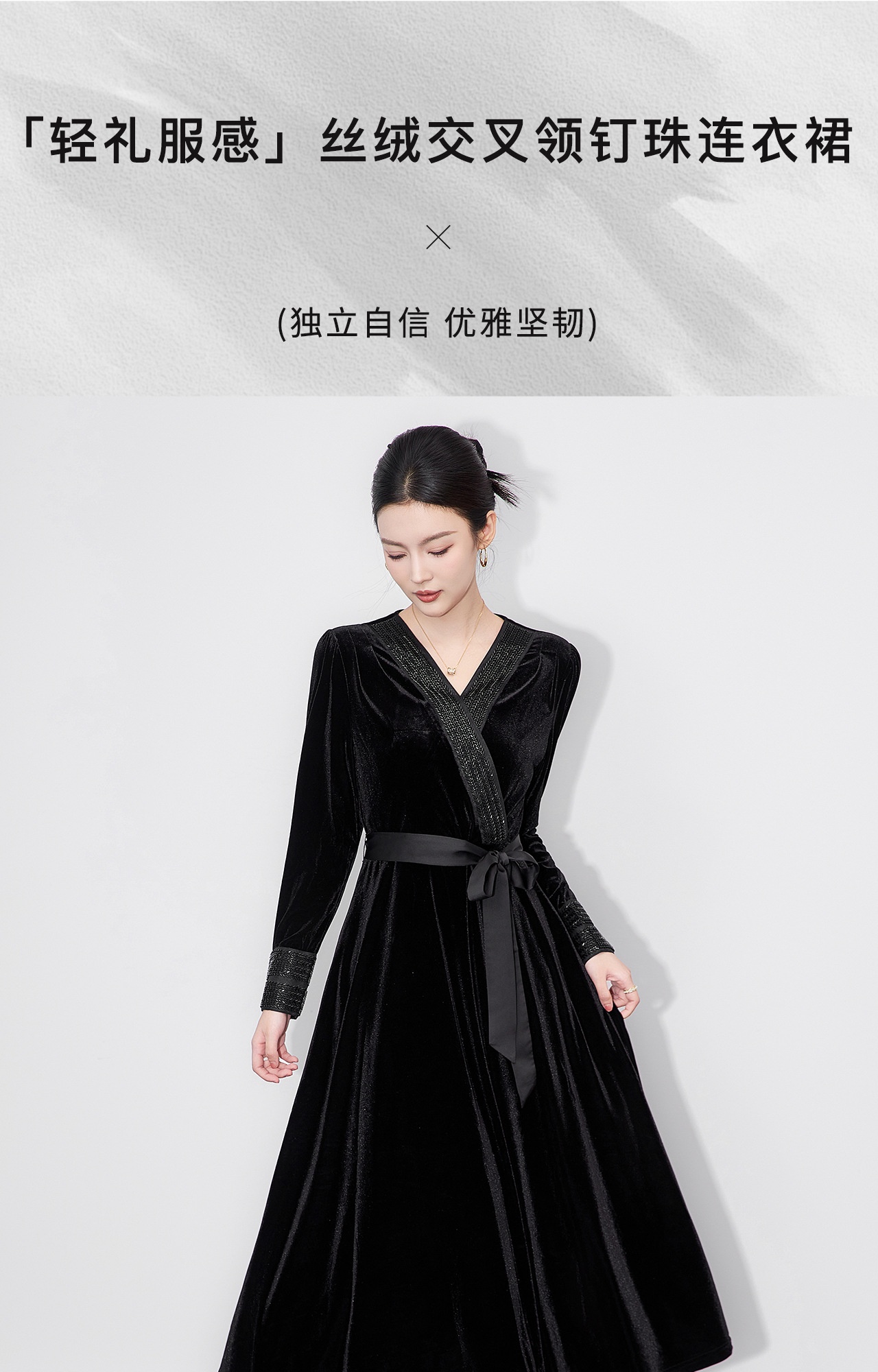 「高货wl」全新升级【铂金会员349/天猫469/差价120】(04054)洛诗琳轻奢重工钉珠金丝绒连衣裙2025秋季气质收腰大摆裙