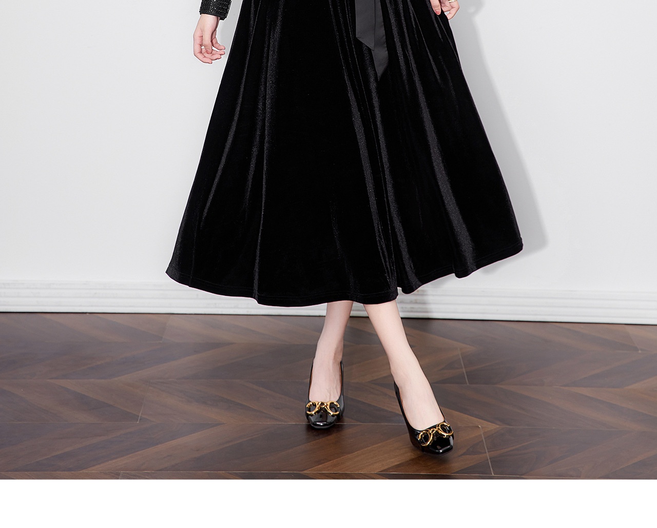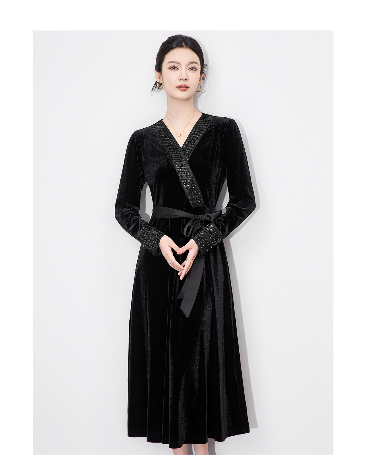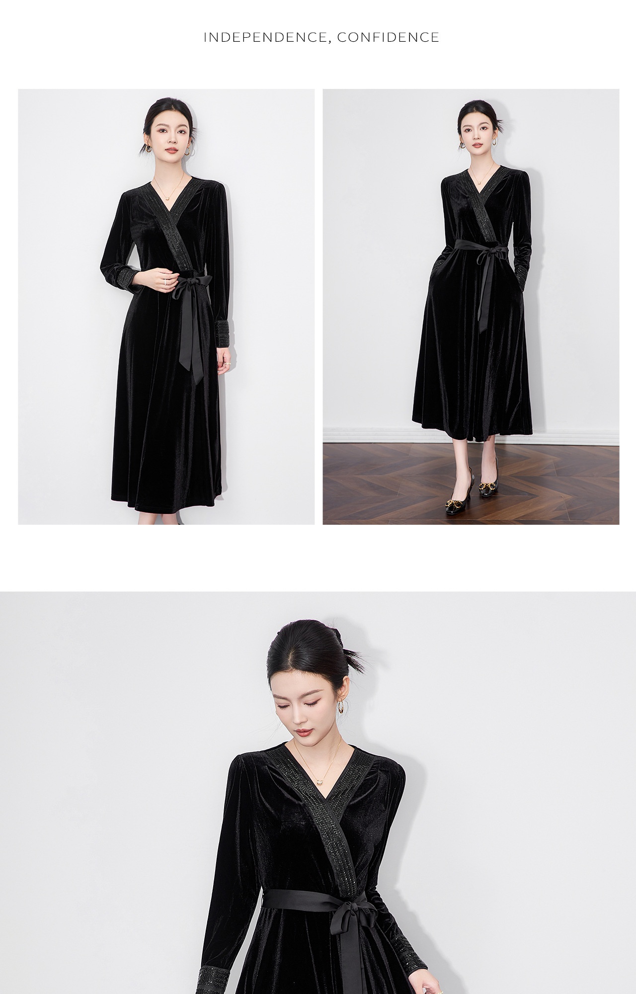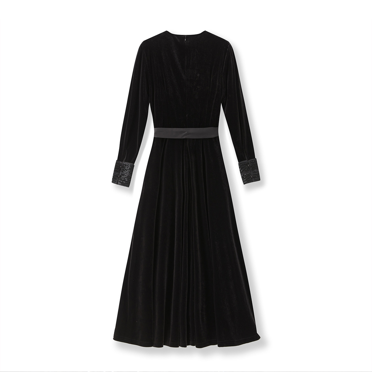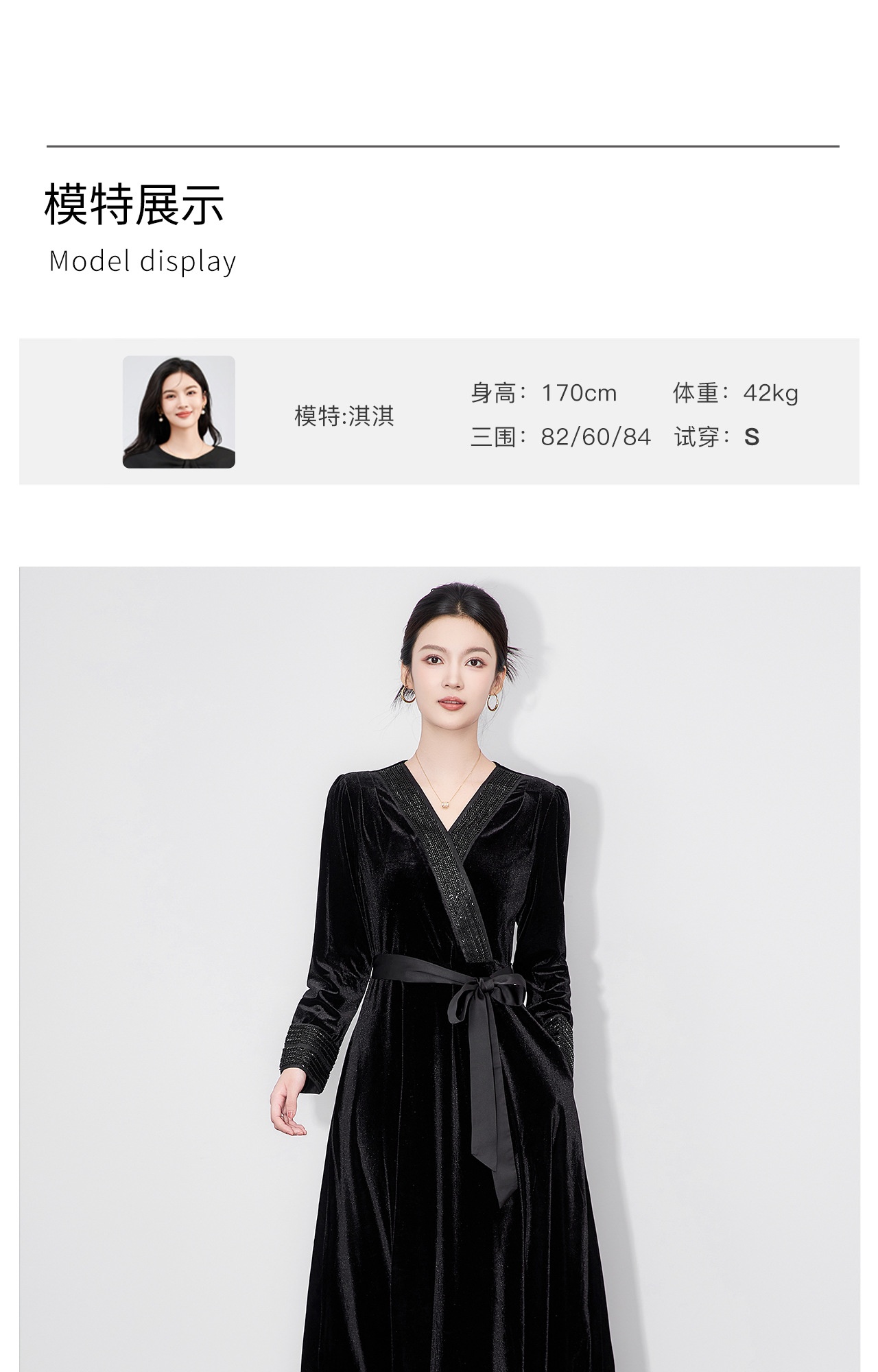 「高货wl」全新升级【铂金会员349/天猫469/差价120】(04054)洛诗琳轻奢重工钉珠金丝绒连衣裙2025秋季气质收腰大摆裙