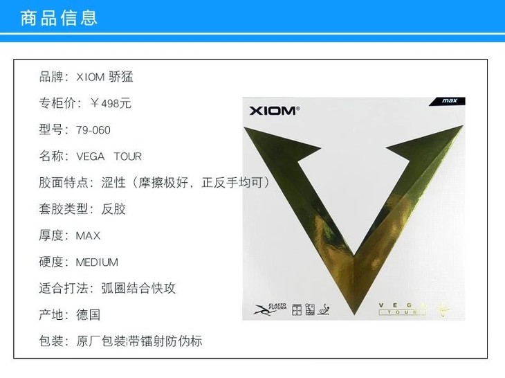 XIOM骄猛 金V唯佳VEGA TOUR乒乓球胶皮反胶套胶
