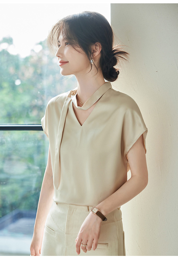 2025新款纯色百搭套头短袖修身优雅女式t恤夏季