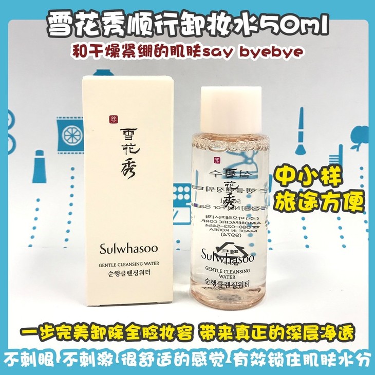 雪花秀顺行卸妆水50ml👍持续带妆一整天👄,你的肌肤还好吗⁉雪花秀全新顺行柔和卸妆水💧,一步完美卸除全脸妆容💆,带来真正的深层净透😇。不刺眼,不刺激,很舒适的感觉✅。还可以帮助调理肌肤老废角质👊,有效锁住肌肤水分💦,和干燥紧绷的肌肤say byebye🙌。洁净力max⬆,轻松零负担,中小样让旅途顺行更顺心💕